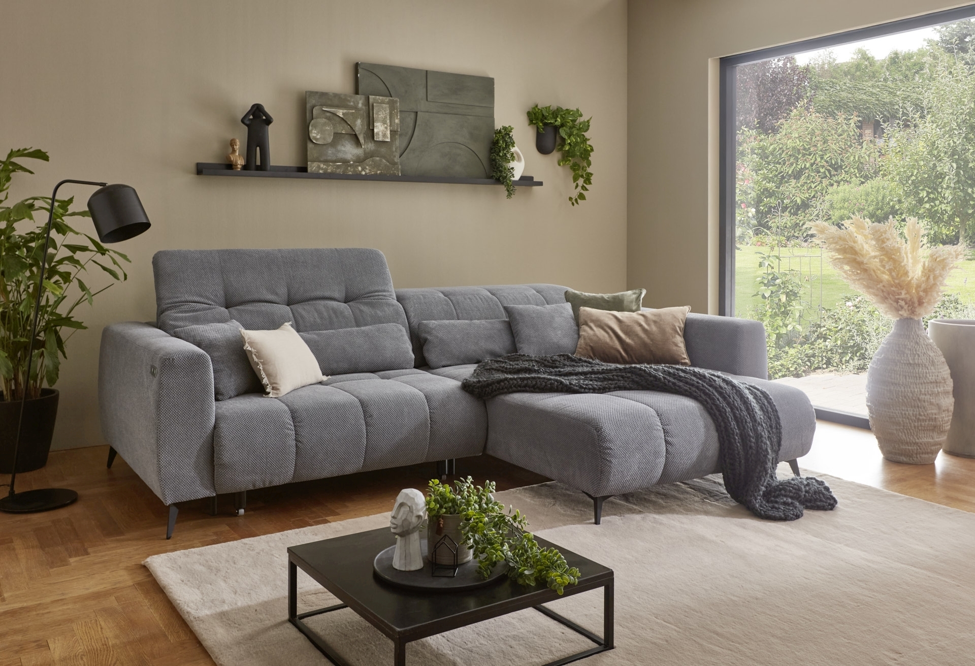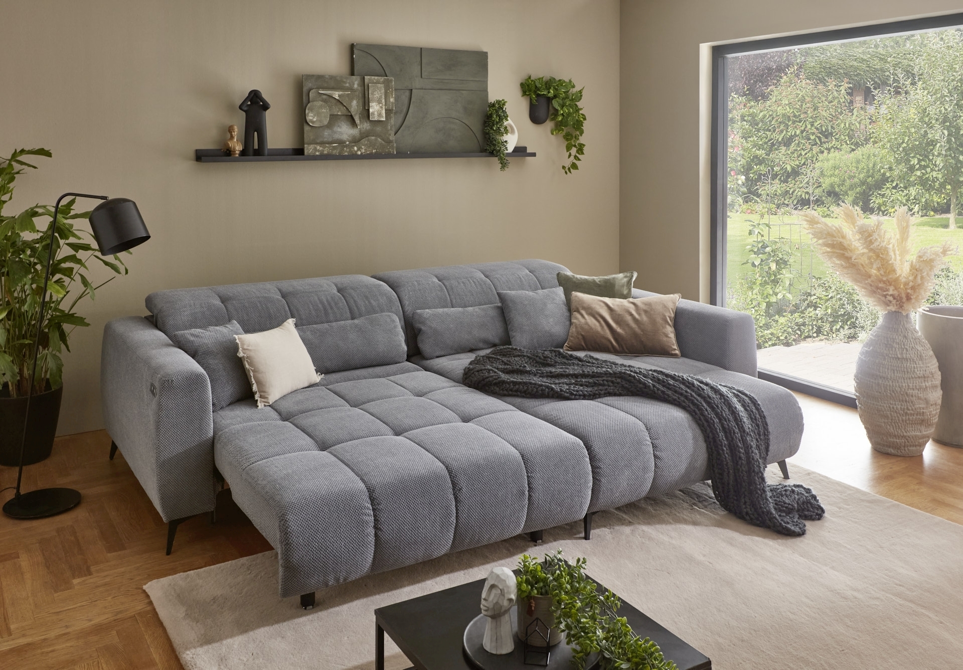 | Ausstattung Polster: | Kopfstützen, Ottomane rechts, Sitzvorzug motorisch, inkl. Kissen | ||
