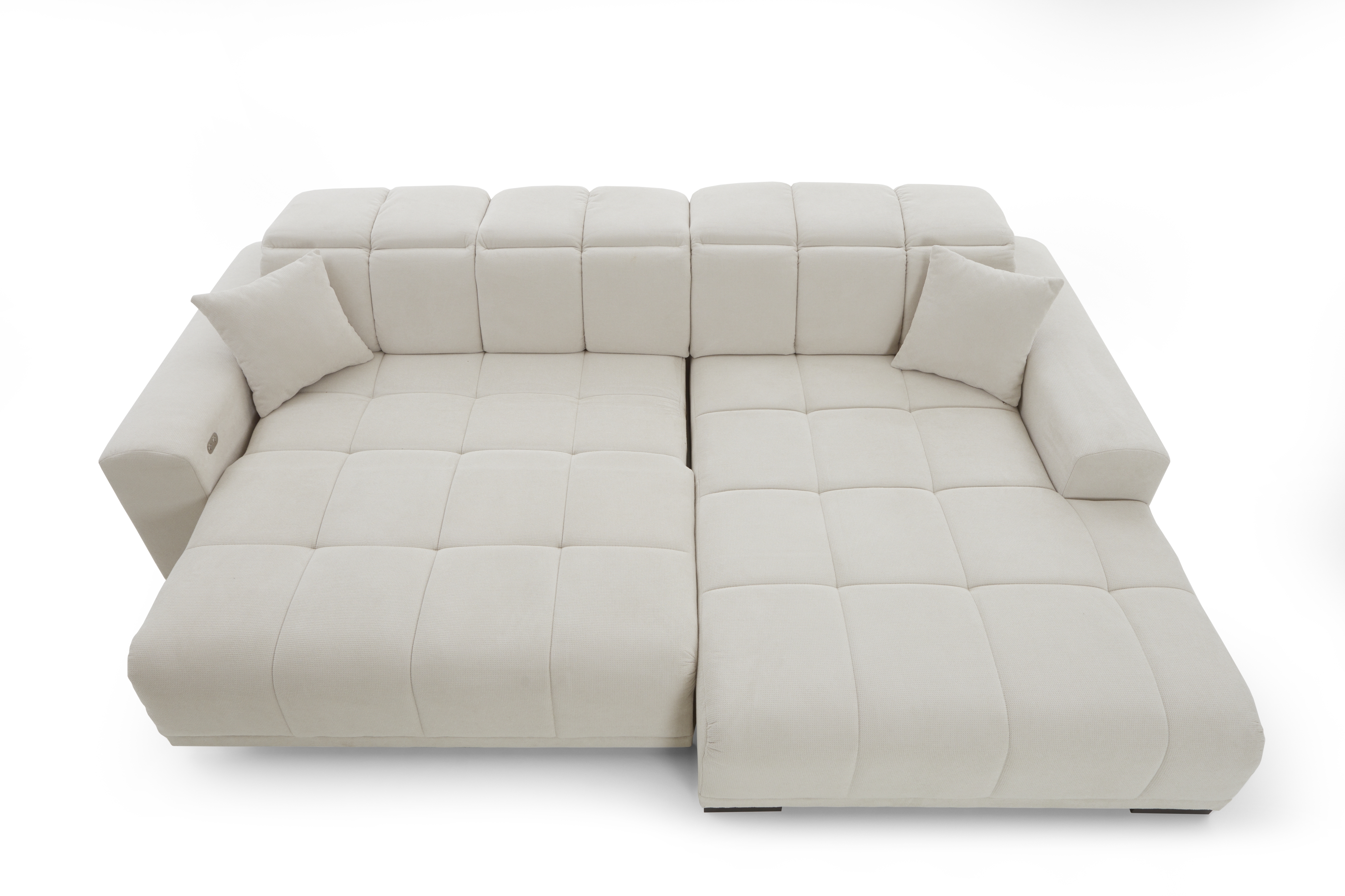 Ausstattung Polster: | Kopfstützen, Ottomane rechts, Sitzvorzug motorisch, inkl. Kissen |