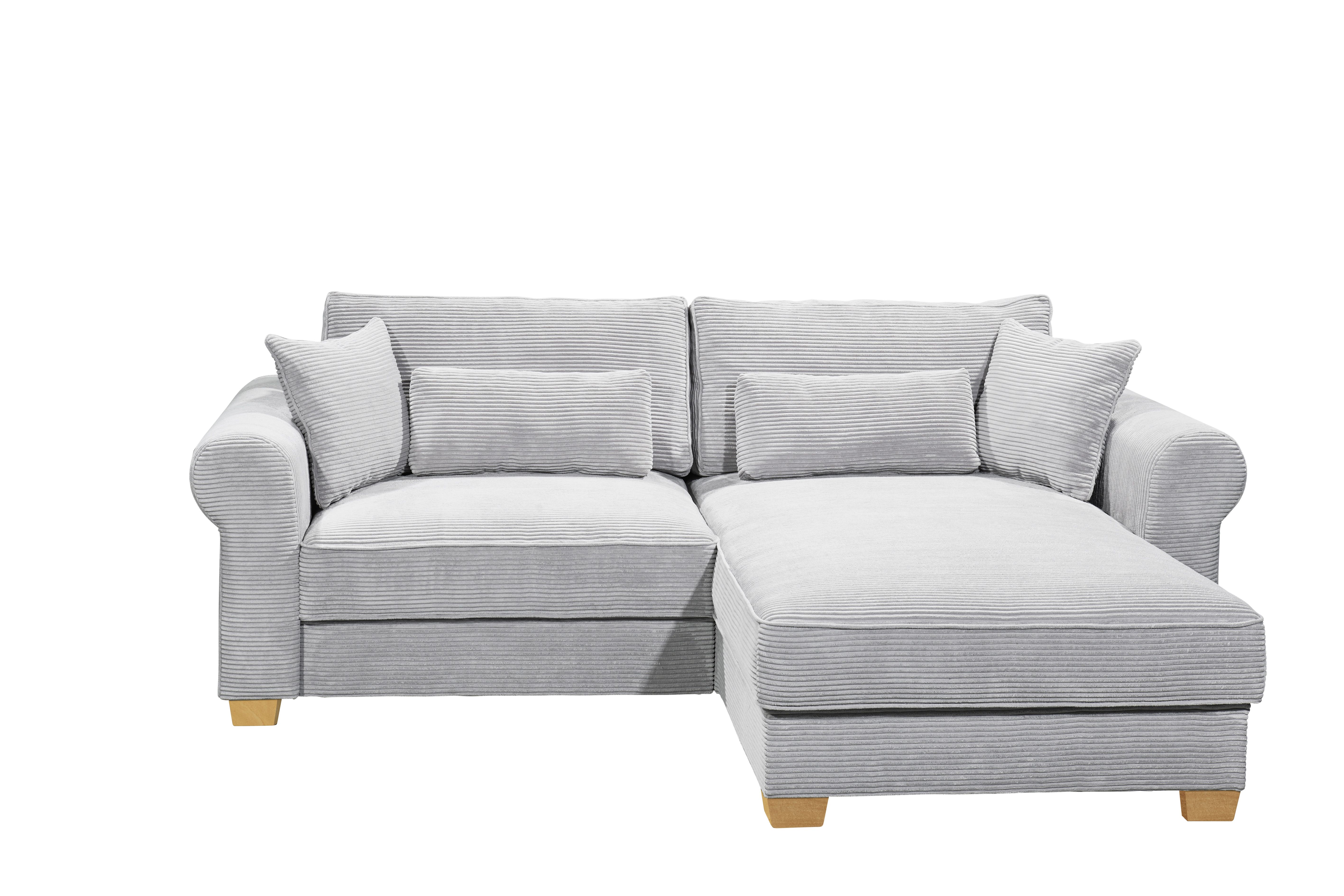 | Ausstattung Polster: | Ottomane rechts links wählbar, Rücken echt, inkl. Bettkasten, inkl. Kissen | ||