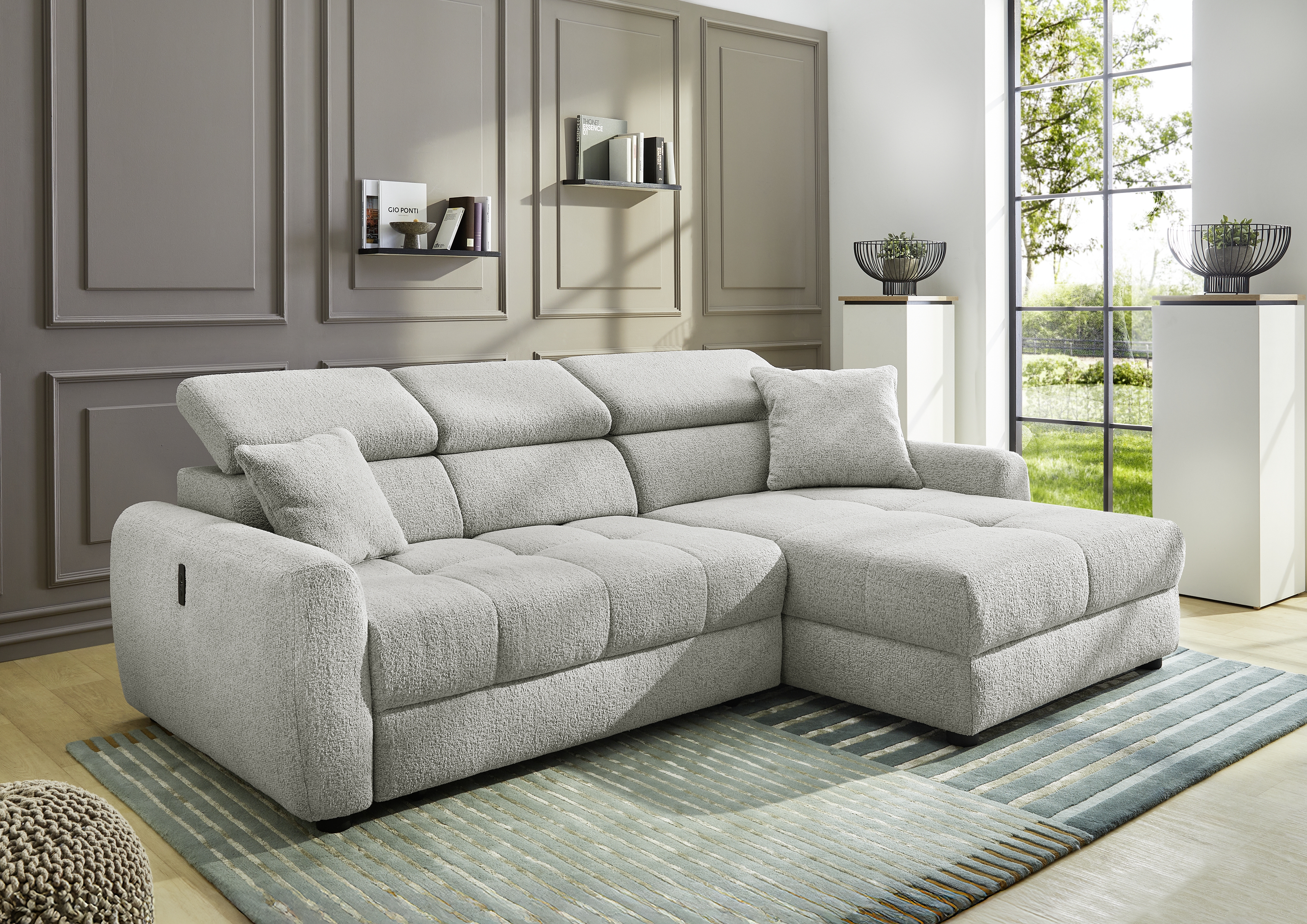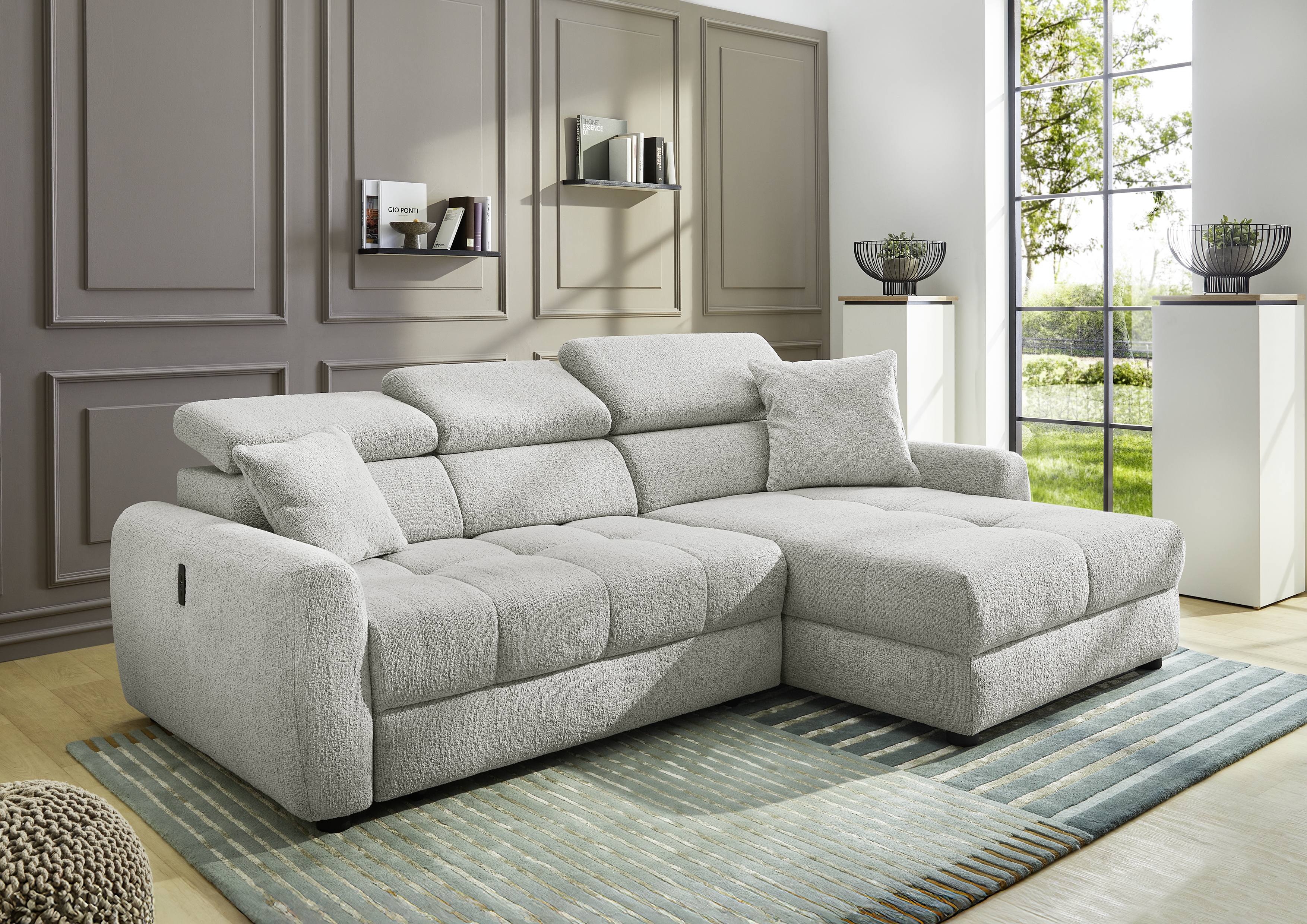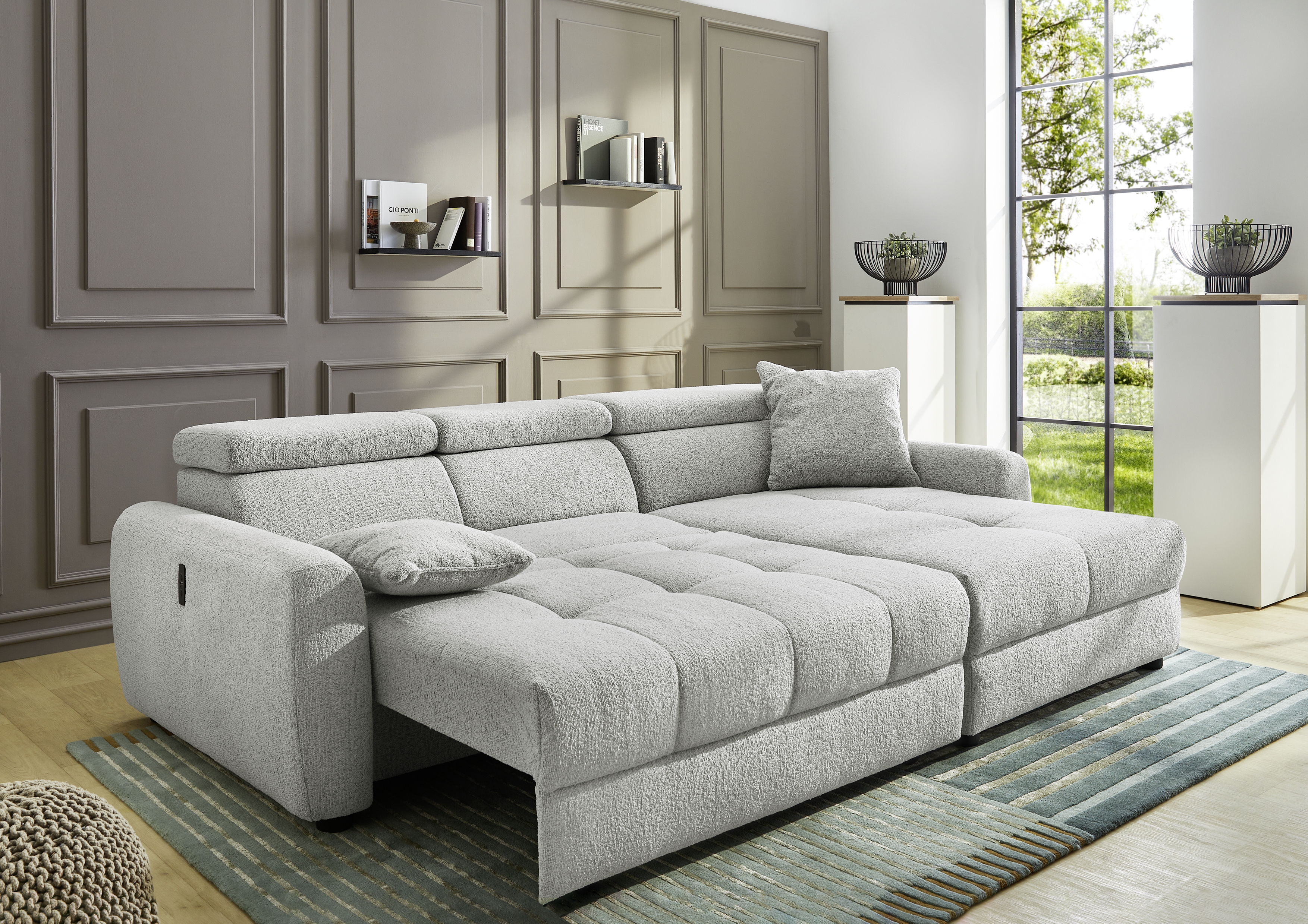| Ausstattung Polster: | Kopfstützen, Ottomane rechts links wählbar, Rücken echt, Sitzvorzug motorisch | ||