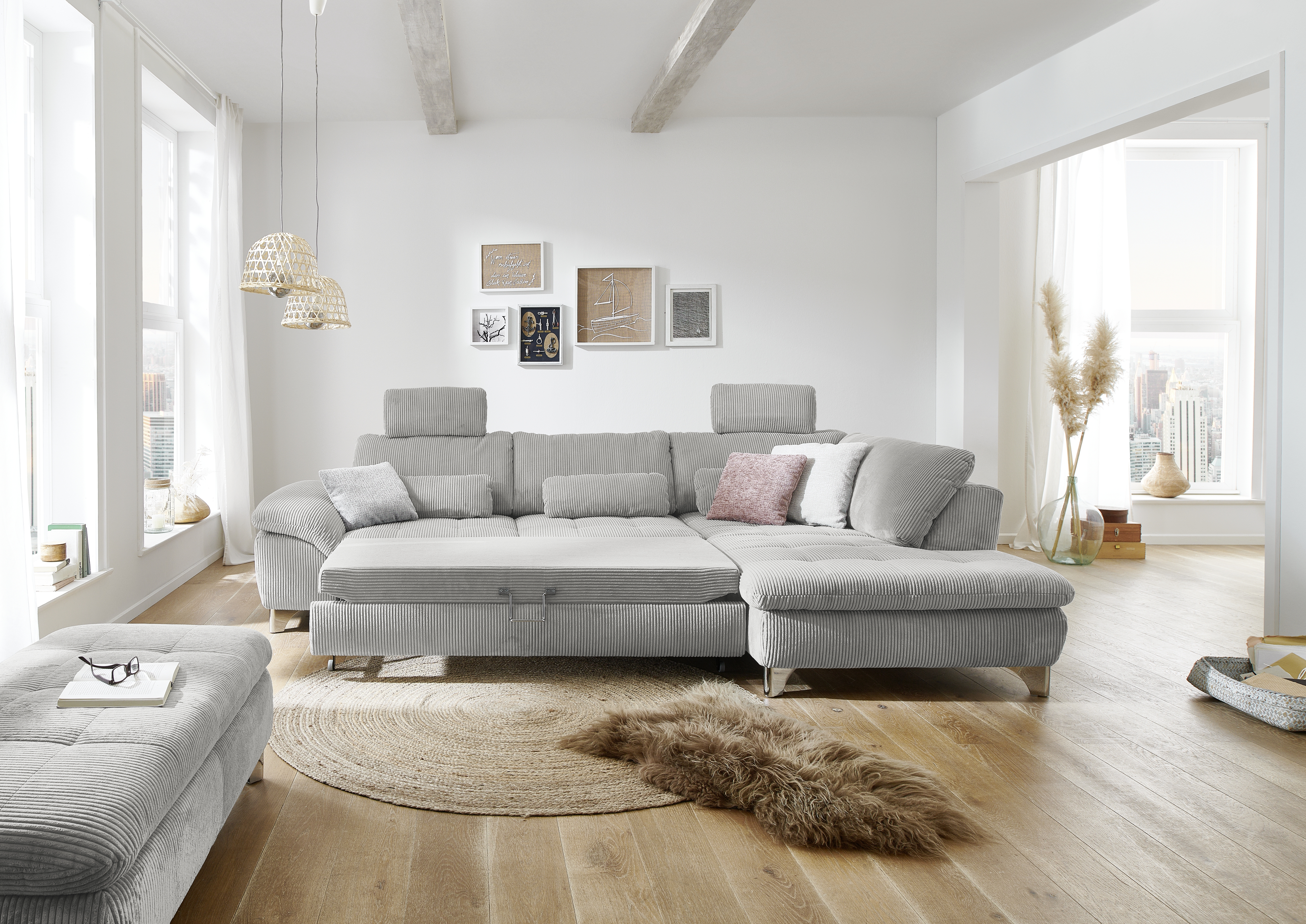 | Ausstattung Polster: | Kopfstützen, Ottomane rechts, Rücken echt, Schubladen, Sitzvorzug manuell | ||