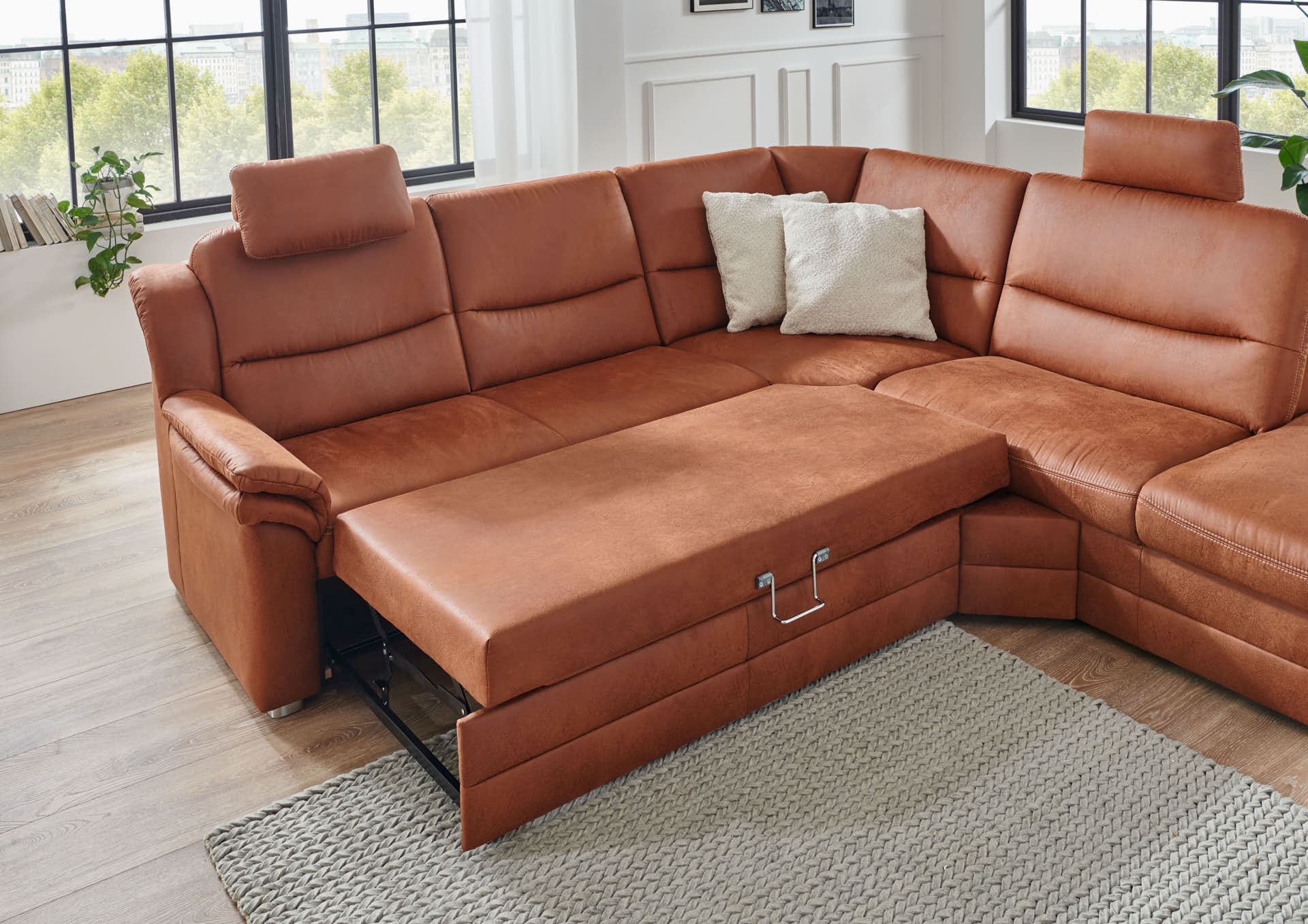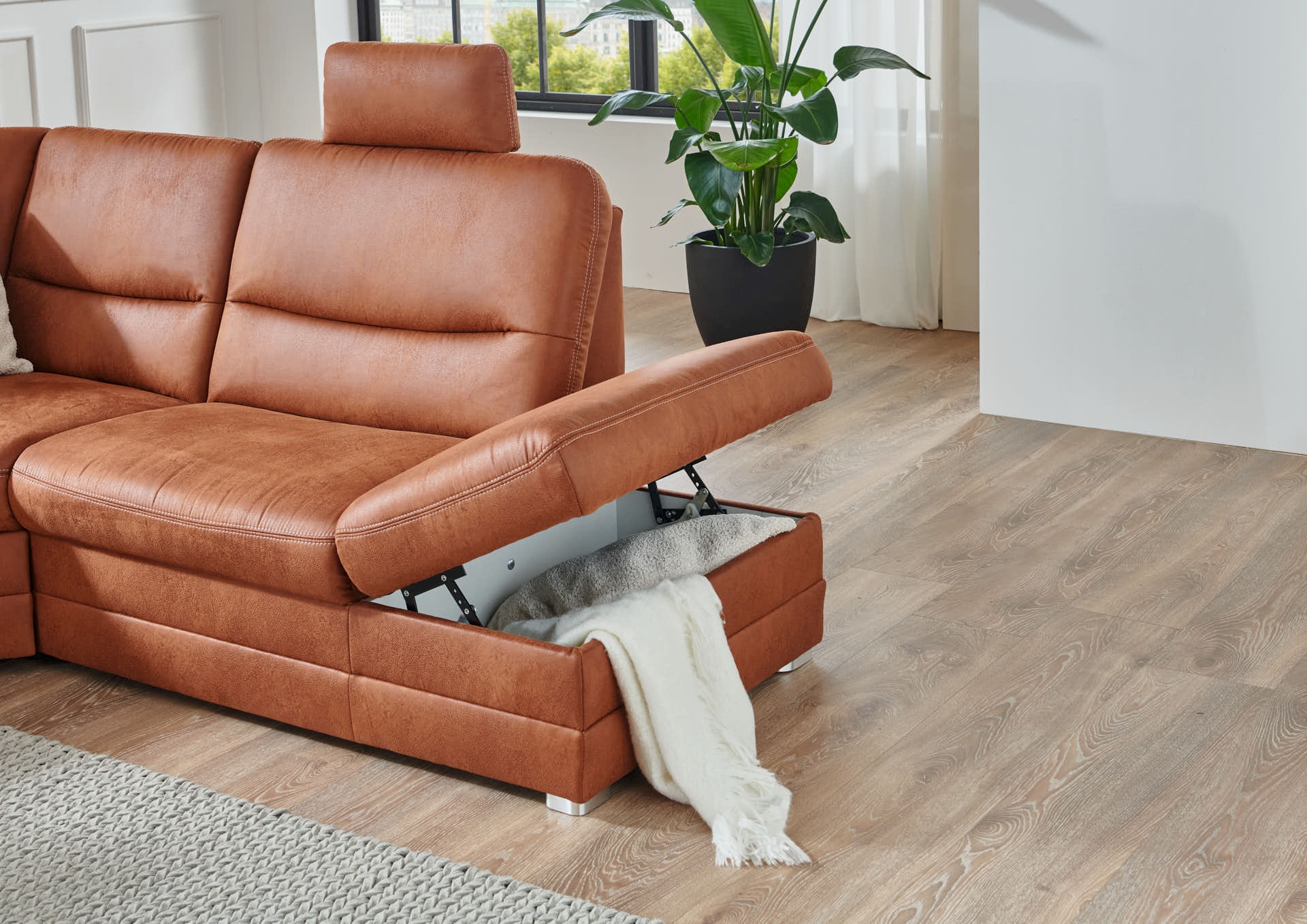 | Ausstattung Polster: | Kopfstützen, Rücken echt, Stauraum | ||