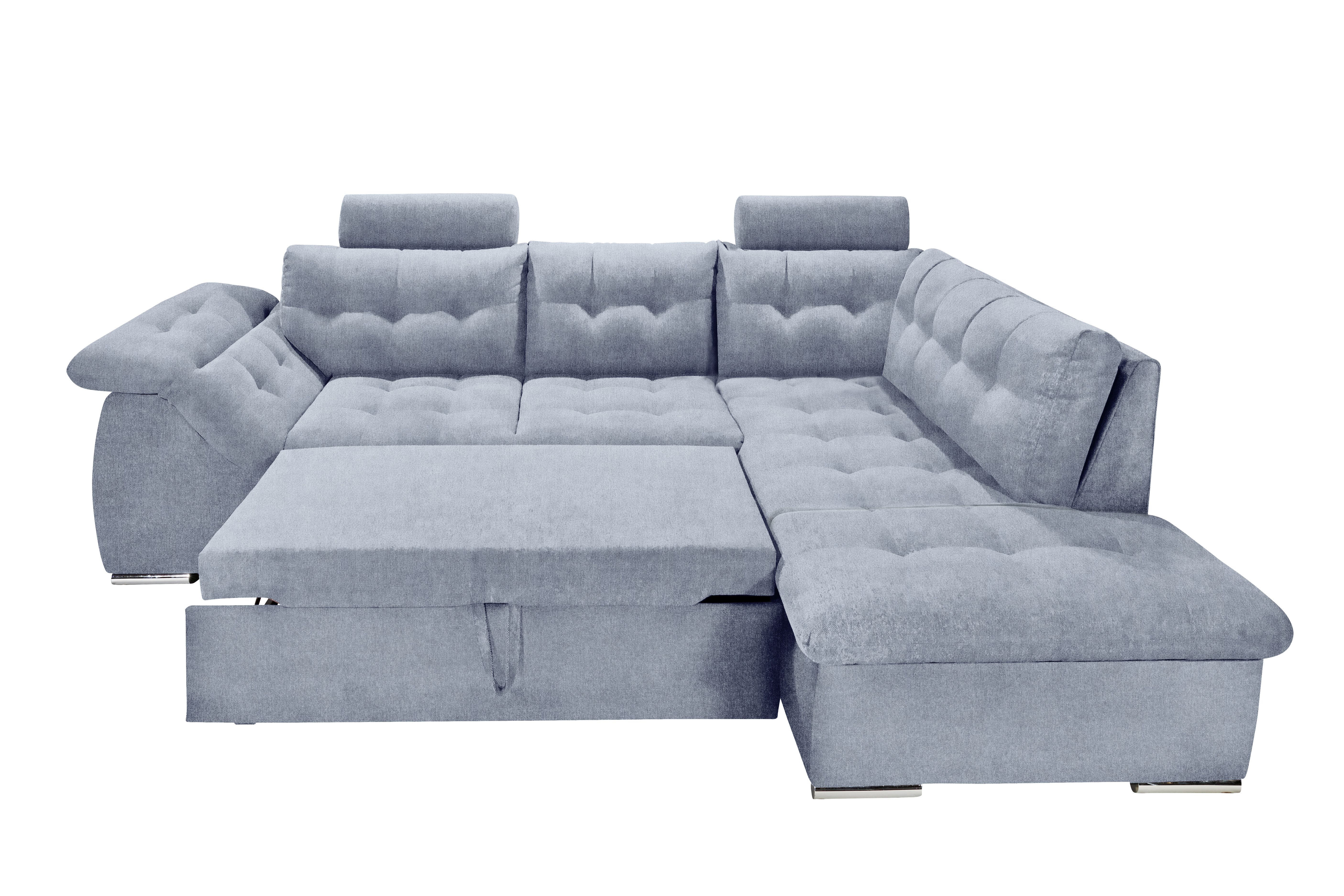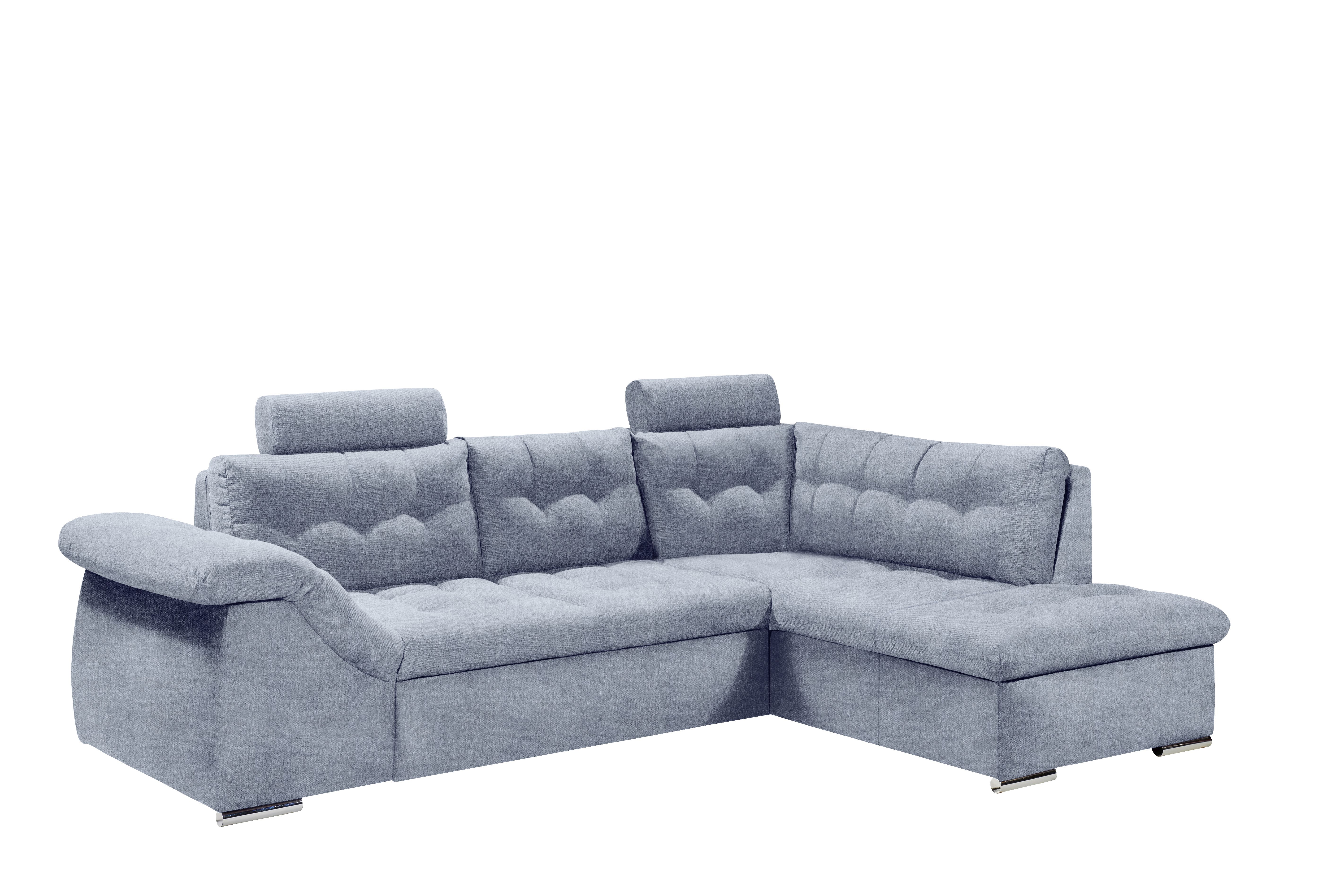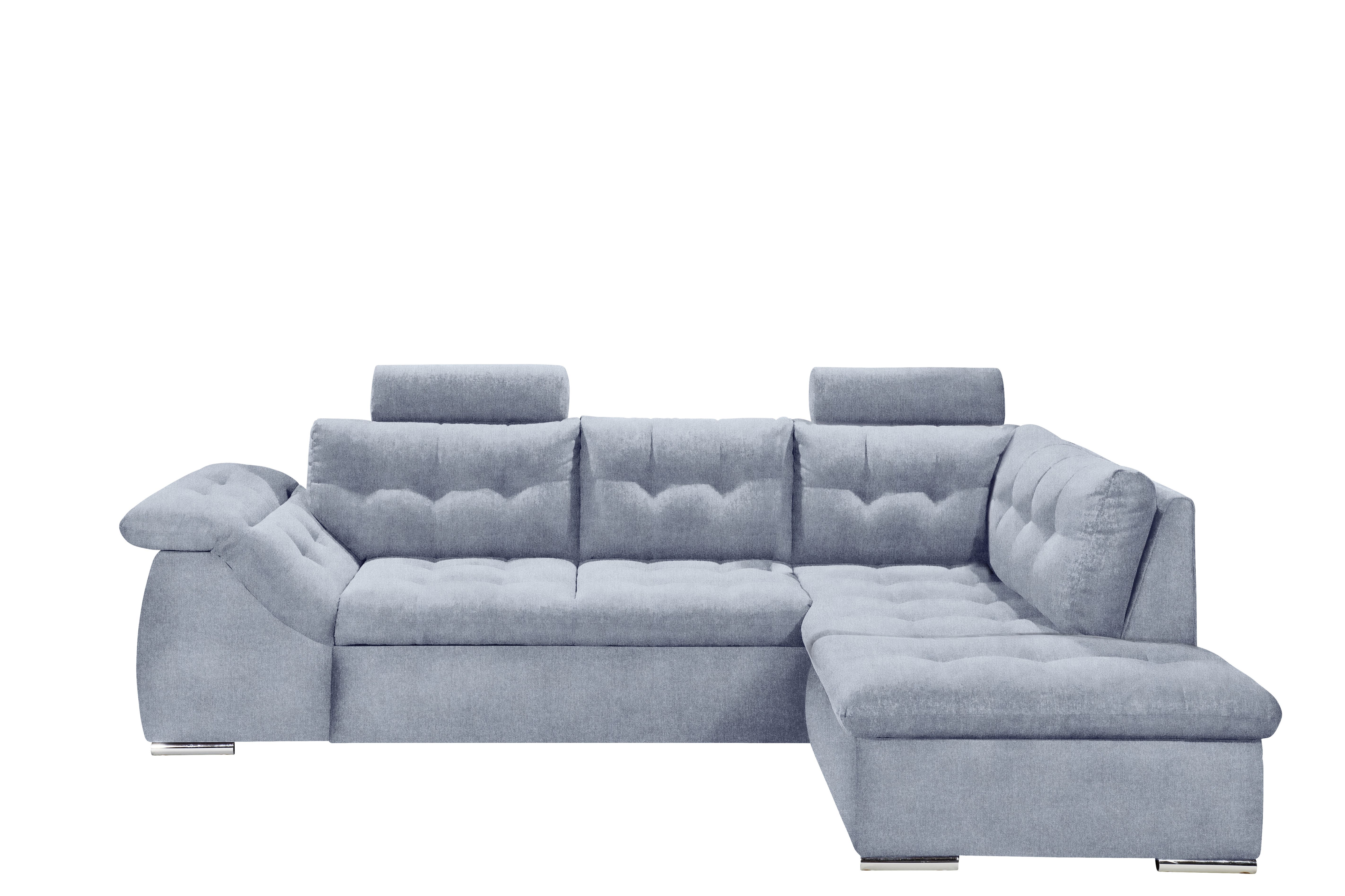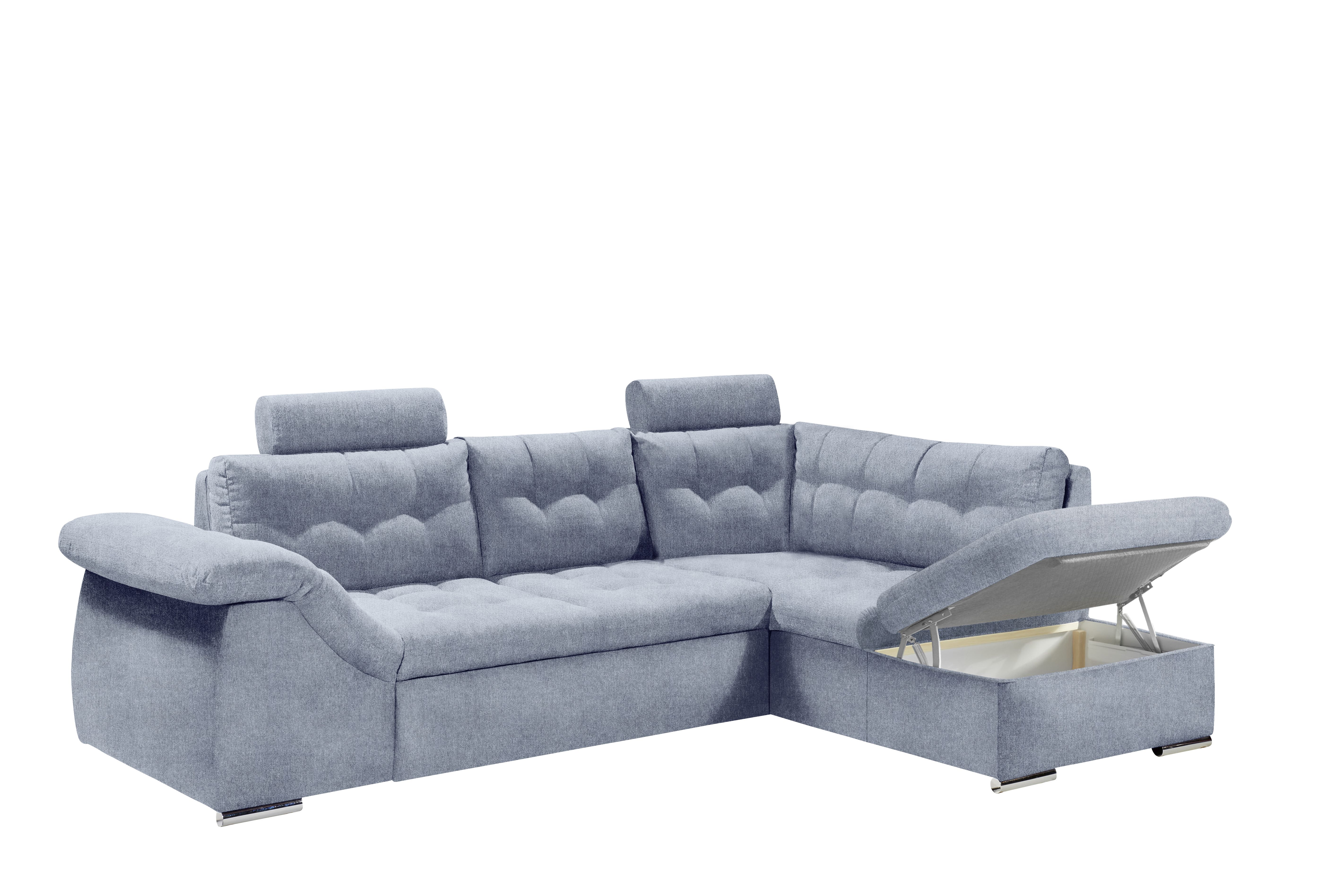 | Ausstattung Polster: | Kopfstützen, Ottomane rechts, Rücken echt, inkl. Bettkasten | ||