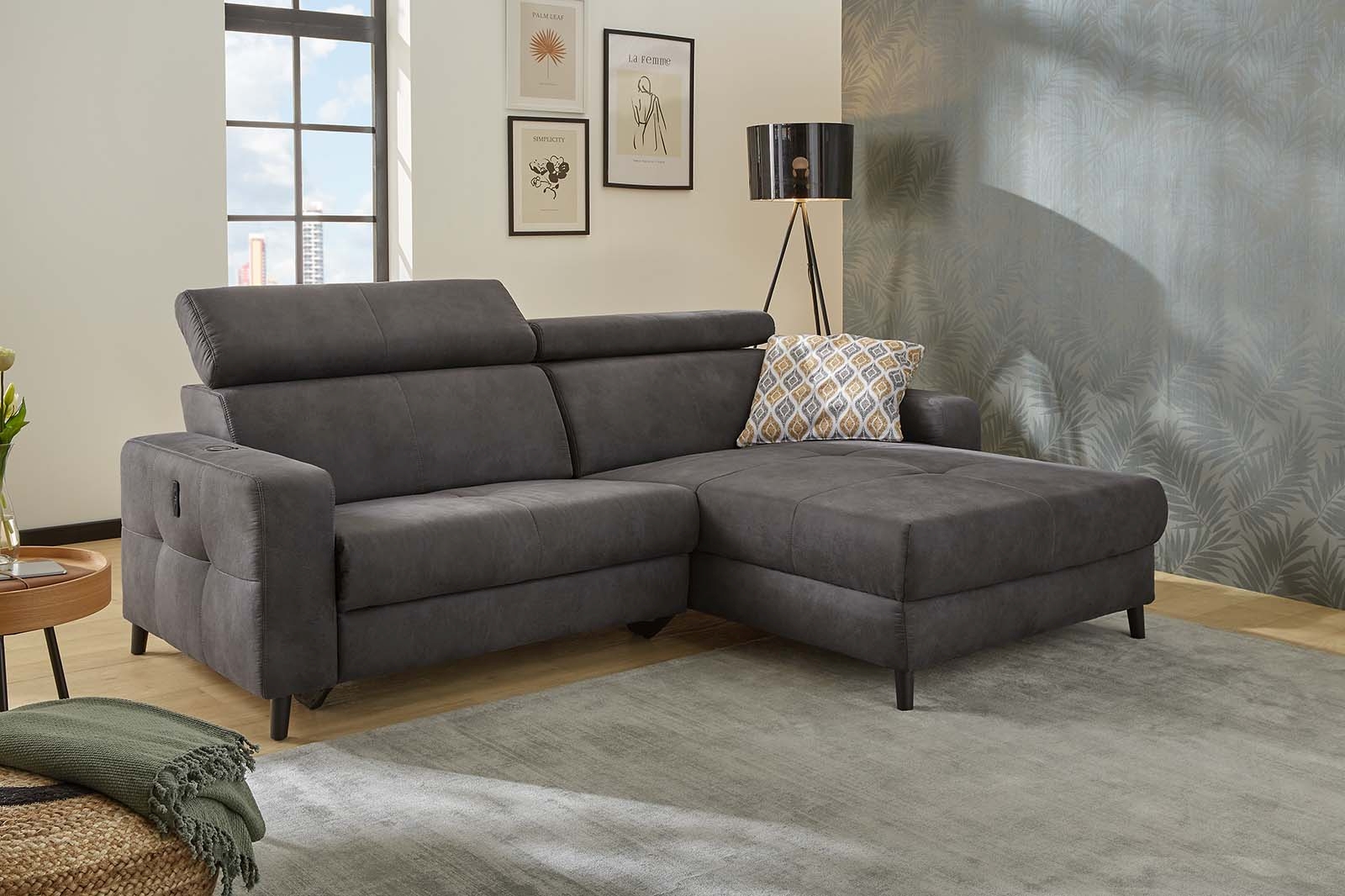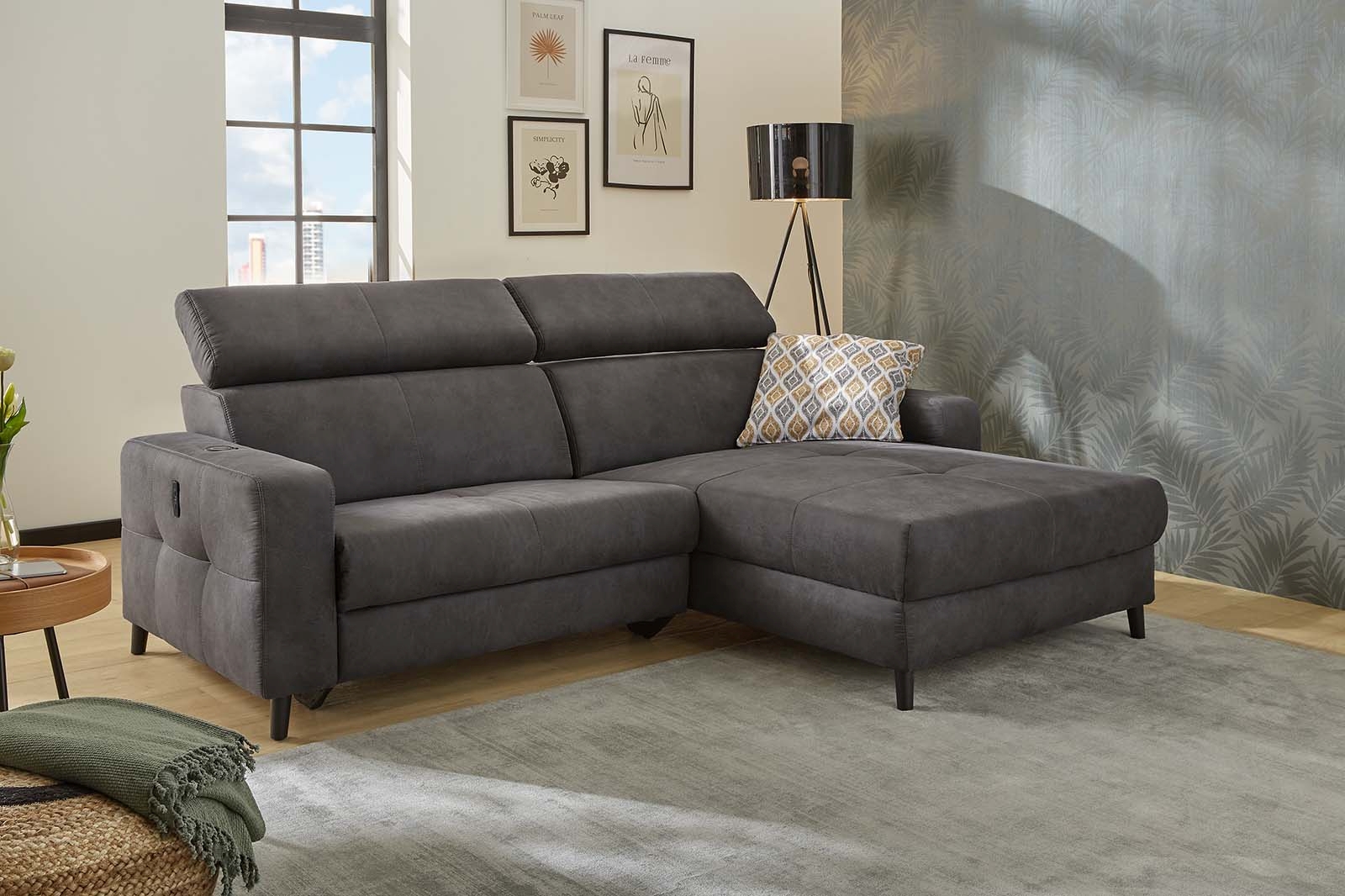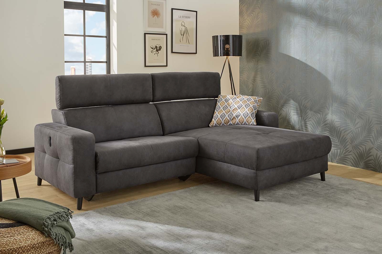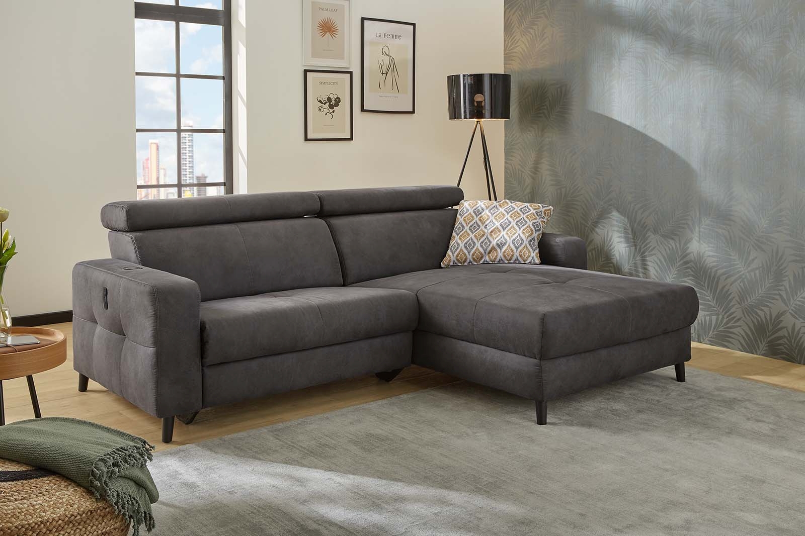 | Ausstattung Polster: | Kopfstützen, Ottomane rechts links wählbar, Rücken echt, USB Anschluss, inkl. Kissen | ||