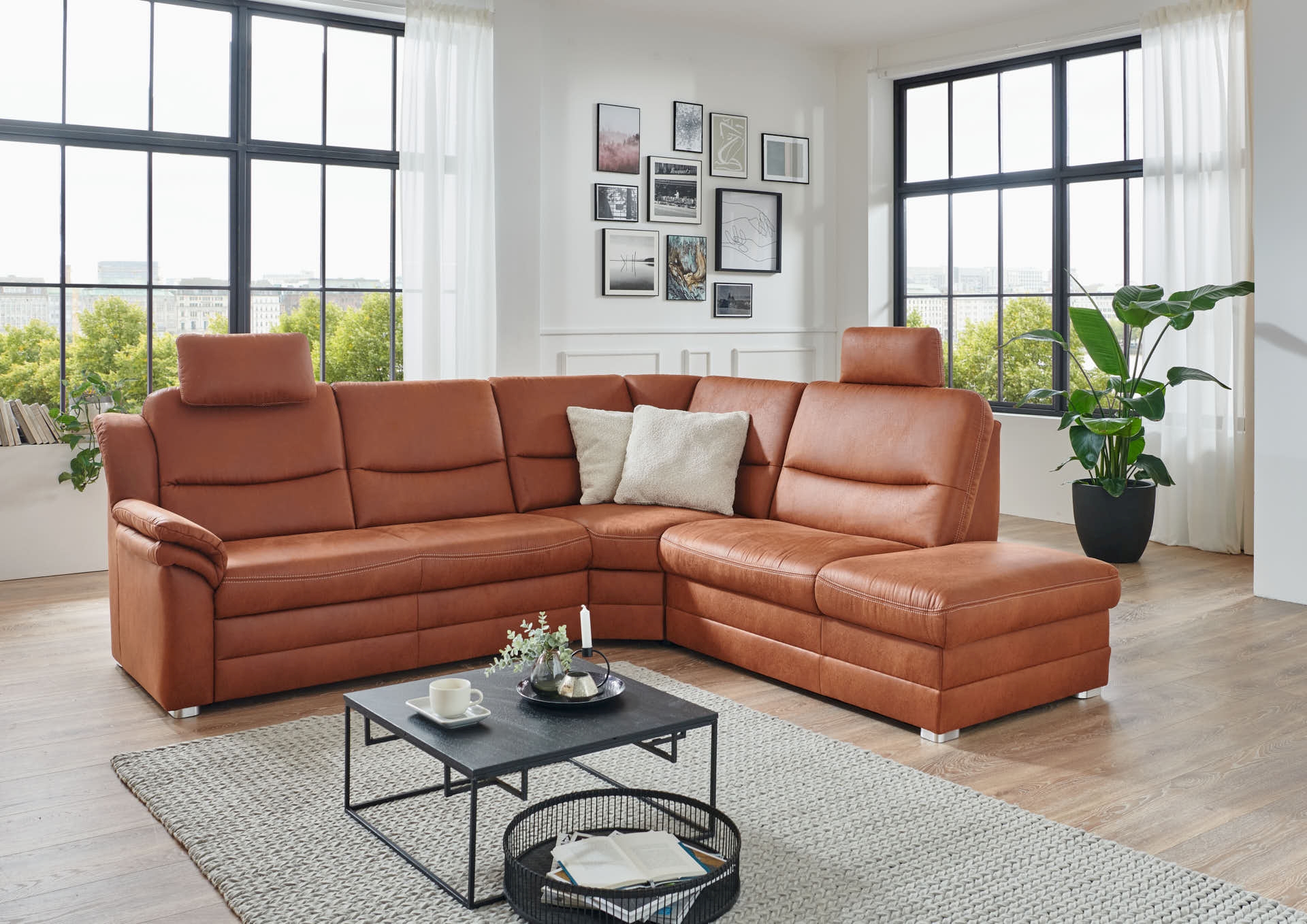 | Ausstattung Polster: | Kopfstützen, Ottomane links, Rücken echt, inkl. Bettkasten | ||