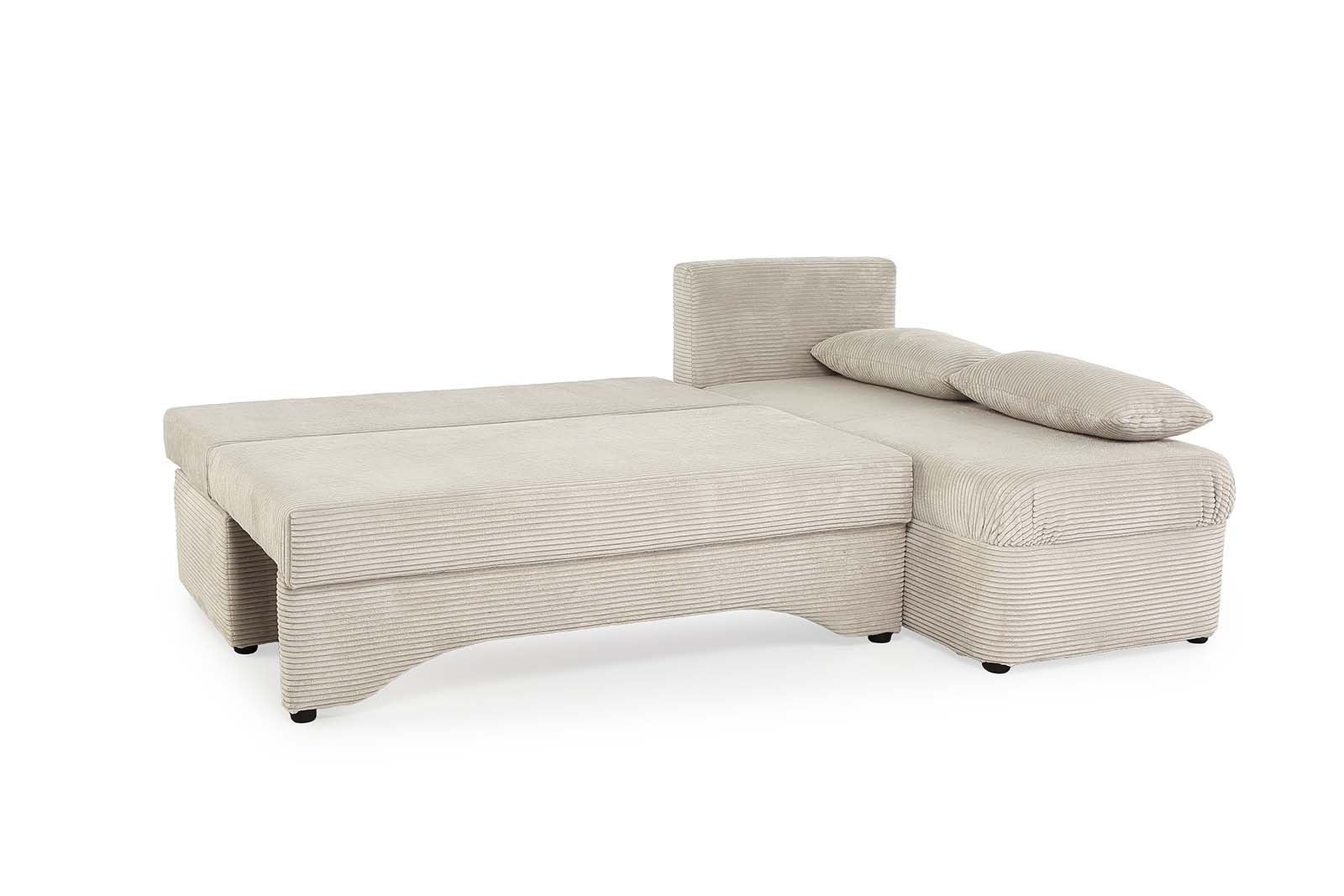 | Ausstattung Polster: | Ottomane rechts links wählbar, Rücken echt, inkl. Bettkasten, inkl. Kissen | ||