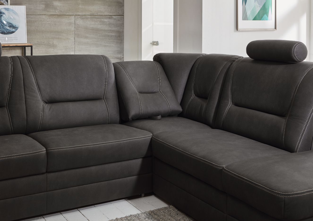 | Ausstattung Polster: | Kopfstützen, Ottomane rechts, Rücken echt, Stauraum | ||