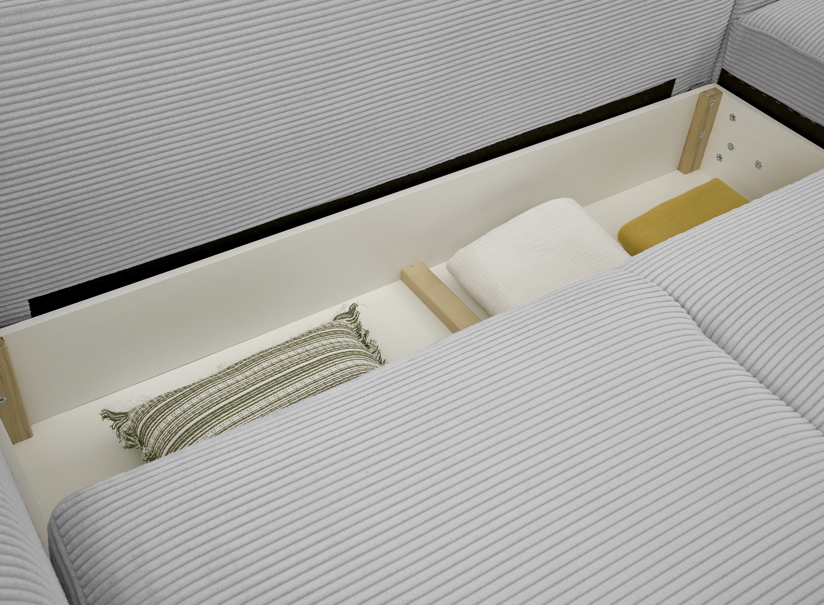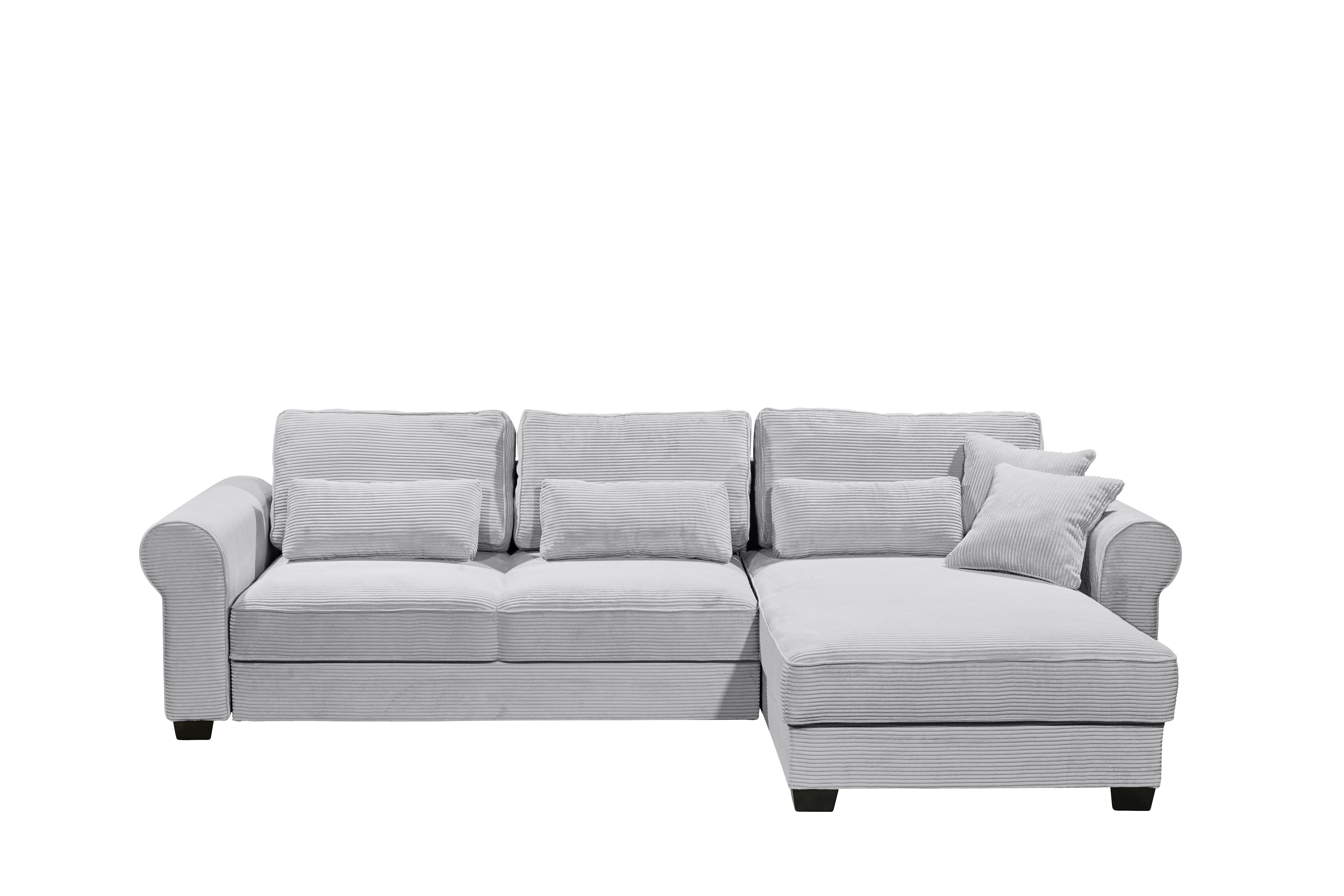 | Ausstattung Polster: | Ottomane rechts links wählbar, Rücken echt, inkl. Bettkasten, inkl. Kissen | ||