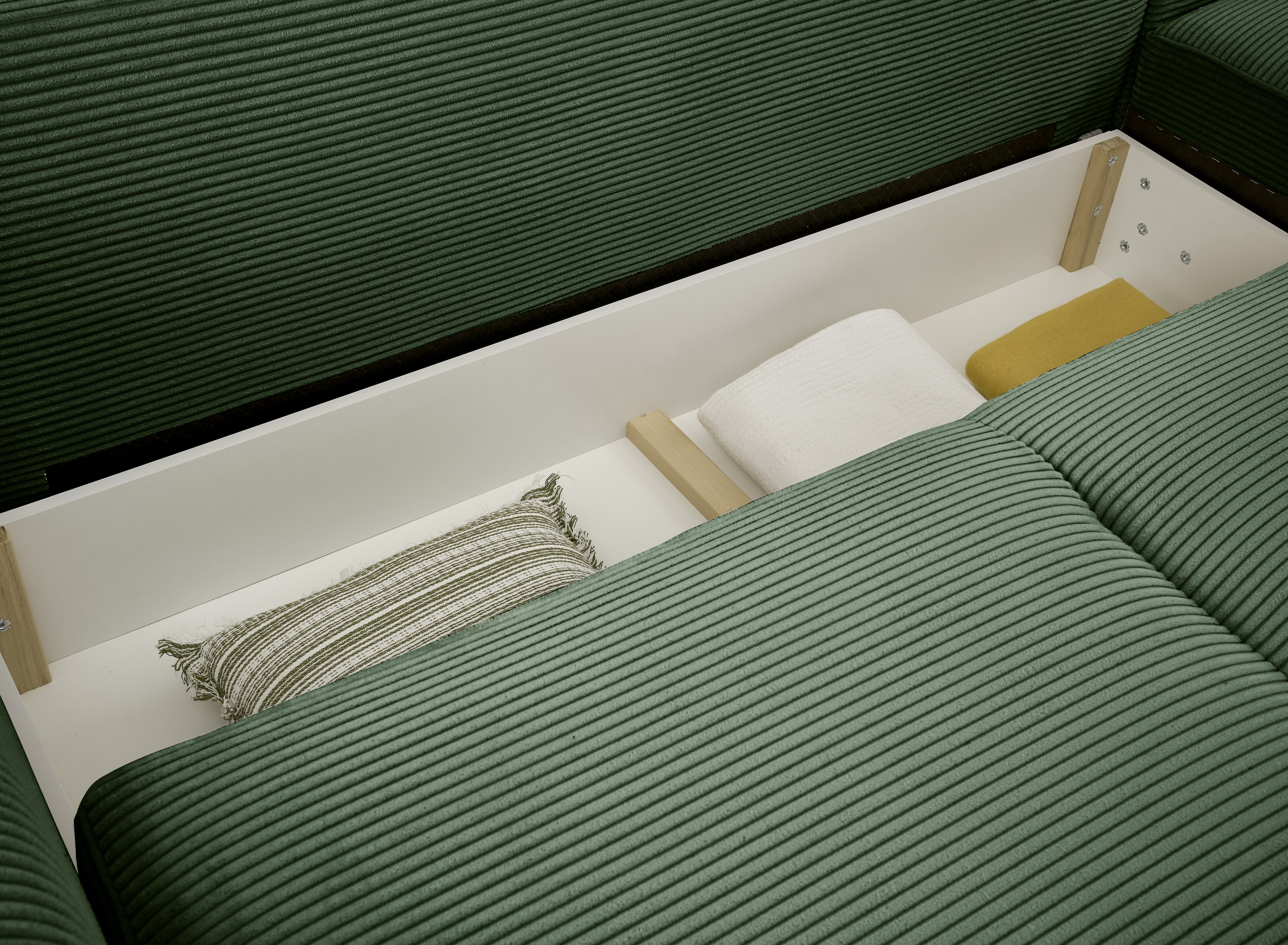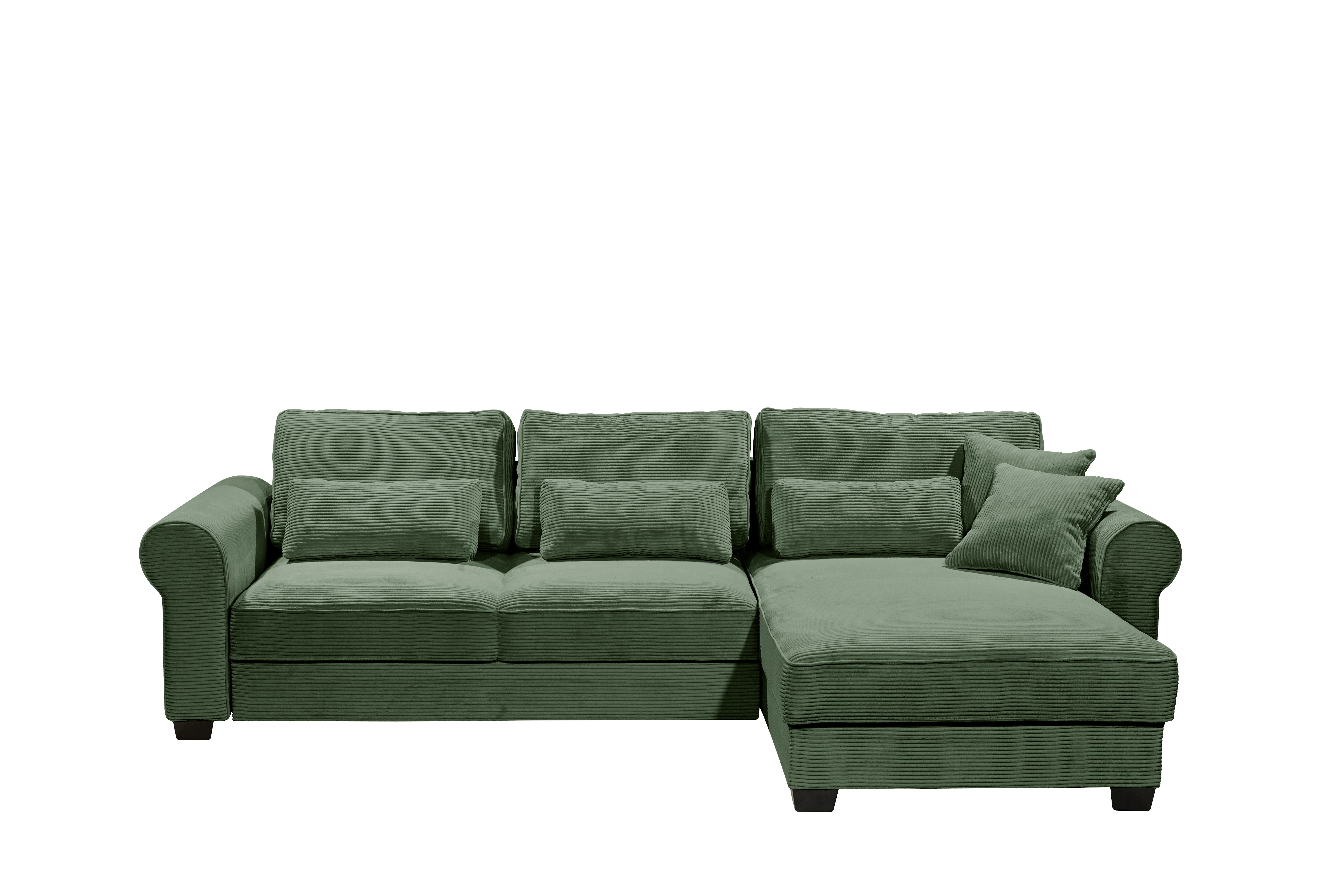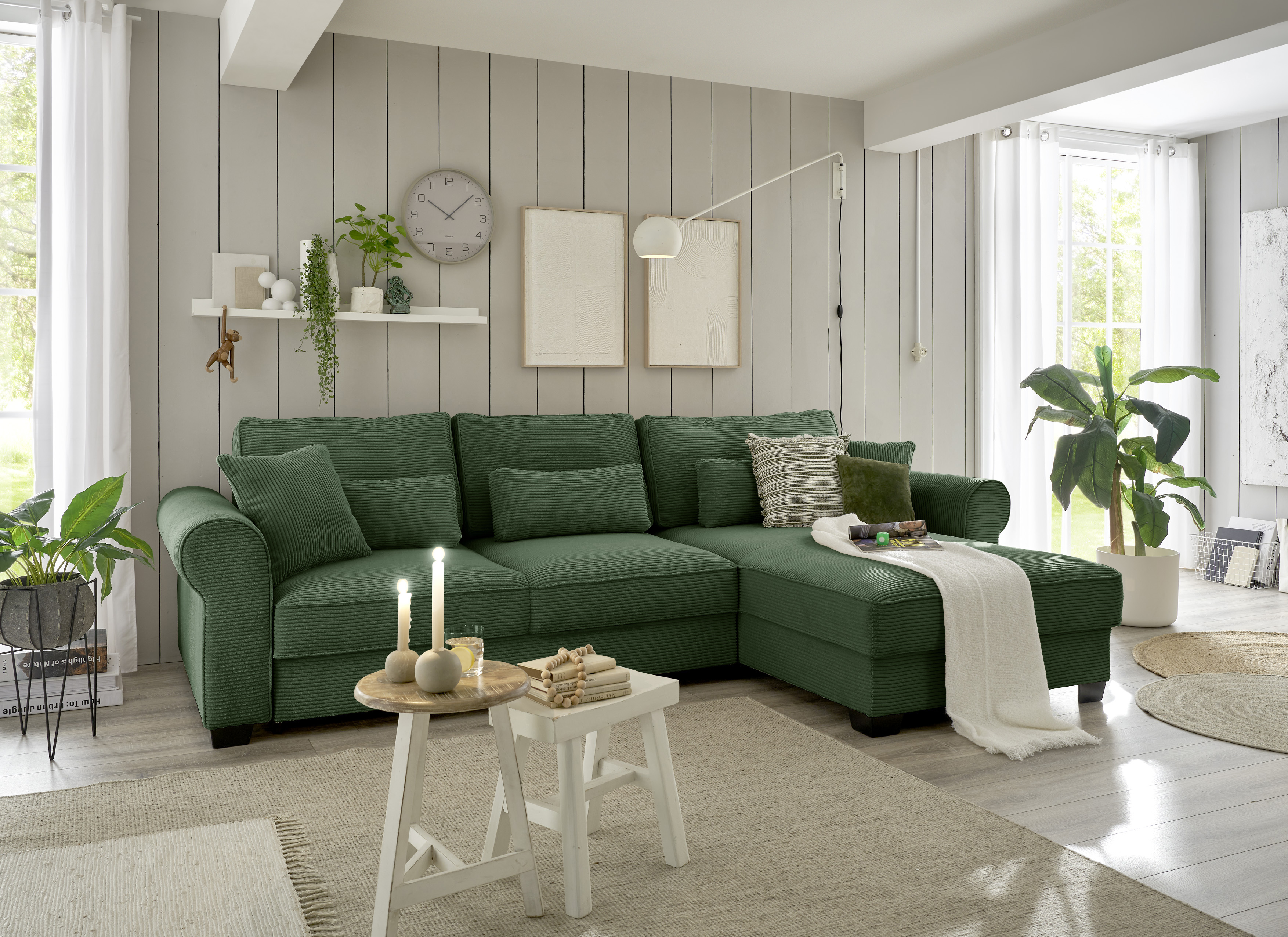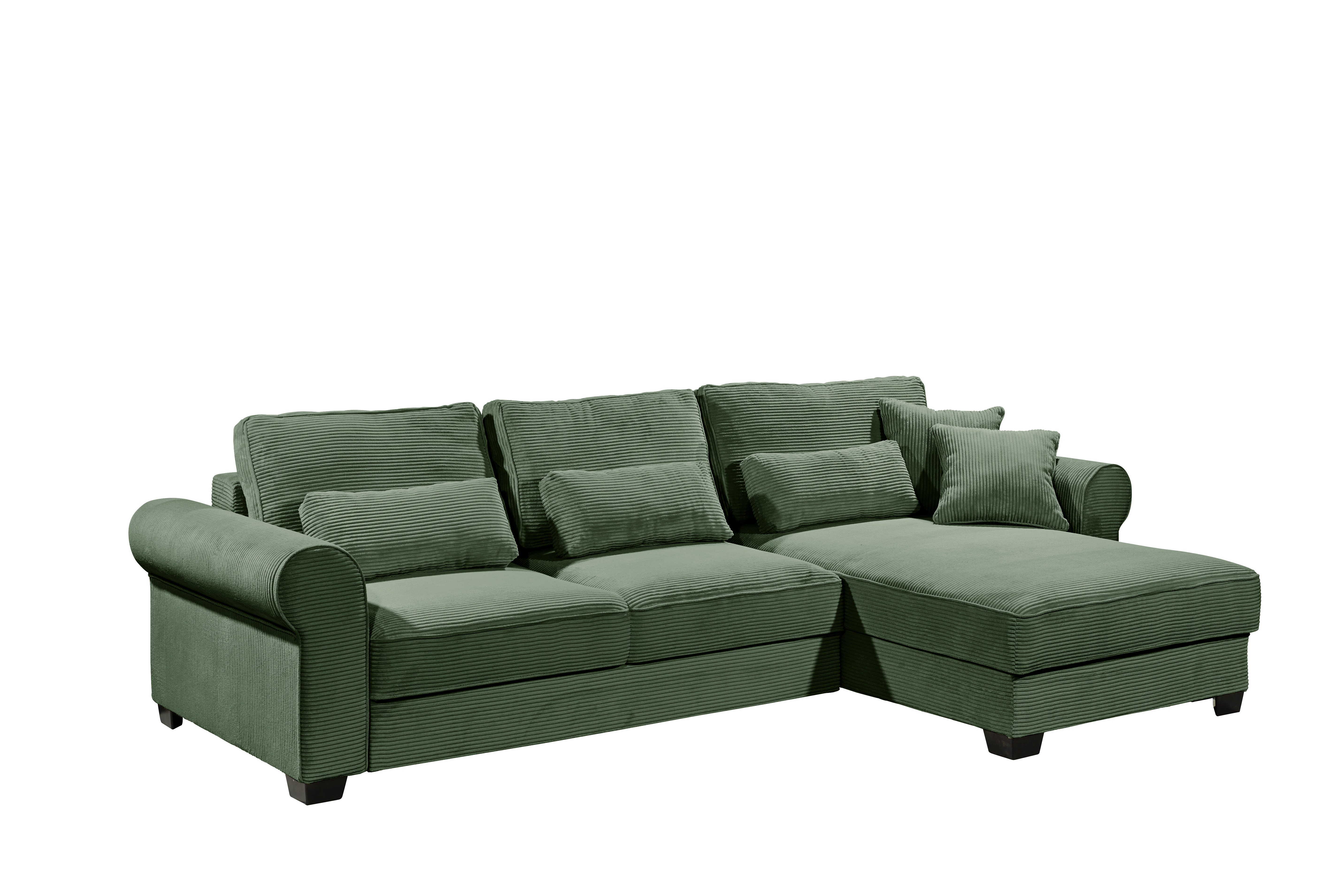 | Ausstattung Polster: | Ottomane rechts links wählbar, Rücken echt, inkl. Bettkasten, inkl. Kissen | ||