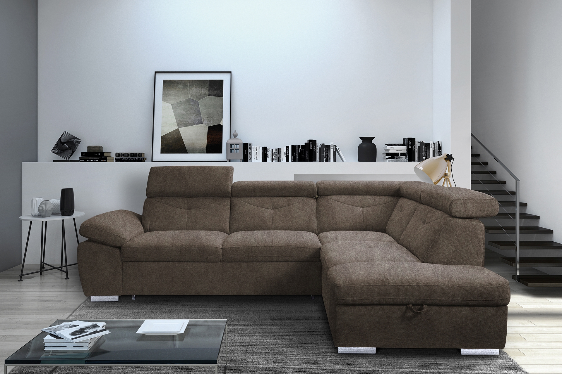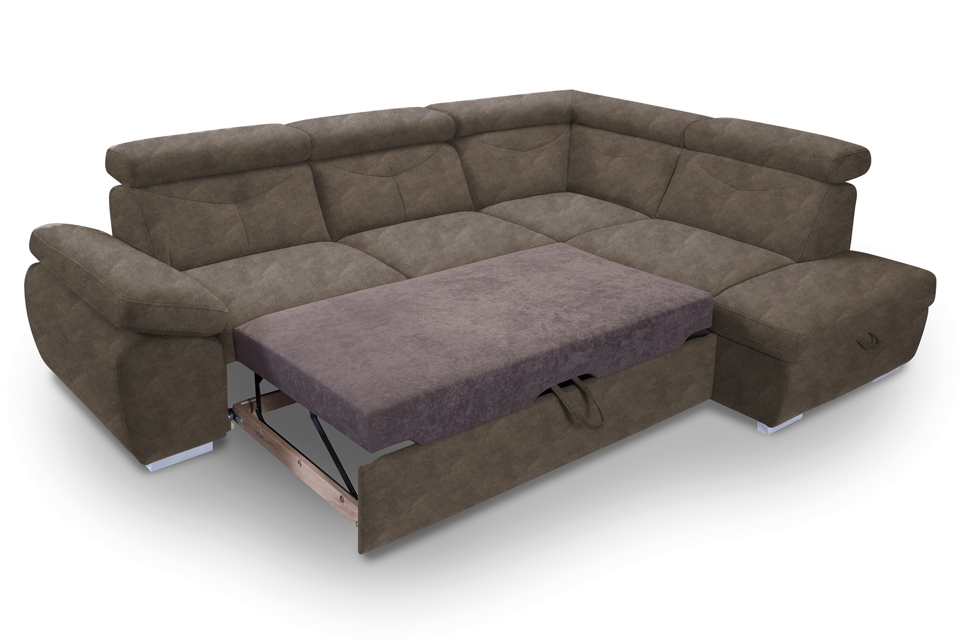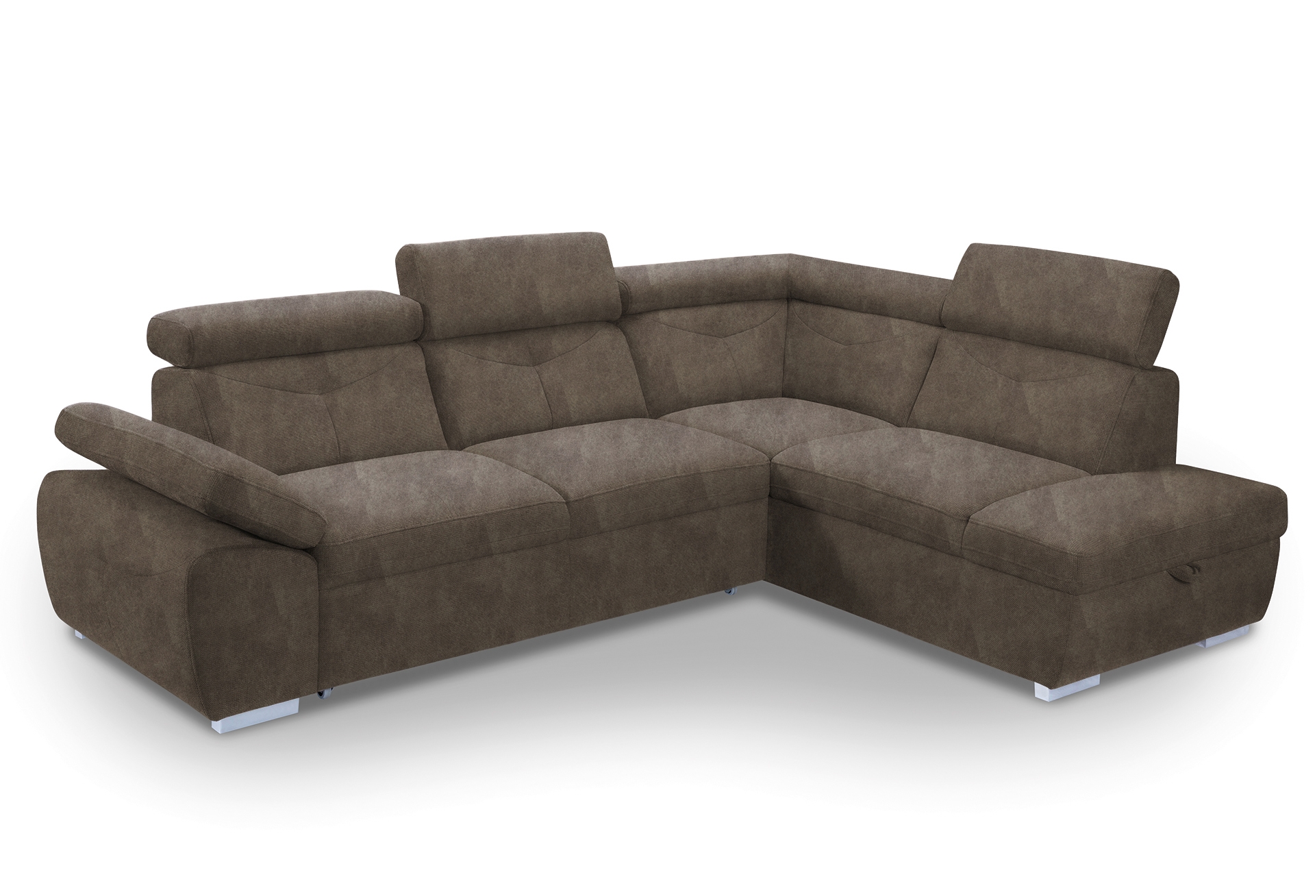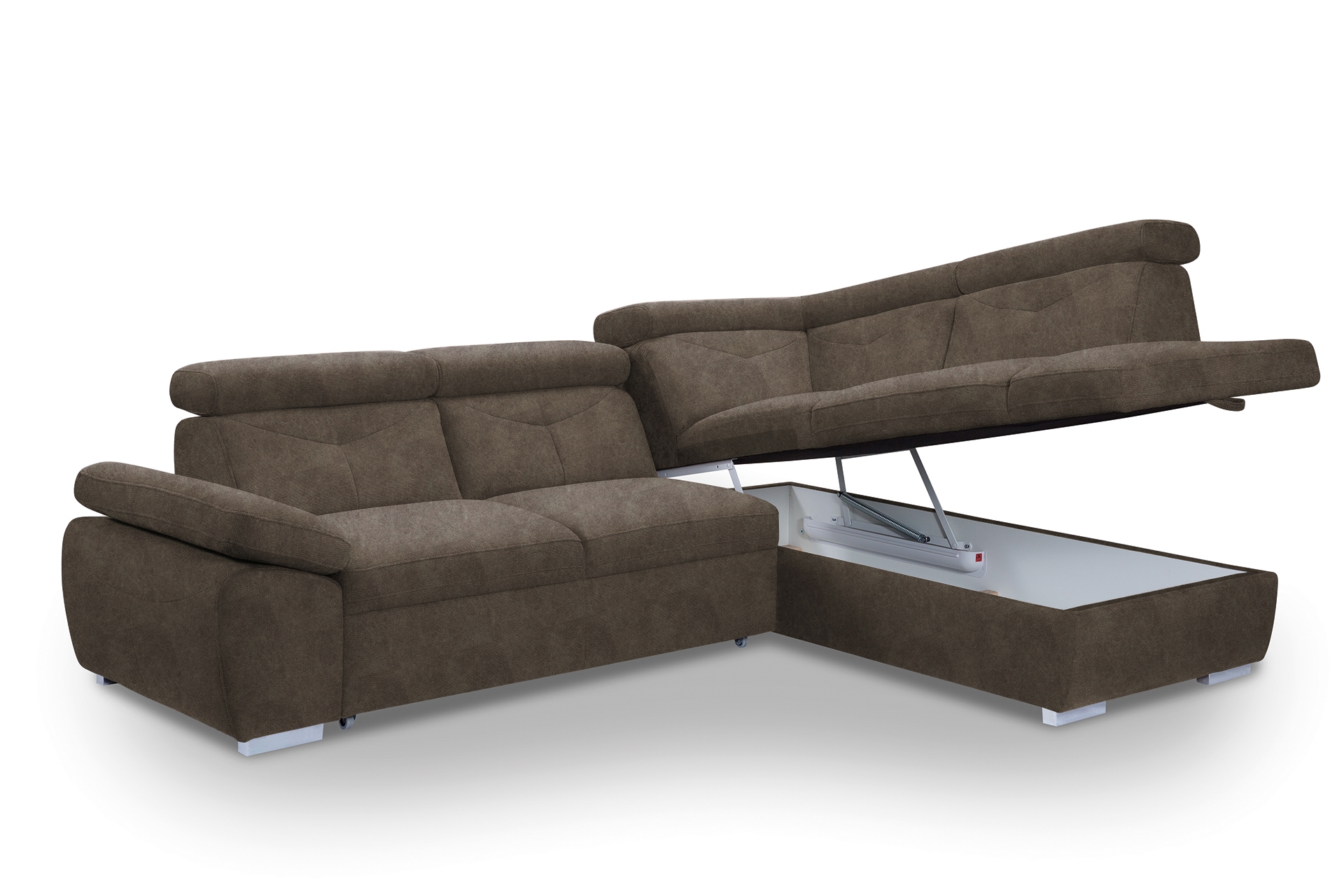 | Ausstattung Polster: | Kopfstützen, Ottomane rechts, inkl. Bettkasten | ||