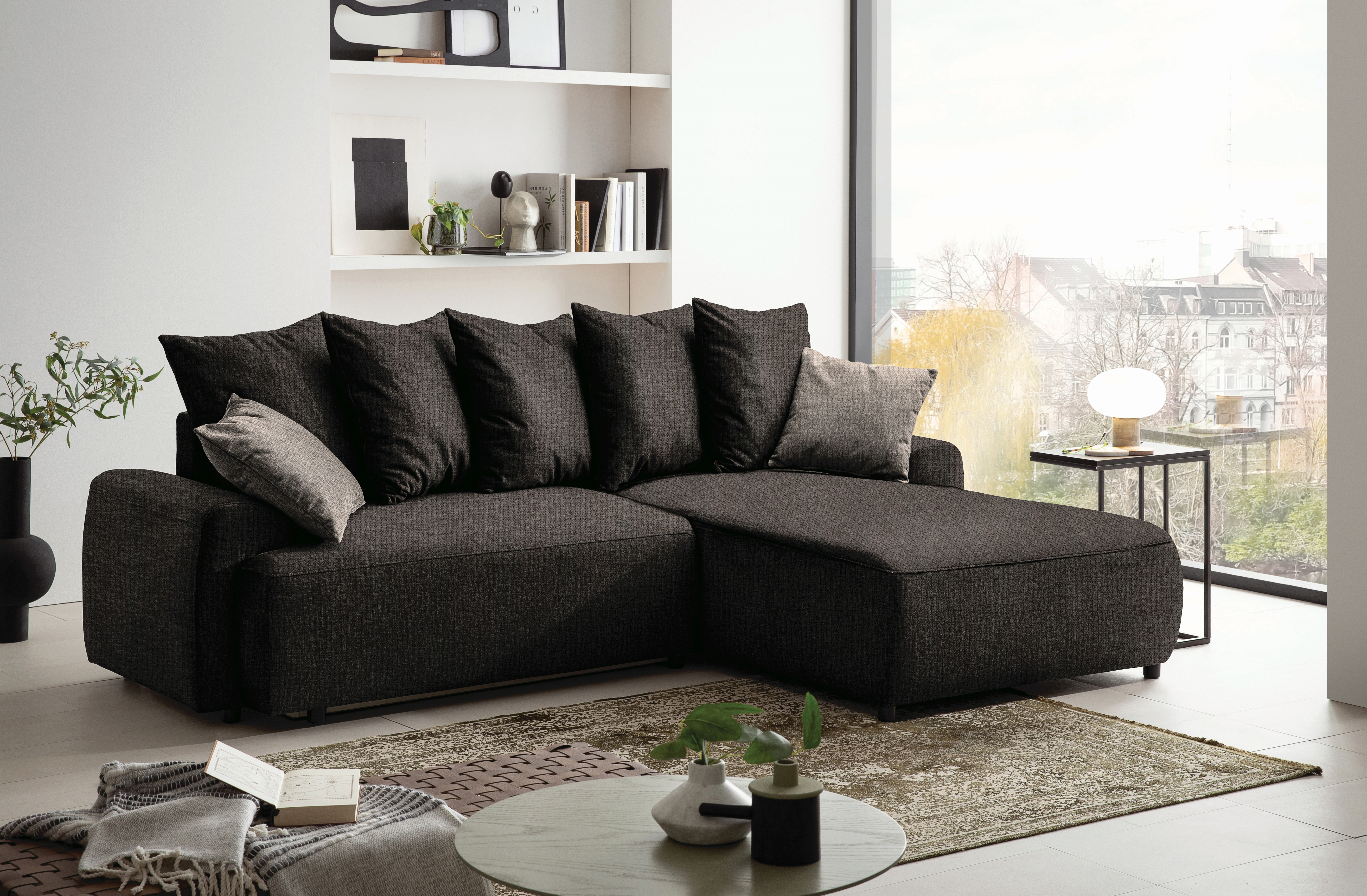 | Ausstattung Polster: | Ottomane rechts, Rücken echt, inkl. Kissen | ||