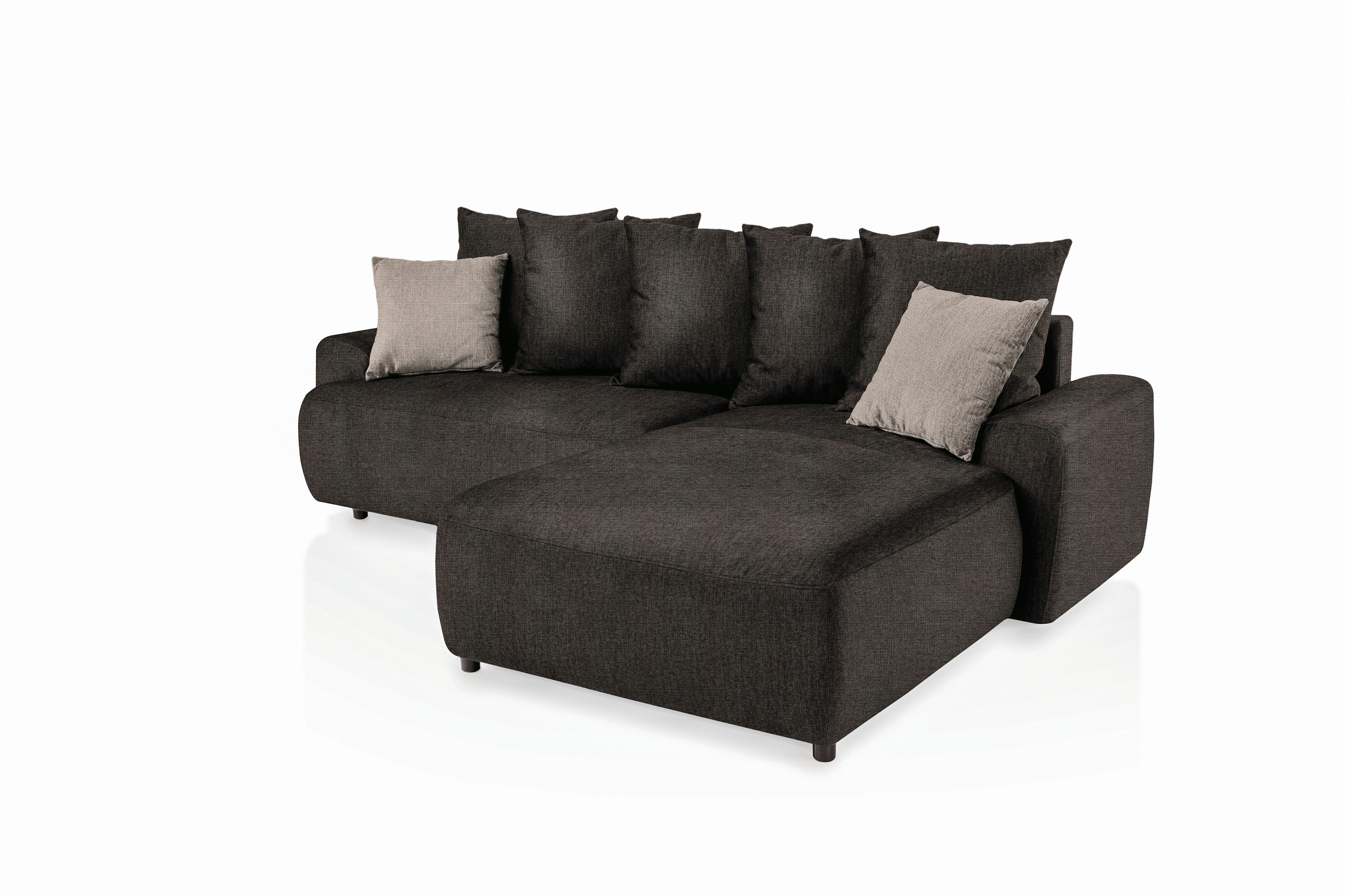 Bezug: Polsterecke im Stoff Aragon 97 in der Farbe braun aus 100% Polyester; Zierkissen im Stoff Aragon 20 in der Farbe taupe aus 100% Polyester