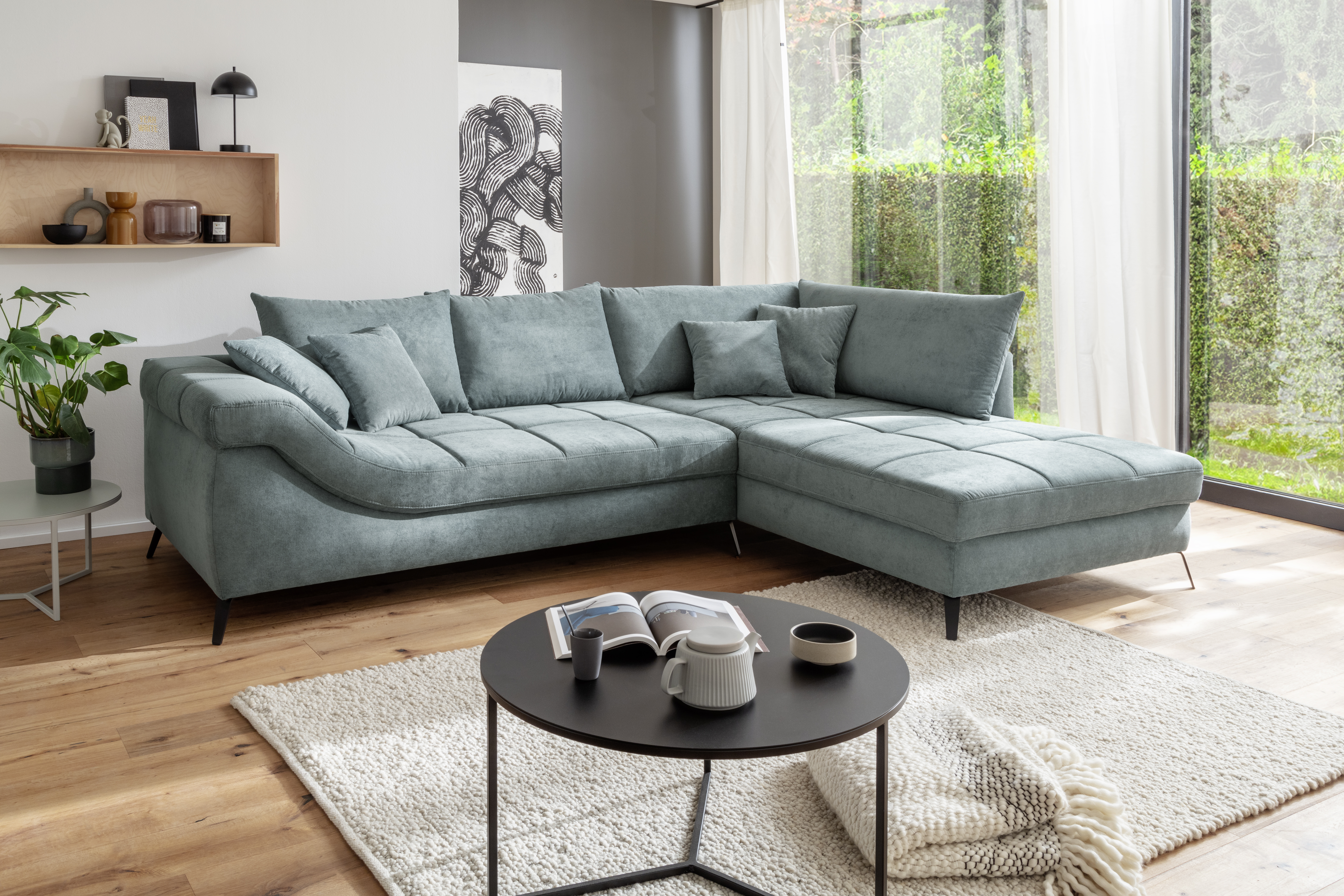 Ausstattung Polster: | Ottomane rechts links wählbar, Rücken echt, inkl. Kissen | ||