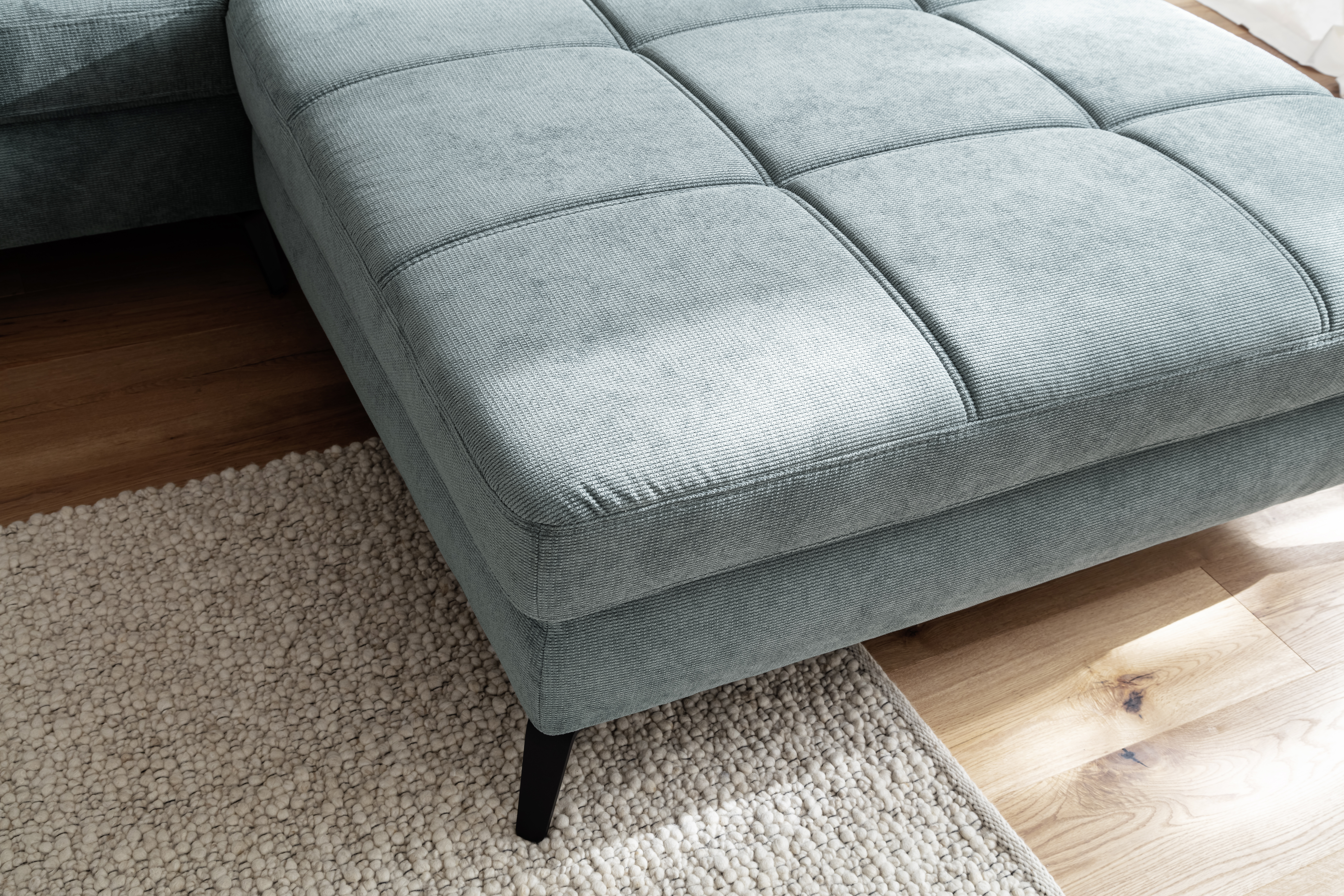 | Ausstattung Polster: | Ottomane rechts links wählbar, Rücken echt, inkl. Kissen | ||