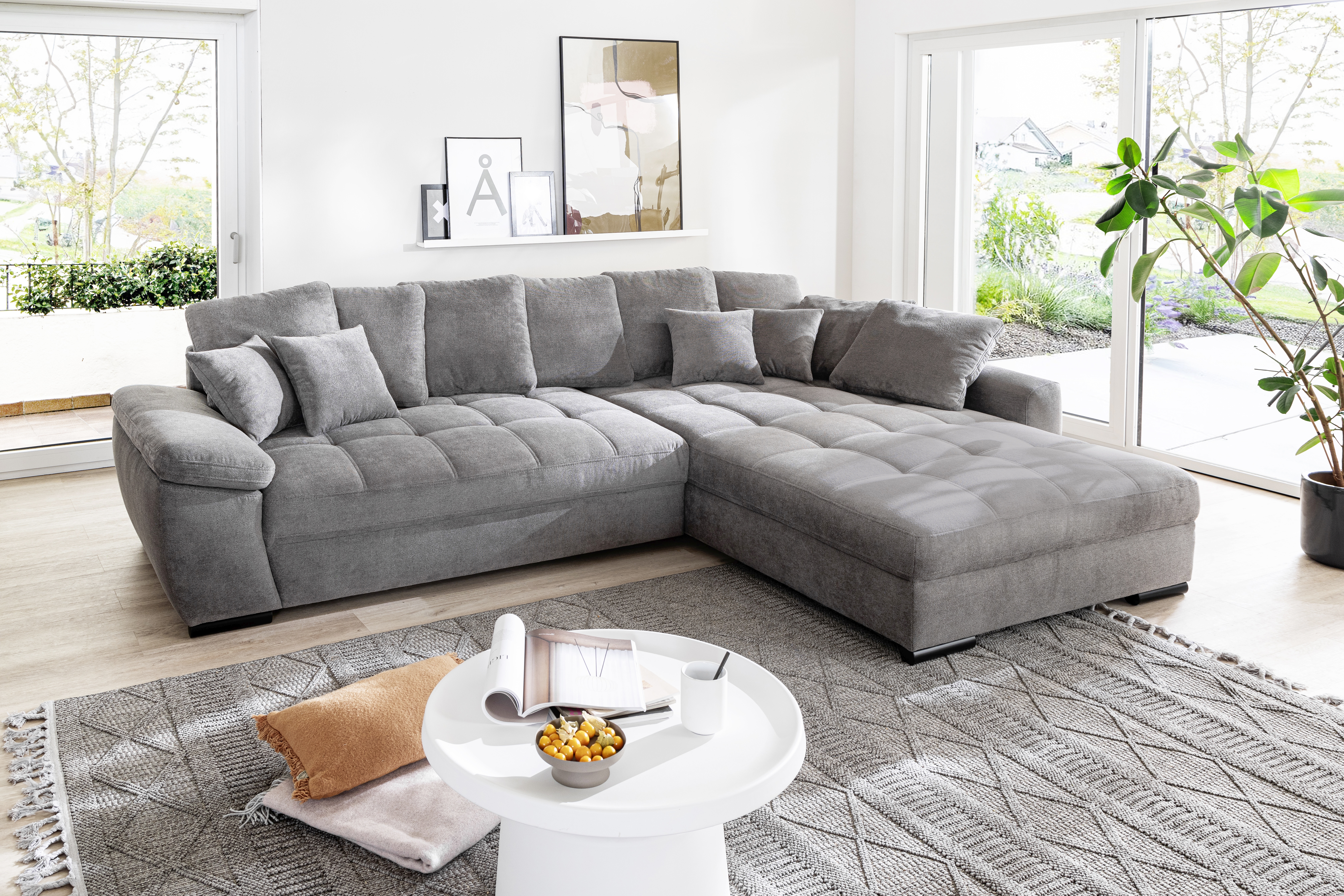 | Ausstattung Polster: | Ottomane rechts links wählbar, Rücken echt, inkl. Kissen | ||