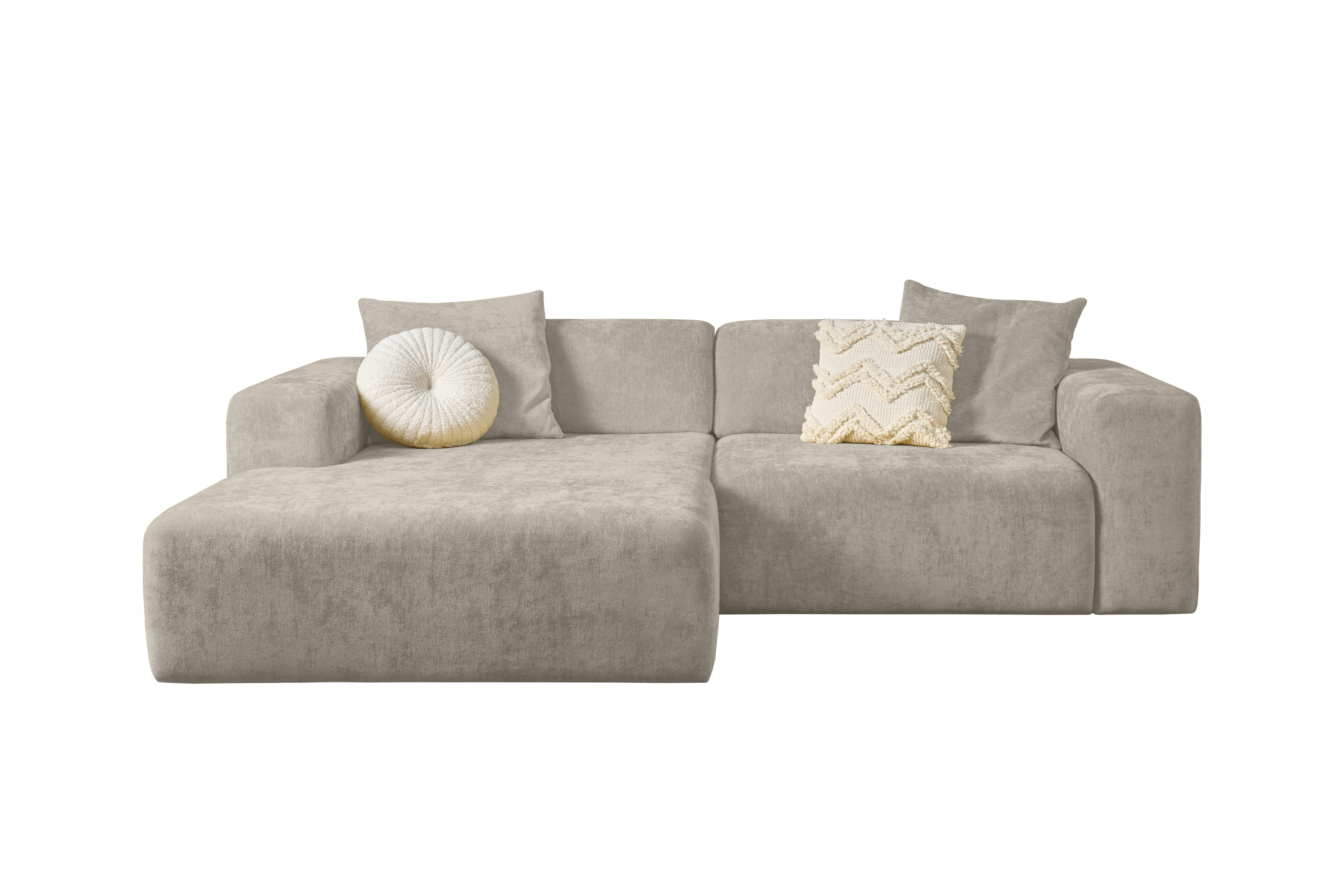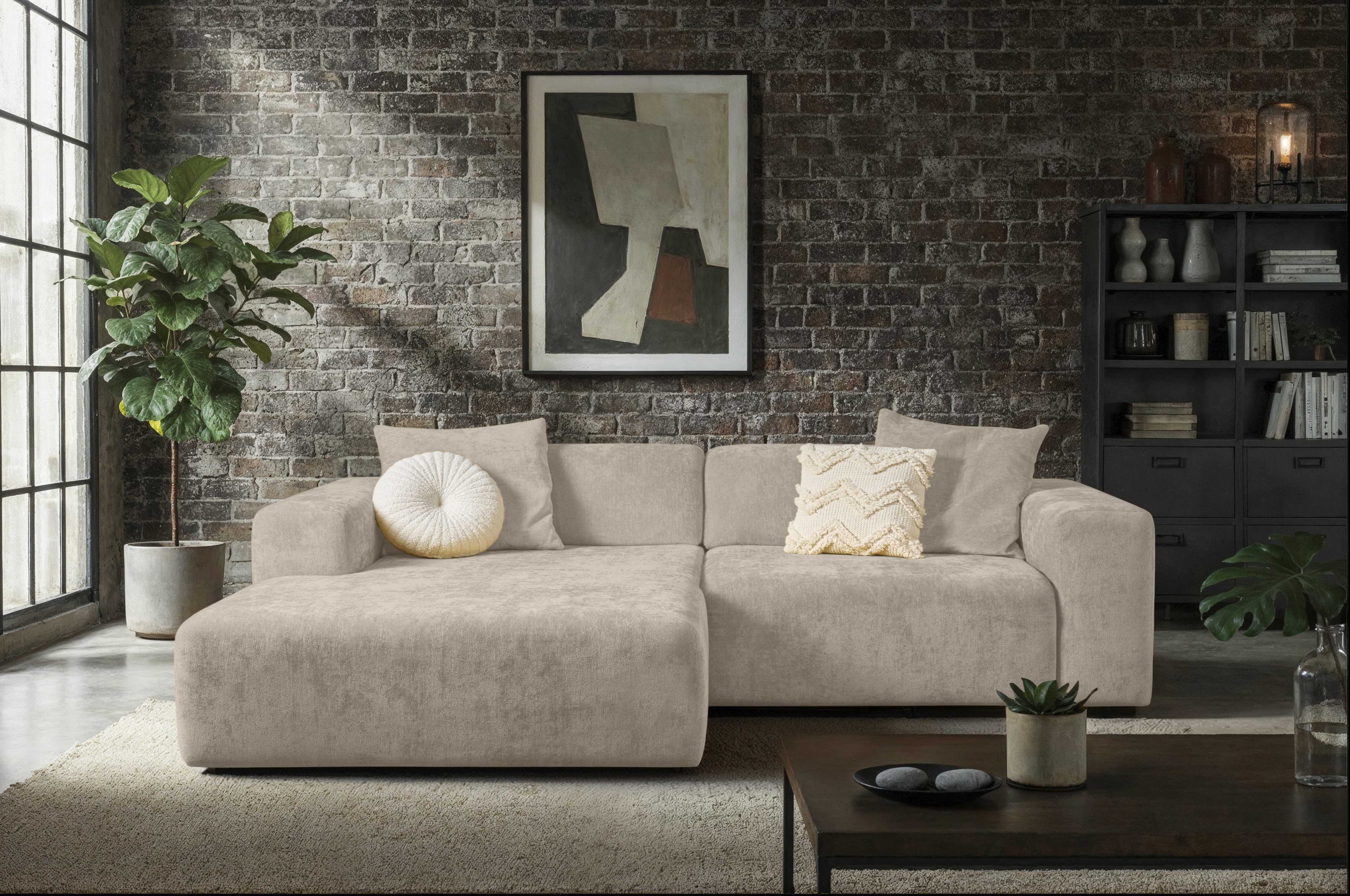 Diese praktische Polsterecke in Beige bietet soliden Sitzkomfort und eine pflegeleichte Oberfläche für den täglichen Gebrauch. Der Bezug aus ist strapazierfähig und angenehm im Griff. Die Polsterung aus zweilagigem Hypersoft-Schaumstoff mit unterschiedlichem Raumgewicht sorgt in Kombination mit der Wellenunterfederung für bequemes Sitzen. Zwei Armlehnen und eine Ottomane auf der linken Seite machen die Ecklösung vielseitig einsetzbar. Zwei passende Dekokissen sind im Lieferumfang enthalten. Diese Polsterecke eignet sich besonders für kompakte Wohnräume und bietet eine kostengünstige Lösung für komfortables Sitzen im Alltag.