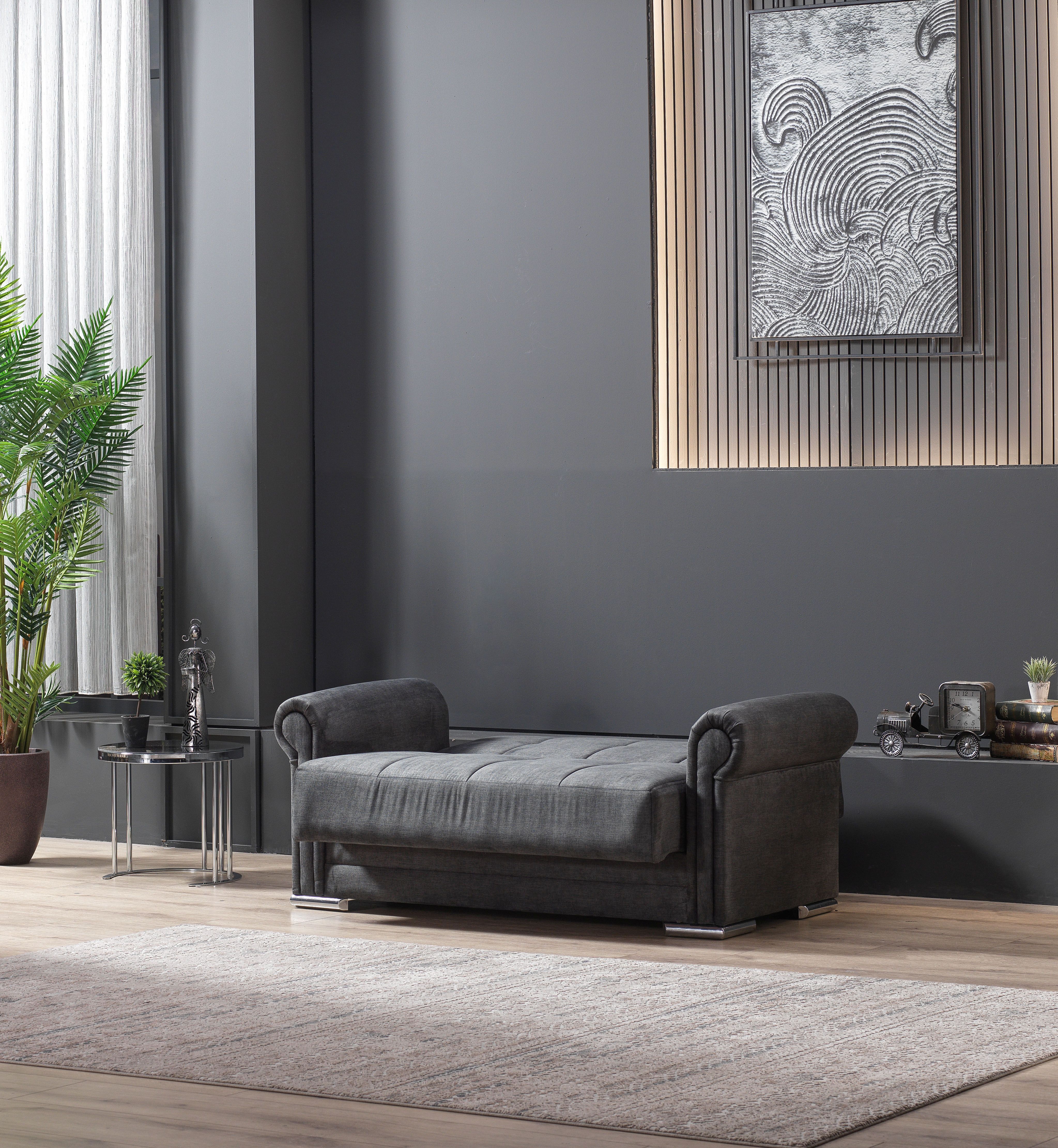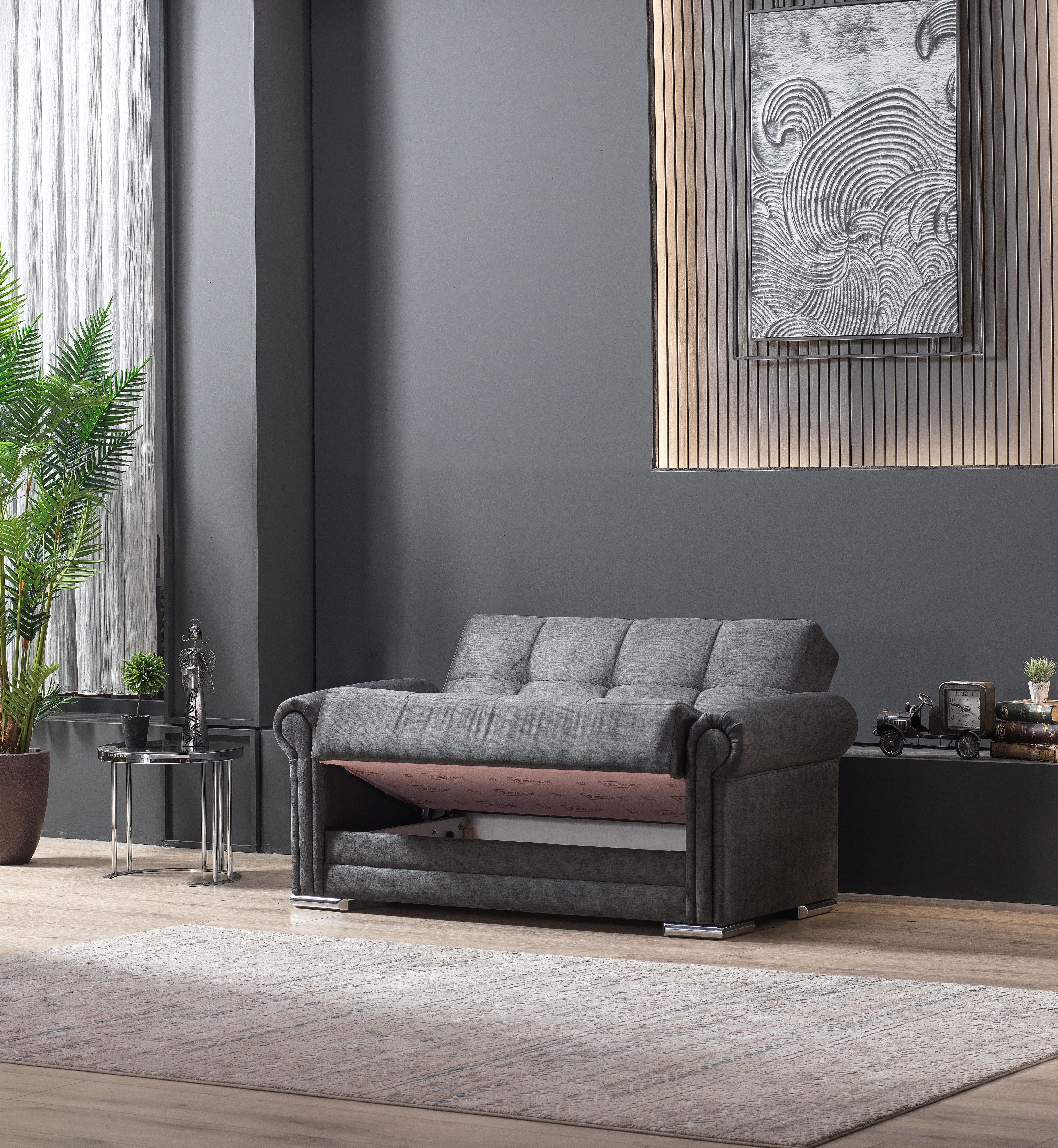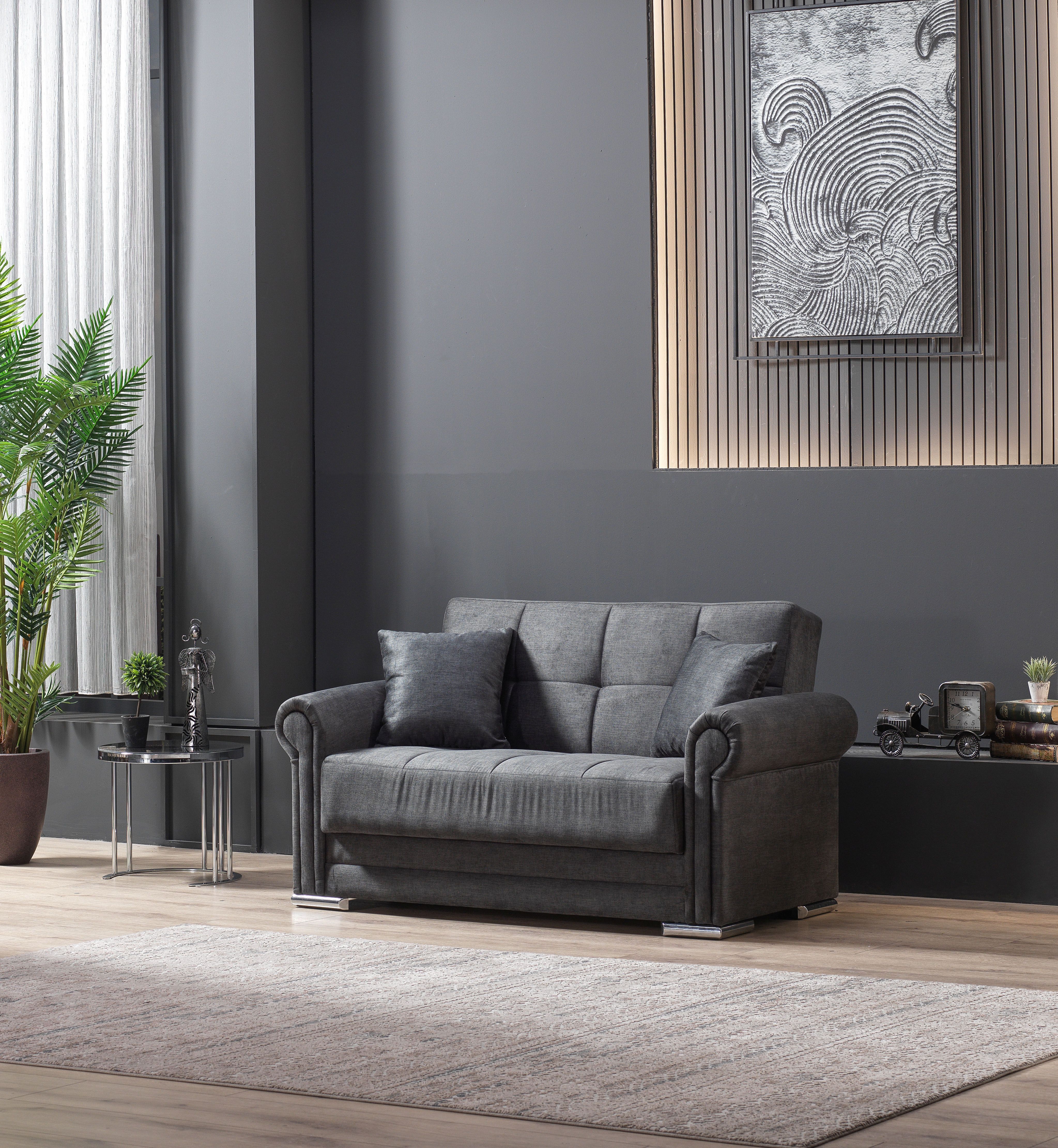 1 x 2-Sitzer mit Kippfunktion im Rücken, Bettkasten und 2 Zierkissen