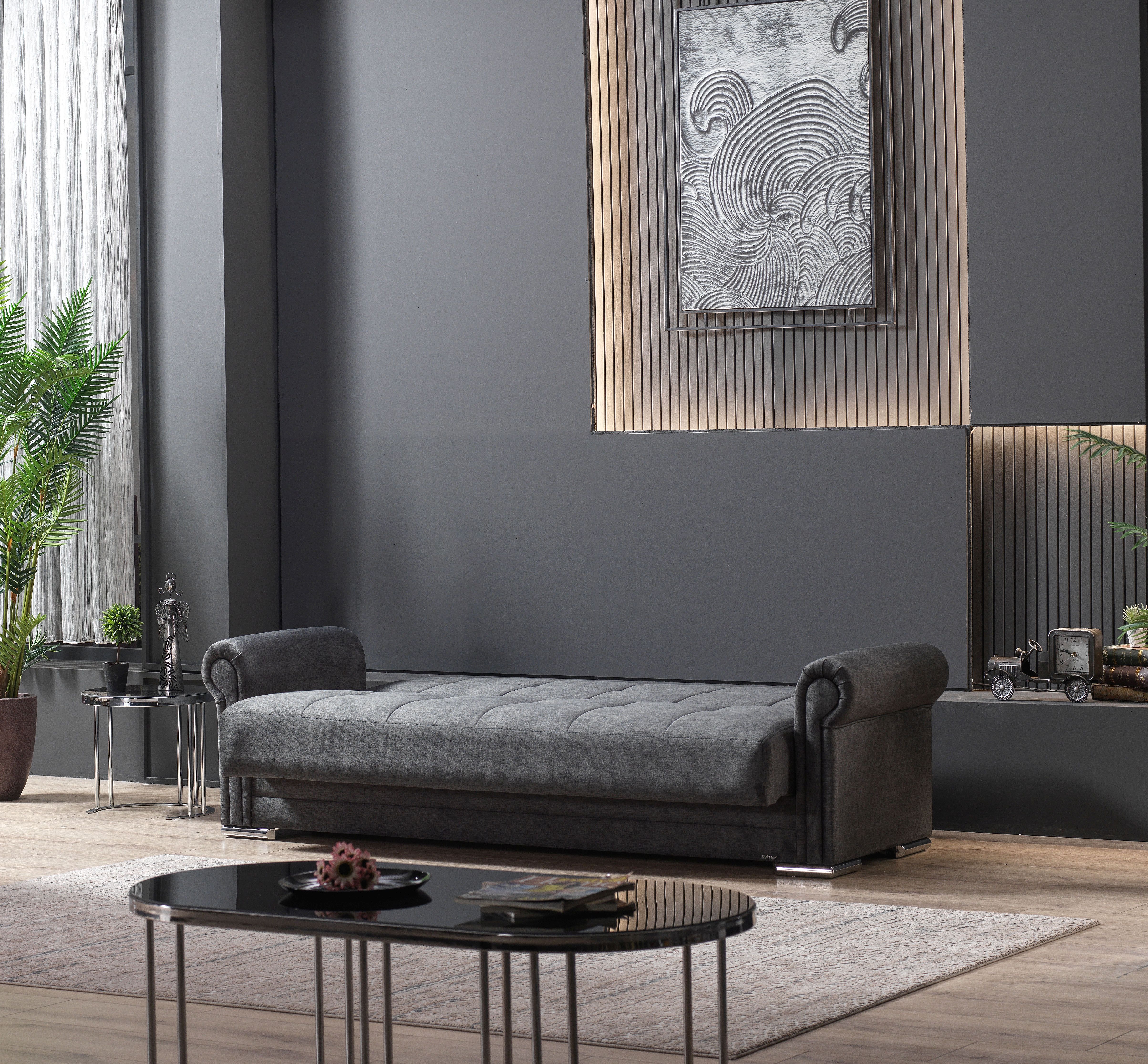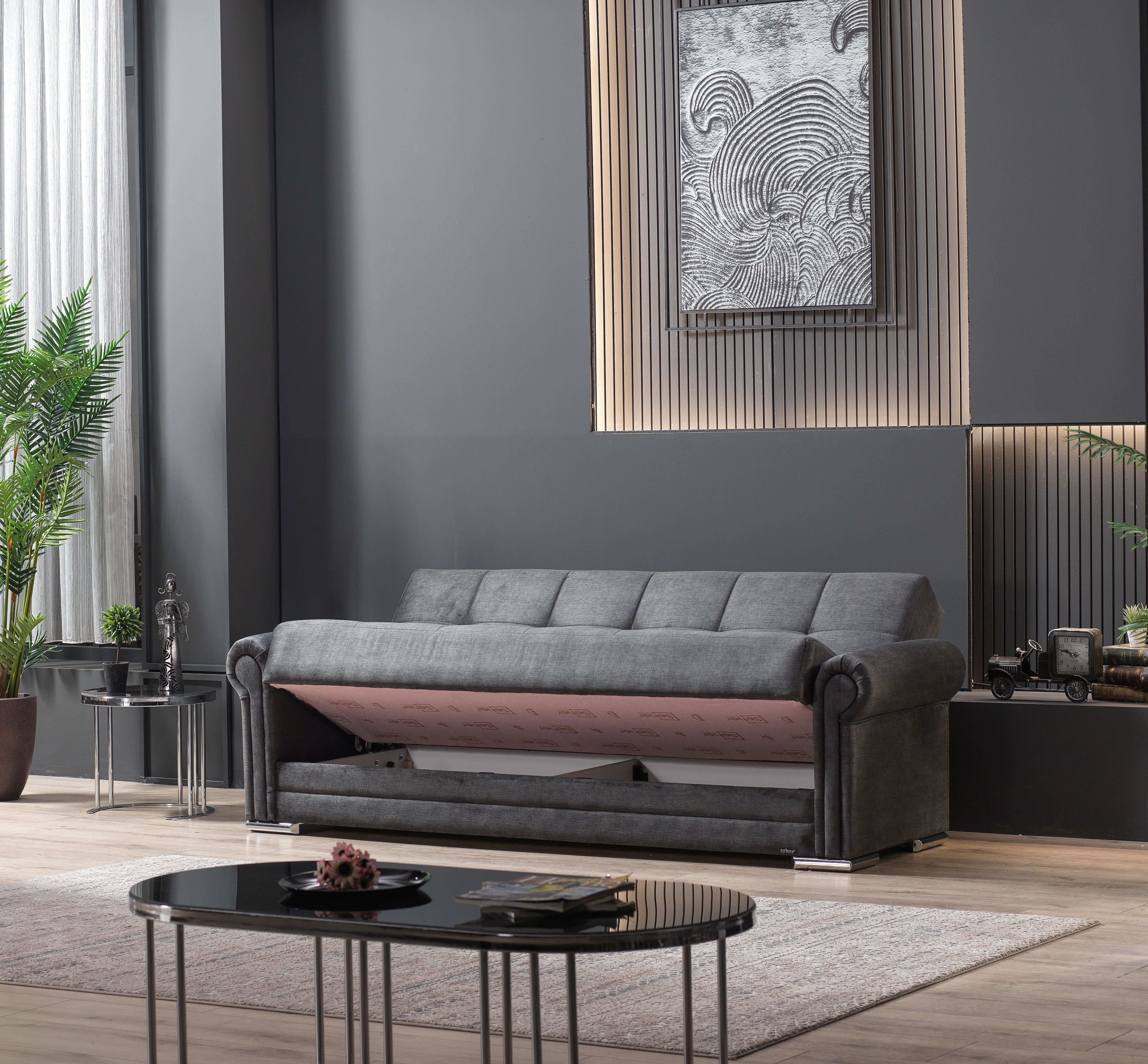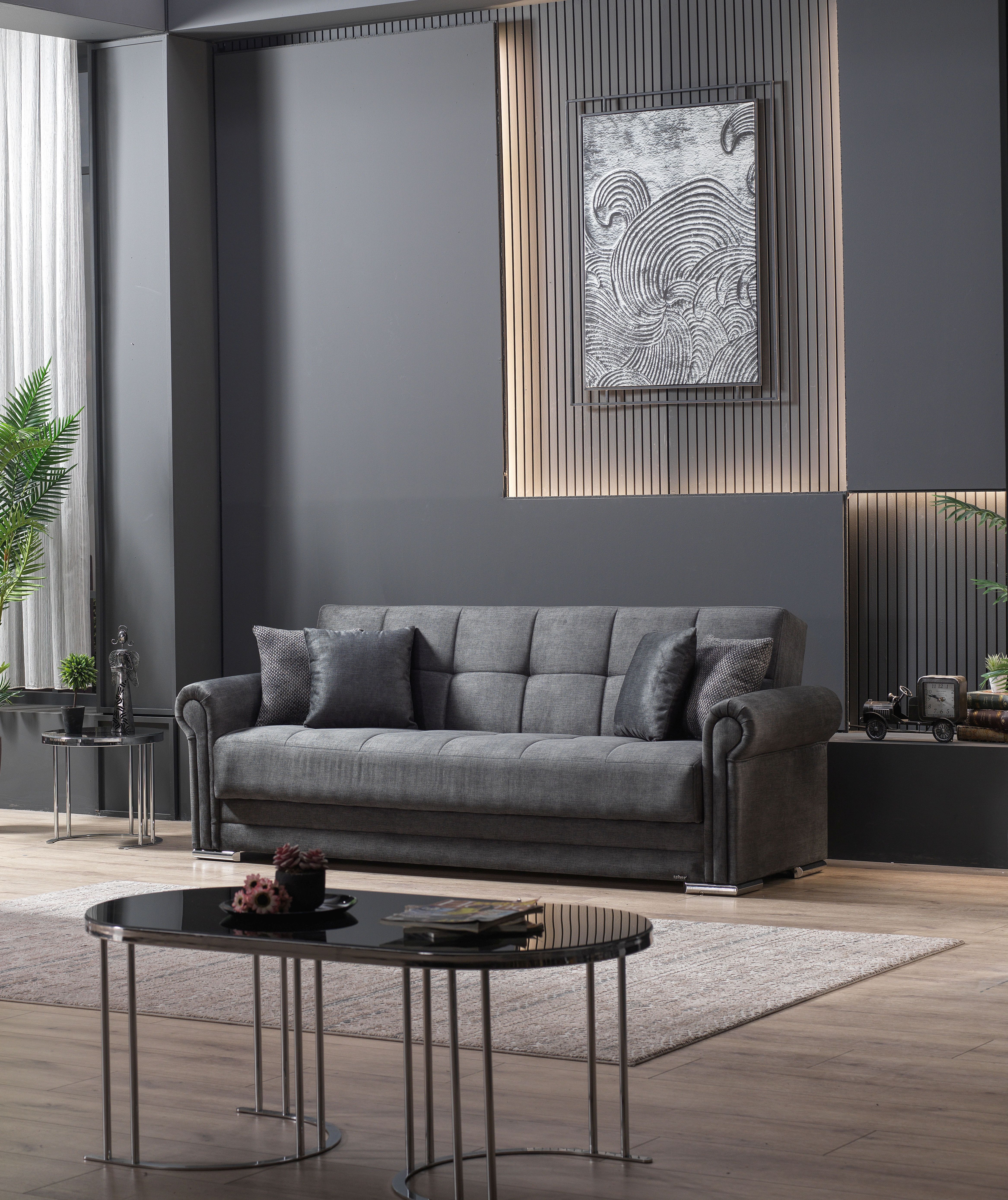 1 x 3-Sitzer mit Kippfunktion im Rücken, Bettkasten und 2 Zierkissen