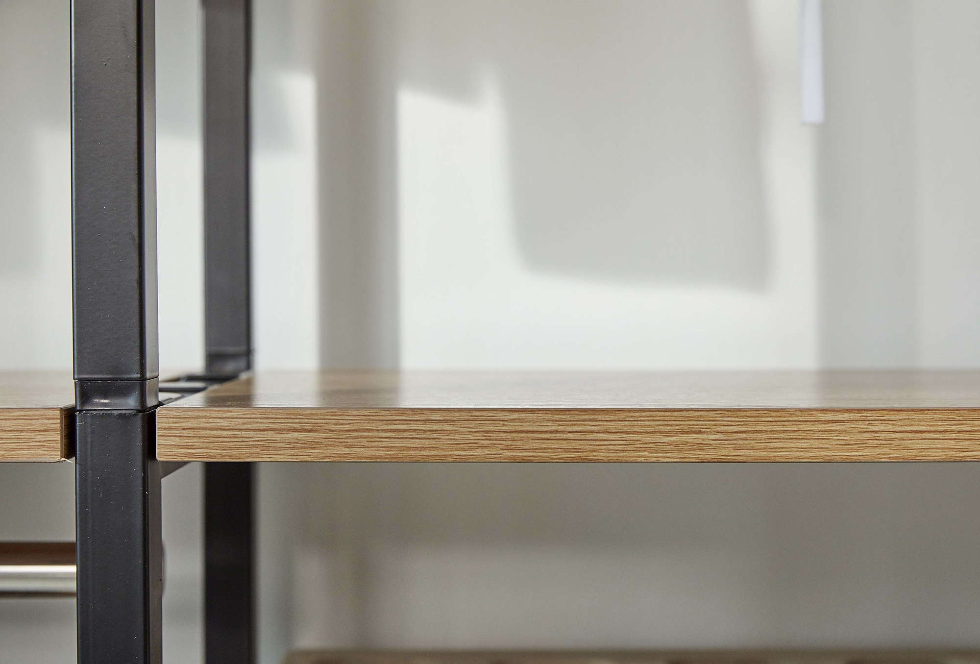 Jetzt kommt Ordnung ins Chaos. Mit diesem Regal-Set schaffen Sie zusätzlichen Stauraum und Platzmangel ist künftig kein Thema mehr. Mit einer Höhe von 210 cm bietet Ihnen das Wand-Regal Set genügend Platz für z.B. Bücher oder Dekorationsartikel. Während das robuste Gestell aus Metall besteht, sind die Einlegeböden aus MDF mit Akazie-Holznachbildung. Dank der offenen Aufteilung des Standregals kann dieses auch als Raumteiler genutzt werden.