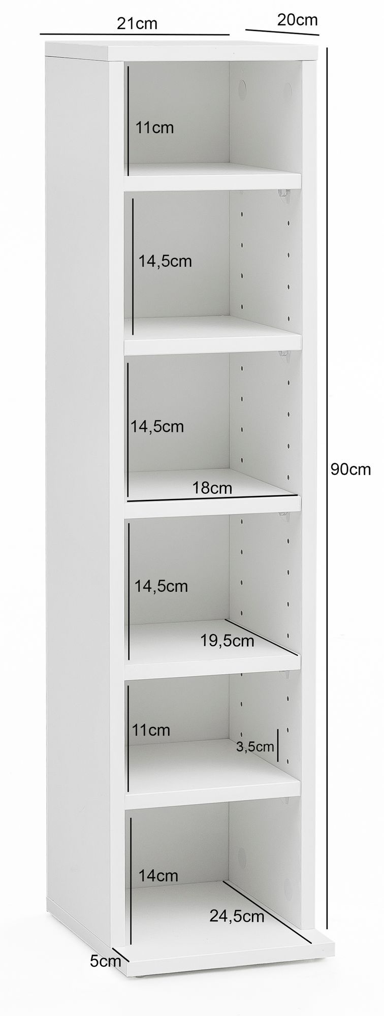 - Innenmaße Regalfächer (B x H x T): 18 x 11-14,5 x 19,5 cm
