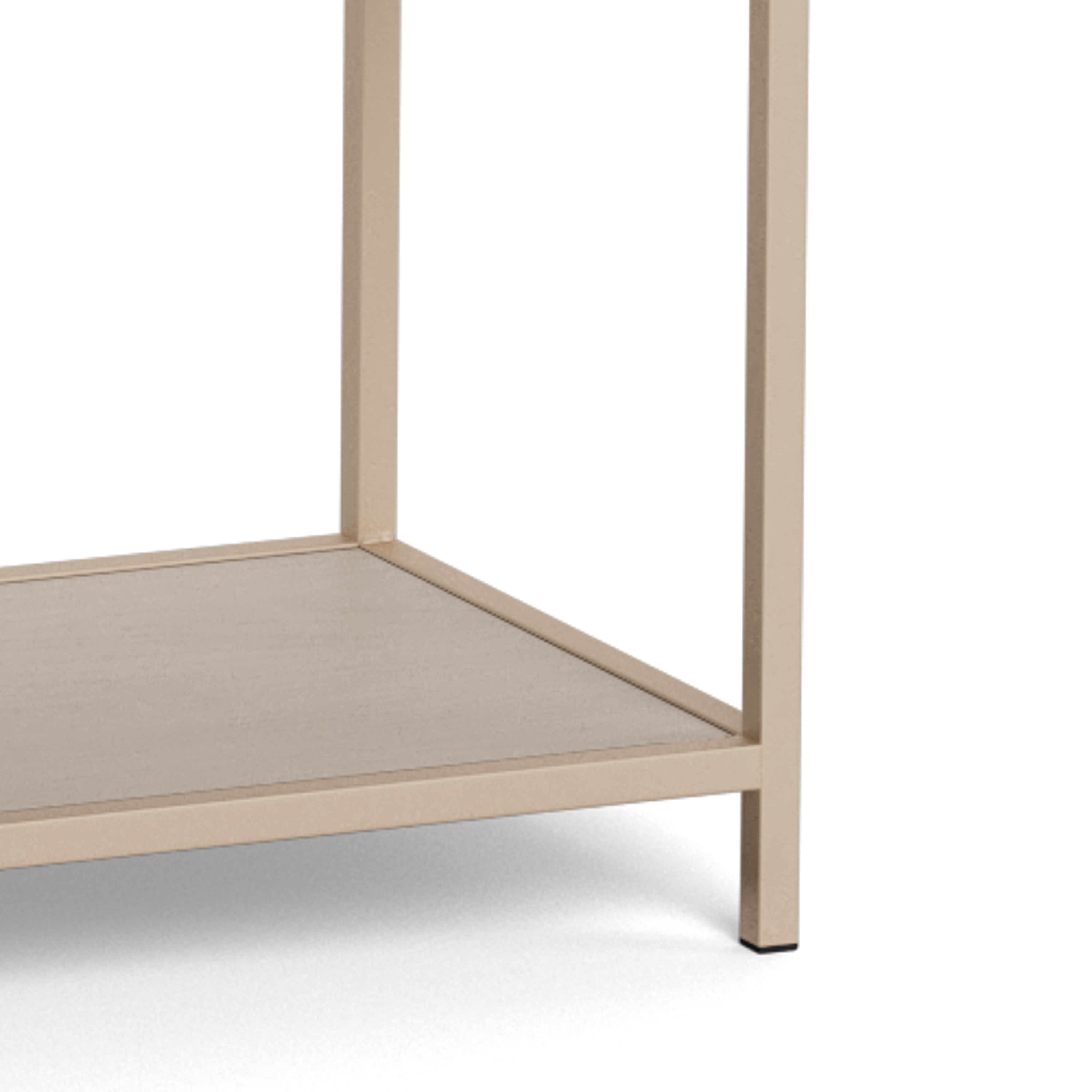 Das stabile Gestell aus pulverbeschichtetem Stahl in Grau sorgt für langlebige Stabilität, während die melaminbeschichteten Ablageflächen eine pflegeleichte und robuste Oberfläche bieten. Mit mehreren offenen Fächern schafft das Seaford Regal praktischen Stauraum für Bücher, Dekoration, Ordner oder persönliche Accessoires und lässt zugleich Raum für Ihre individuellen Einrichtungsideen.