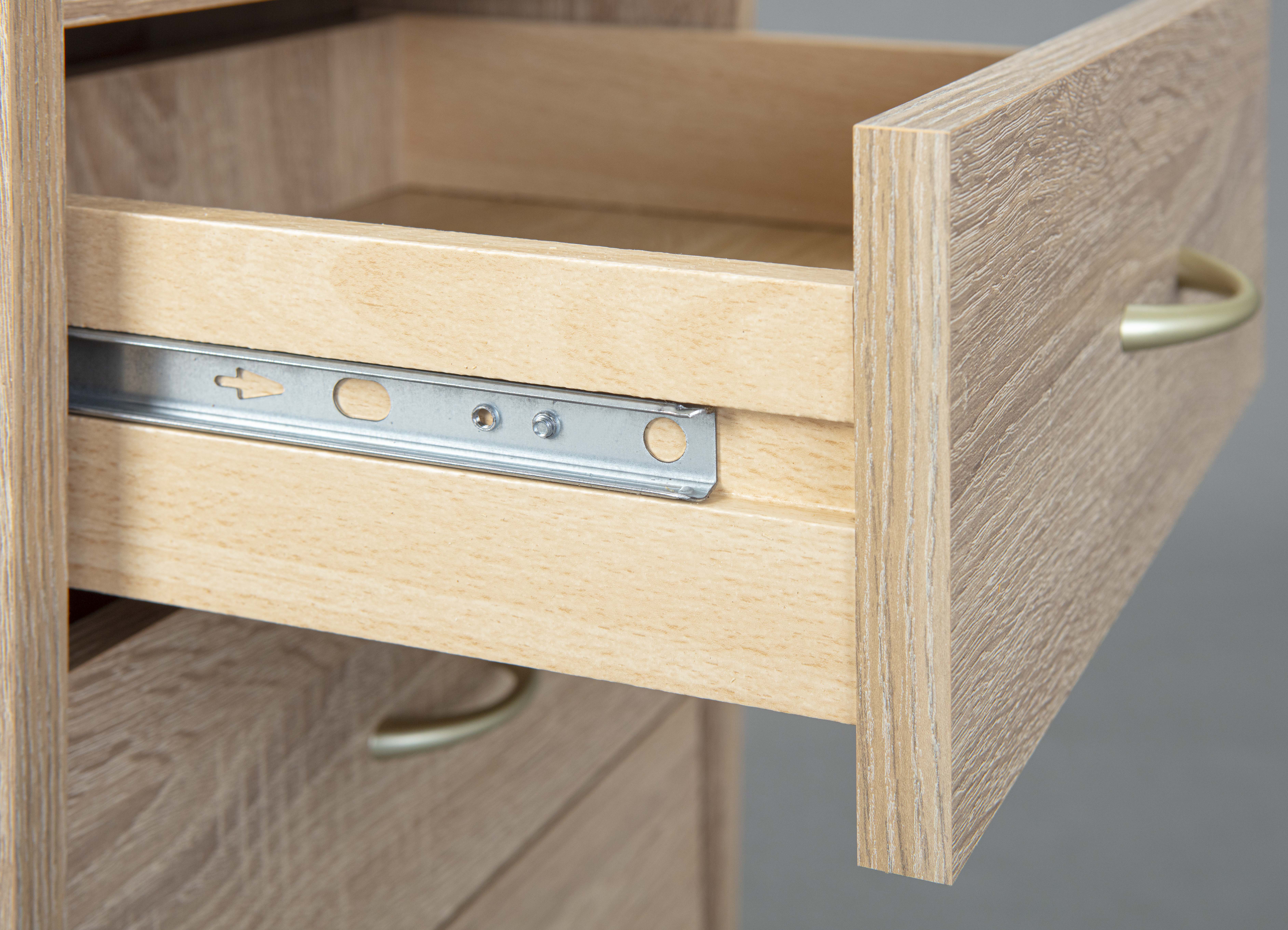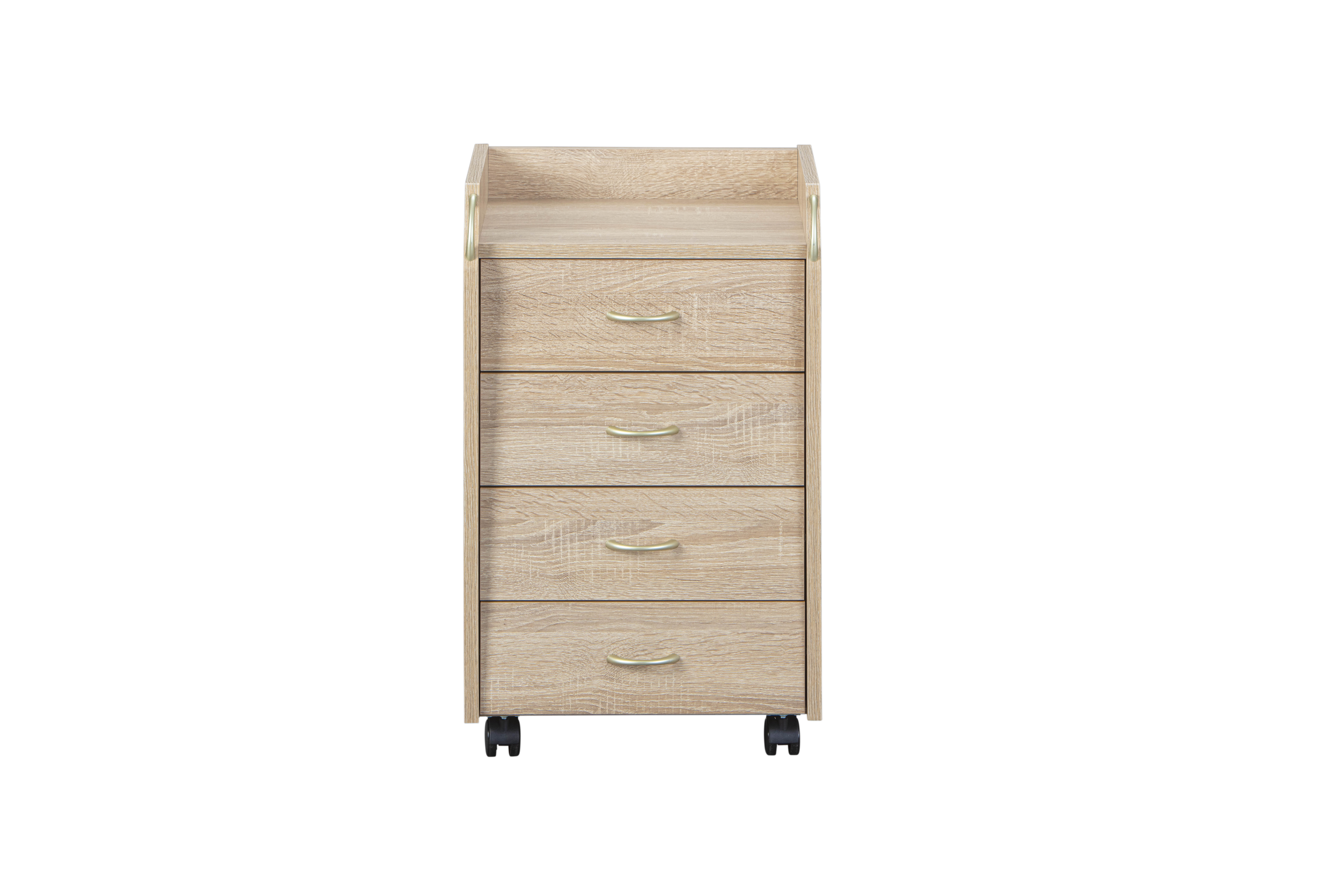 Mit seinen 4 Schubladen ermöglicht der Container eine gut organisierte Ablage, während die Ablagefläche praktisch mit Griffen ausgestattet ist, um das Verschieben zu erleichtern.