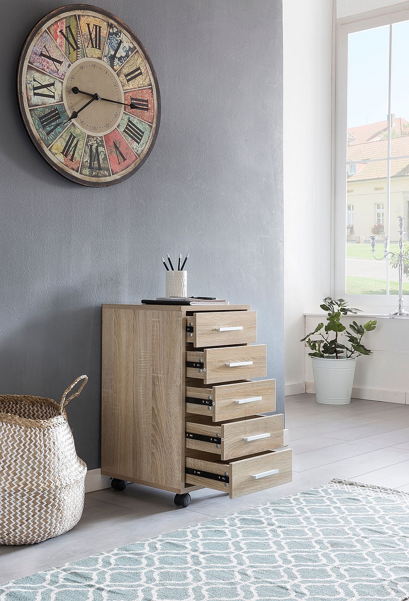 - BÜROHILFE ✔ Stifte, Locher, Tacker und Co. sind im Büro allgegenwärtig. Damit diese unerlässlichen Hilfsmittel aber nicht störend auf dem Schreibtisch herumliegen, besitzt dieser schicke Rollcontainer 5 Schubladen und damit genügend Platz.