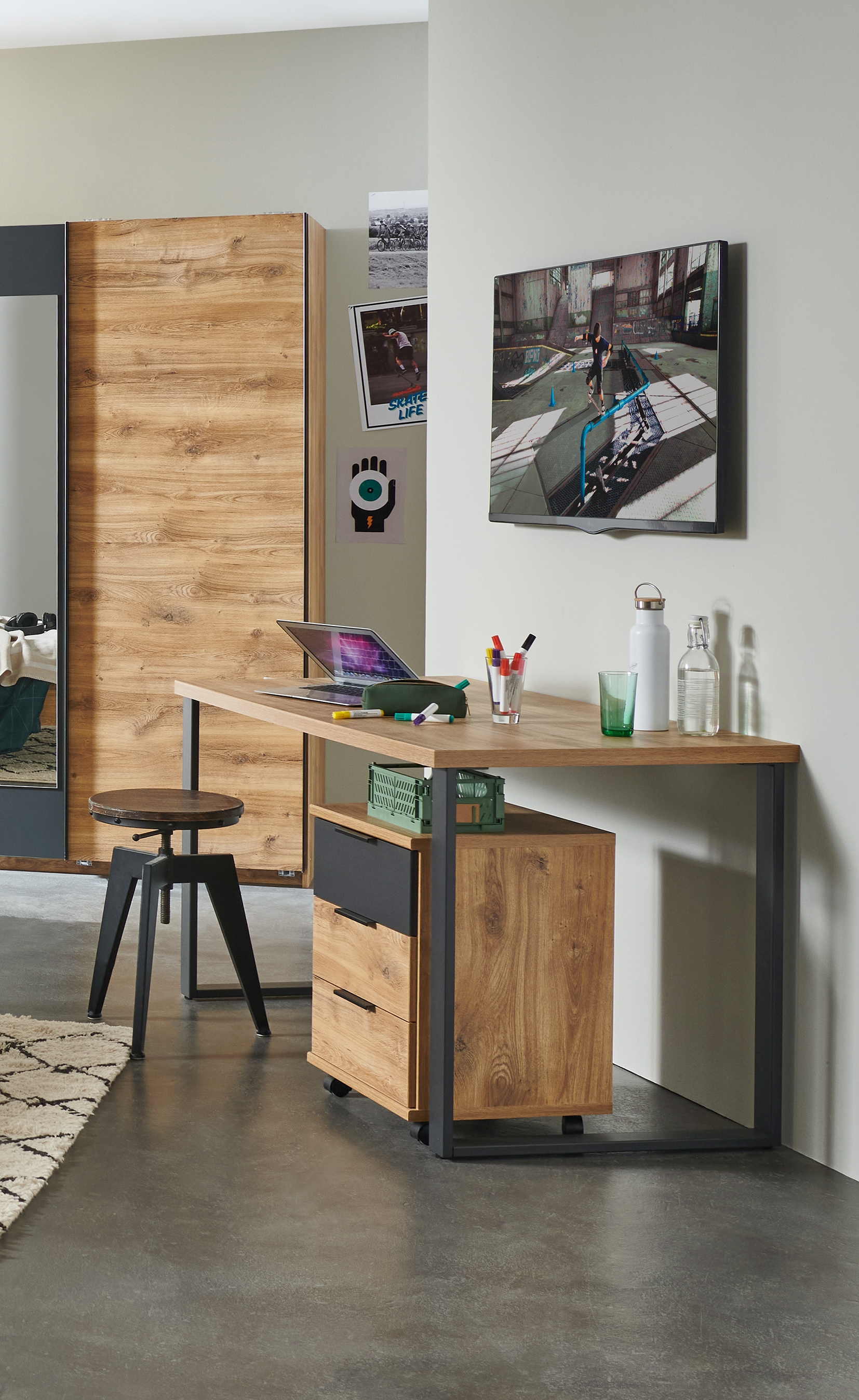 Plankeneiche Holznachbildung mit einer Schubladenfront in Graphit