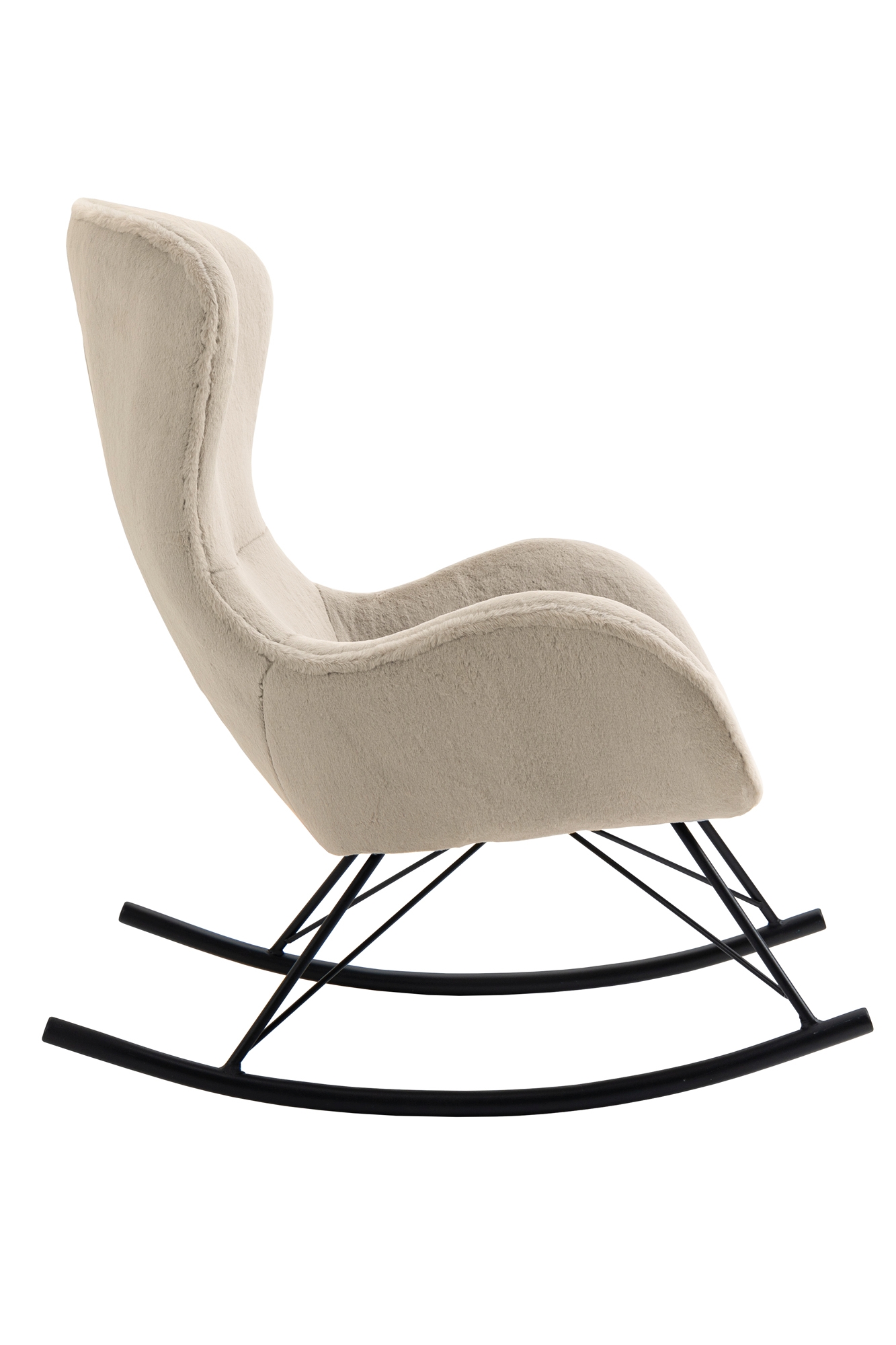Dieser Schaukelstuhl in weicher Lammfelloptik wird zum absoluten Lieblingsstück im Wohnbereich. Der modern konzipierte Schaukelsessel bietet dank geschwungenen Armlehnen und Rückenlehne optimalen Sitzkomfort. Die kuschlig weiche Sitzfläche aus hochwertigem Kunstfell lädt zusätzlich zum Einkuscheln ein. Abgerundet wird der angesagte Scandi Style von einem schwarz lackierten Metallgestell, mit hochwertigen Kufen. Das moderne Kufengestell sorgt für sanftes hin- und her wippen und macht den Schaukelstuhl zum idealen Begleiter für Wohnzimmer, Schlafzimmer oder Leseecke.