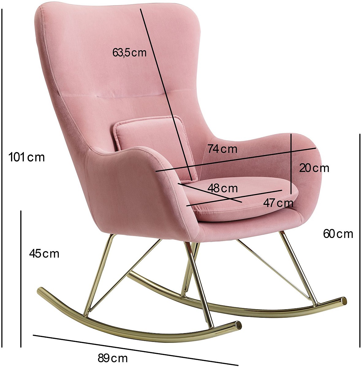 ABMESSUNGEN ✔ Breite: 74 cm // Höhe: 101 cm // Tiefe: 89 cm // Sitzfläche (BxT): 47 x 48 cm // Sitzhöhe: 45 cm // Maximalbelastbarkeit: 120 kg.