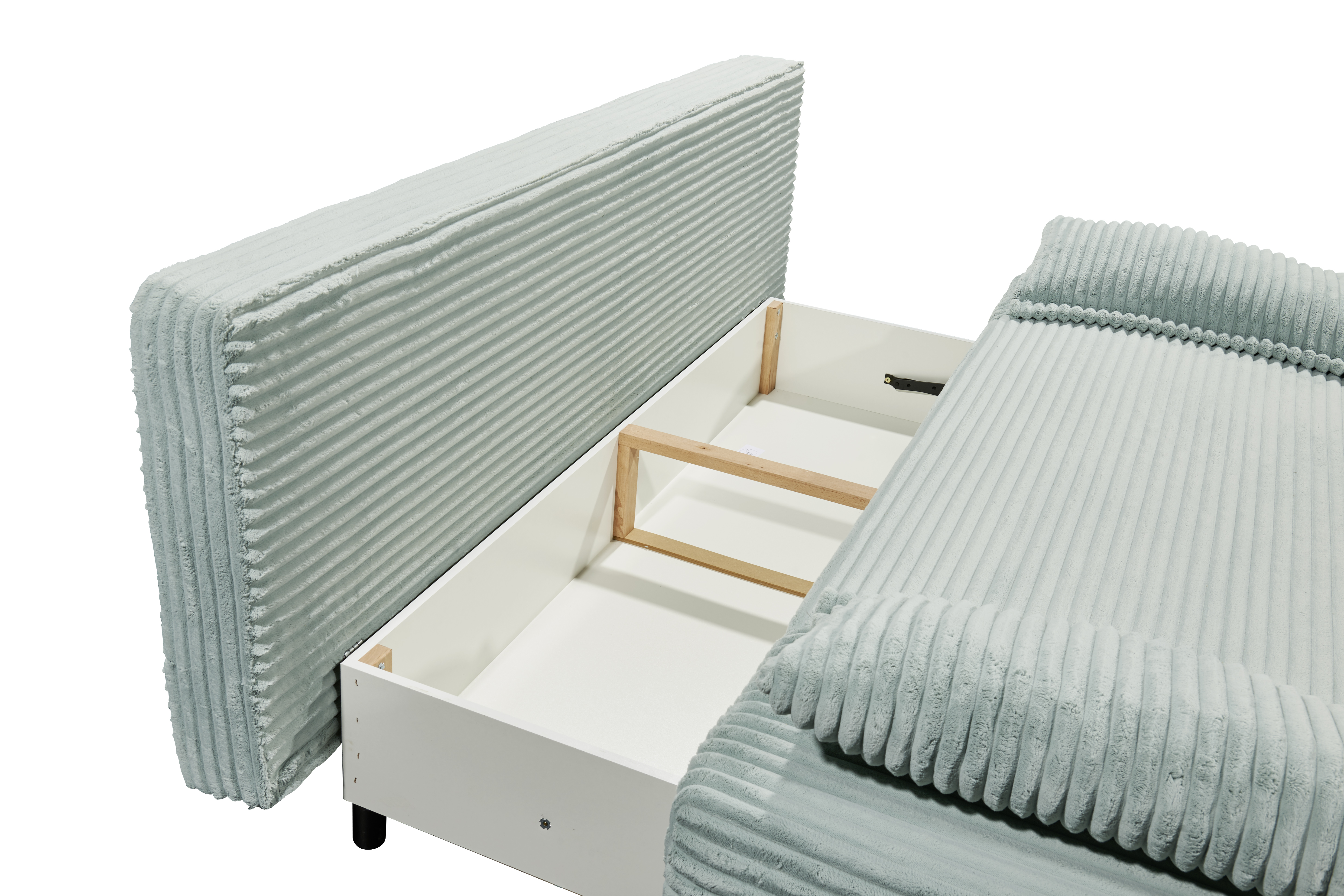 | Ausstattung Polster: | Rücken echt, inkl. Bettkasten, inkl. Kissen | ||