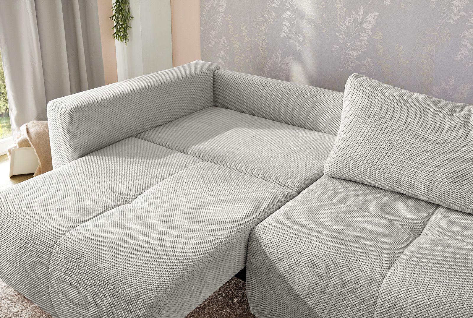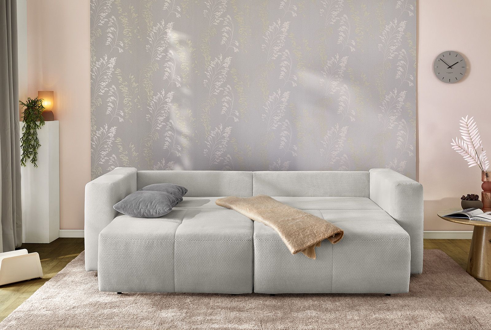 Beide Sitzelemente lassen sich individuell ausziehen und verwandeln das Sofa im Handumdrehen in eine großzügige Liegefläche.