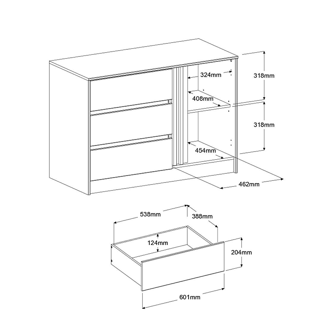 Einsätze an der Kommode drehbar - Japanische Eiche Holznachbildung oder Weiß