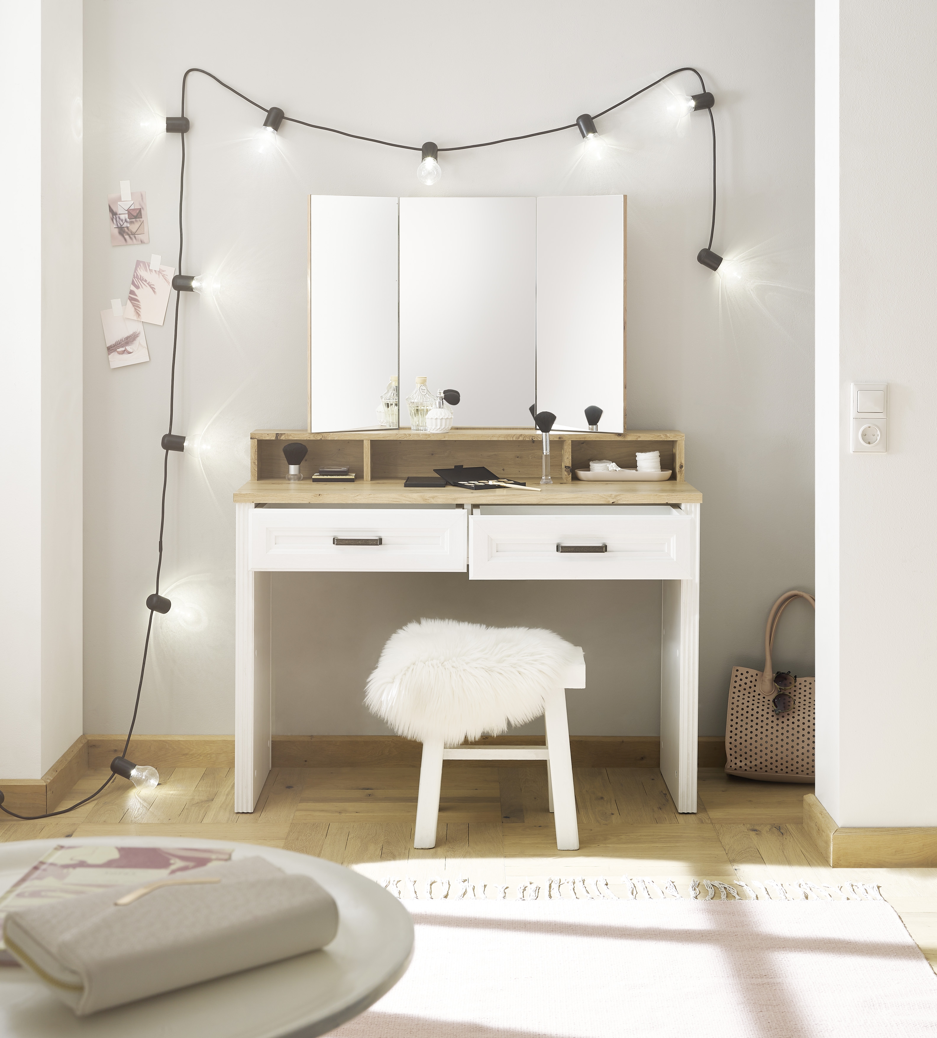 | Ausstattung Tische: | Ablage, Fächer, Schublade(n), Spiegel | ||