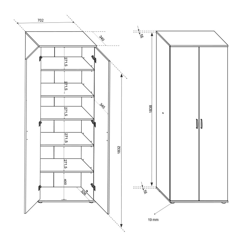 | Schrank-Typ: | Drehtürenschrank, Mehrzweckschrank | ||
