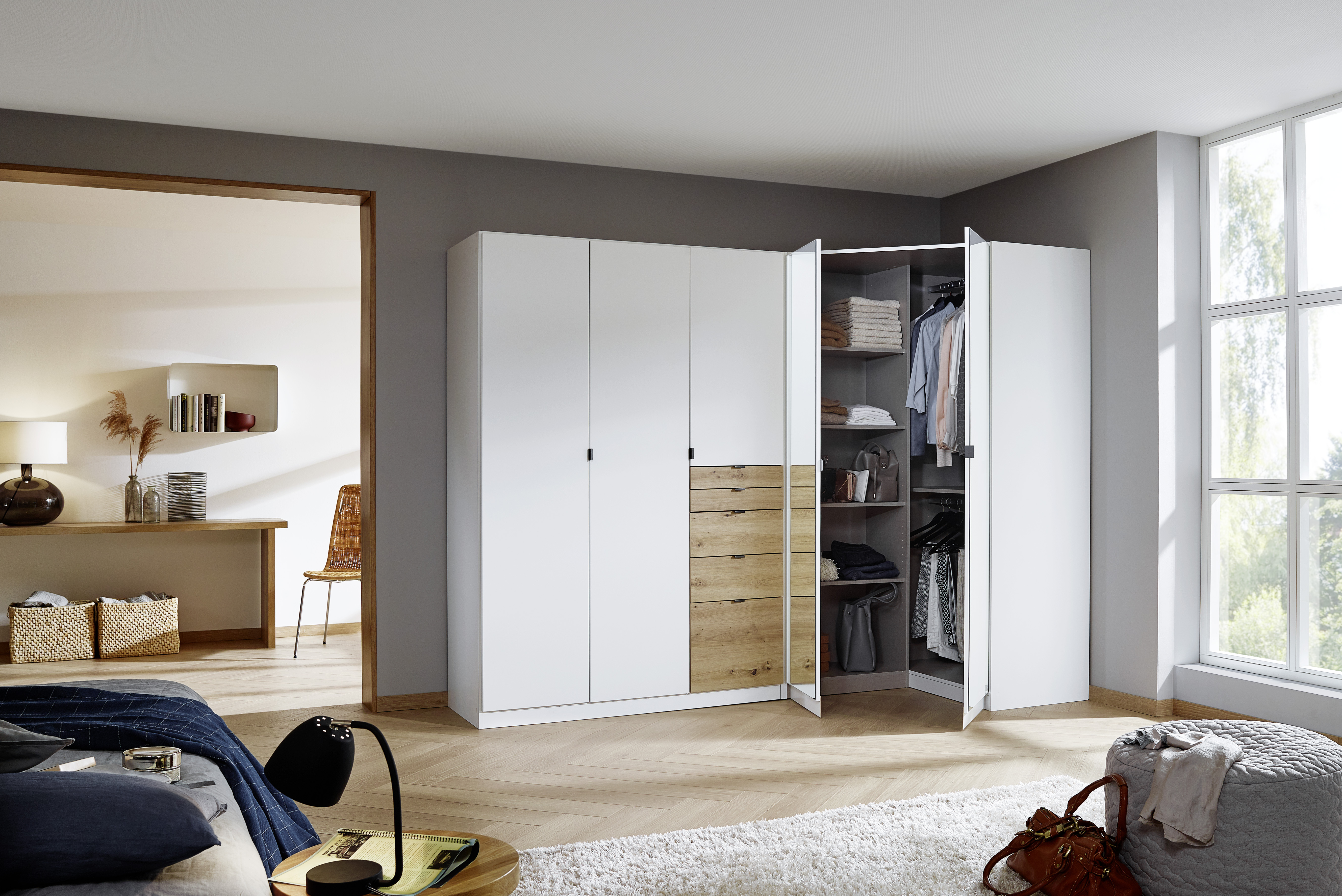 1 Drehtürenschrank und 1 Drehtüren-Eckschrank