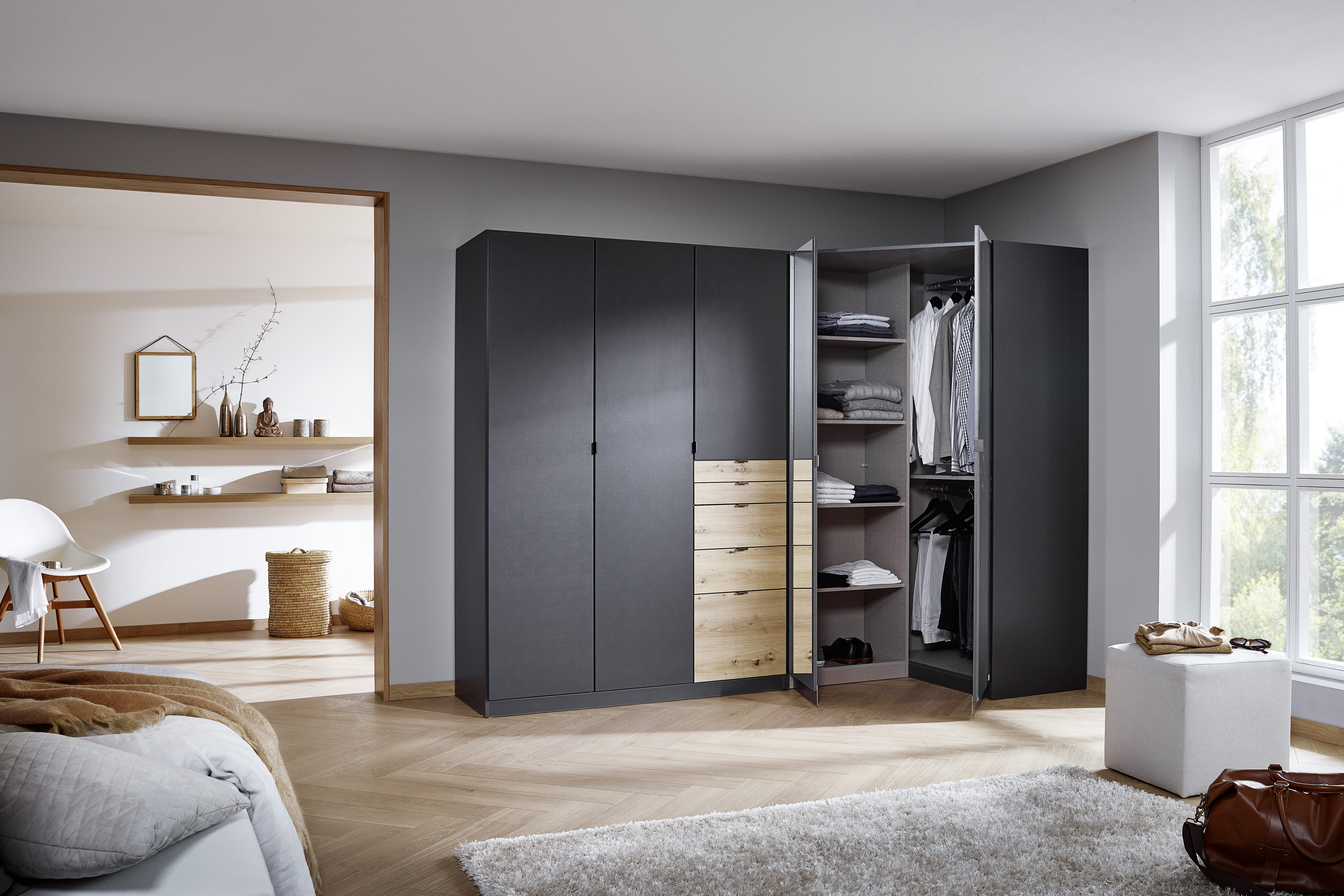 1 Drehtürenschrank und 1 Drehtüren-Eckschrank