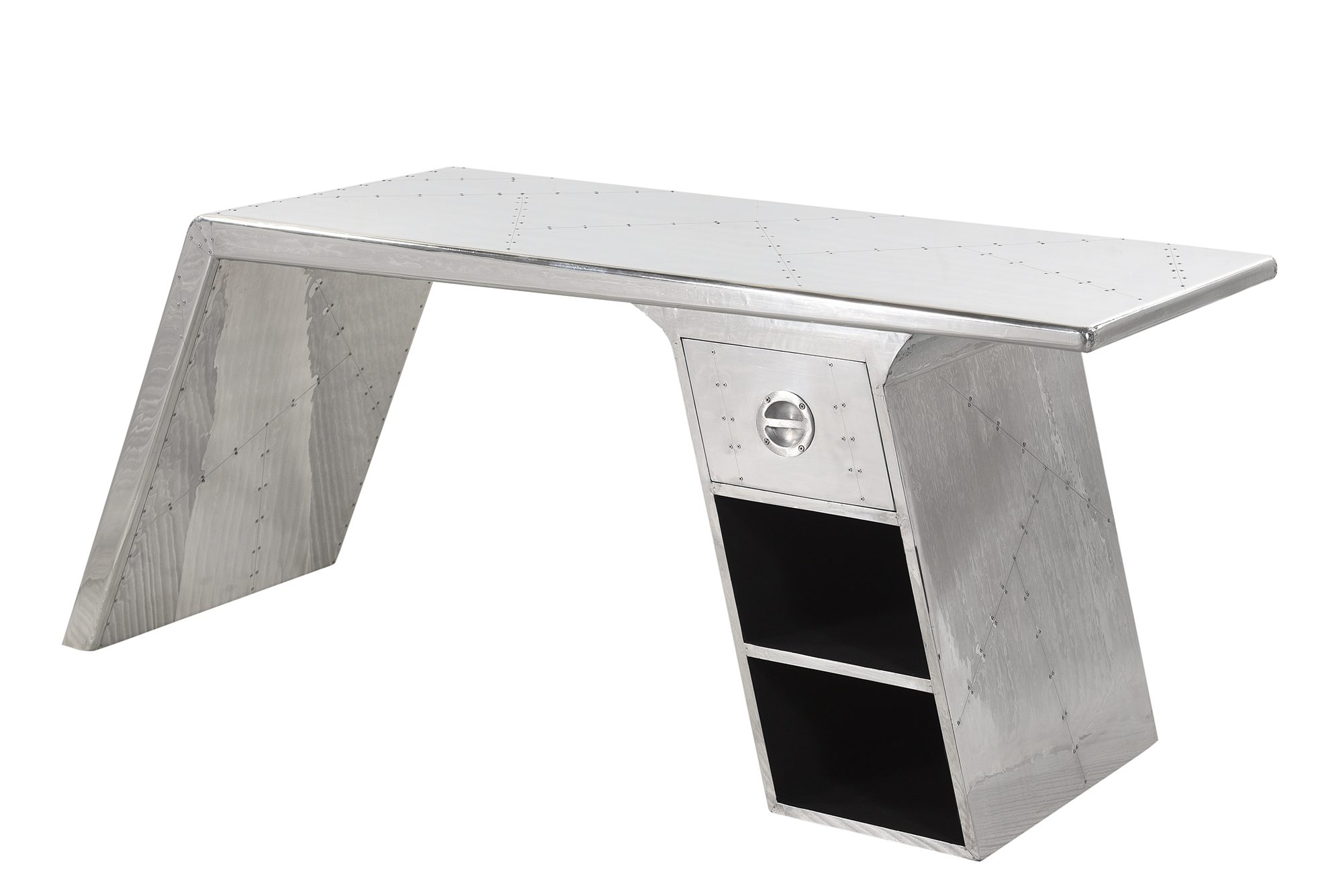 Mango massiv (Indien) kombiniert mit MDF (Mitteldichte Holzfaserplatte) mit Alubeschlägen in silberfarben