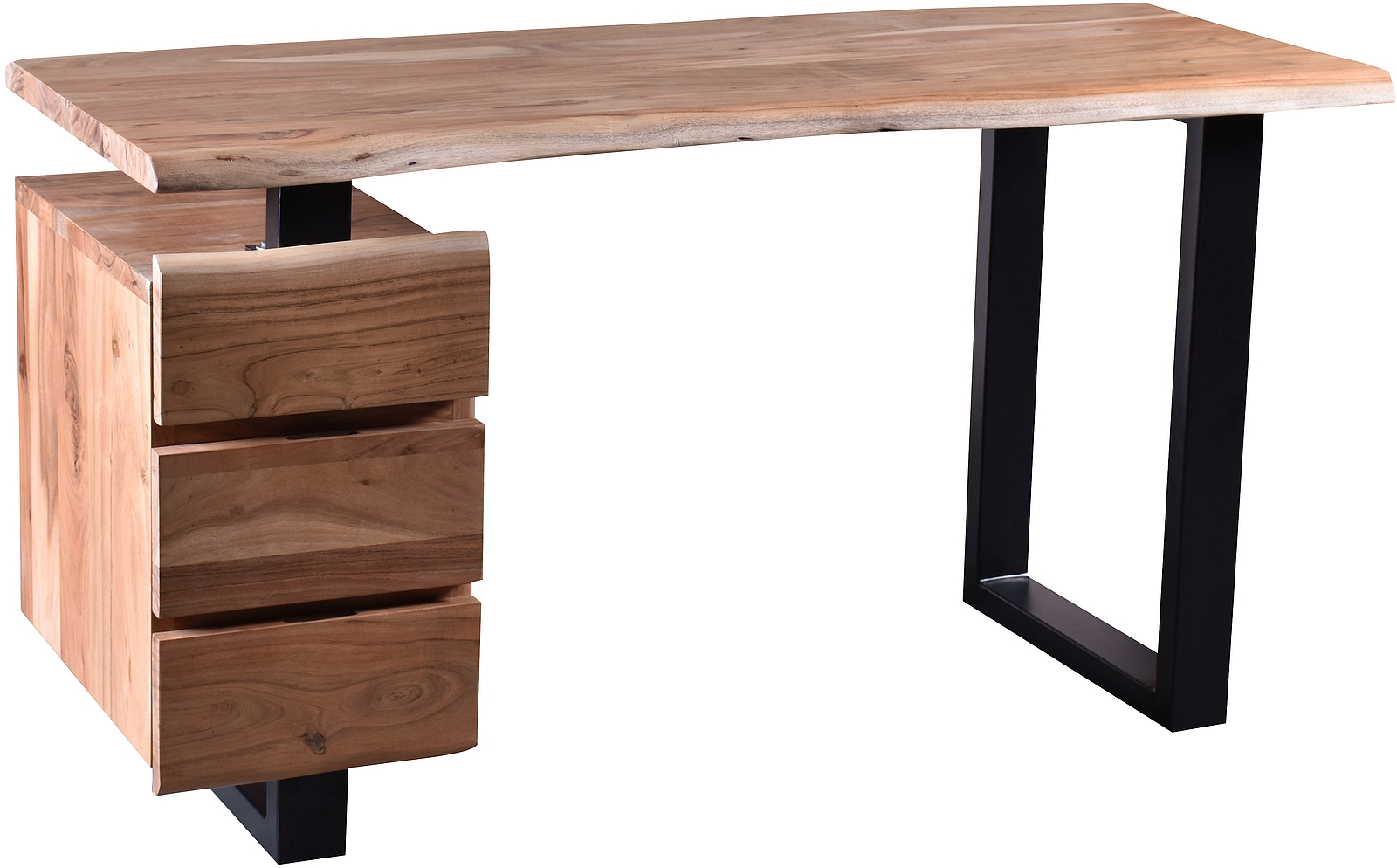 Akazie mit Baumkante natur massiv (Indien) kombiniert mit einem Gestell aus schwarzem Metall