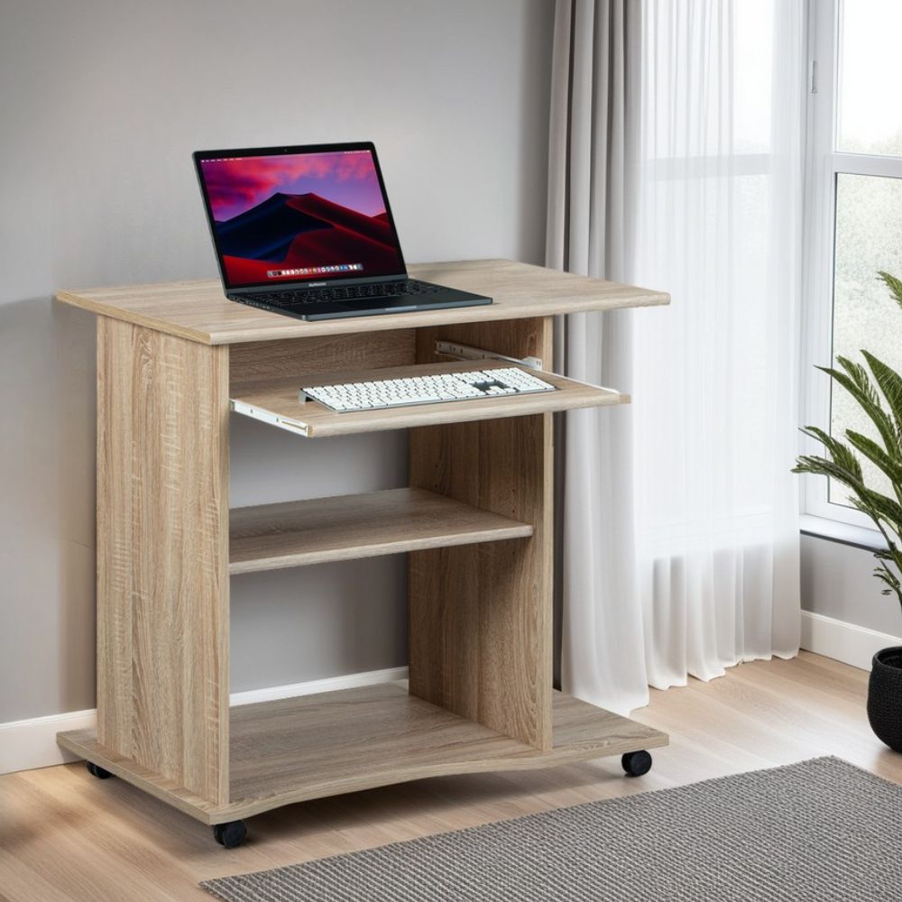 Er bietet einen praktischen Arbeitsplatz, an dem Sie Ihren Computer in der dafür vorgesehenen Nische und die Computertastatur auf dem ausziehbaren Regal unterbringen können.