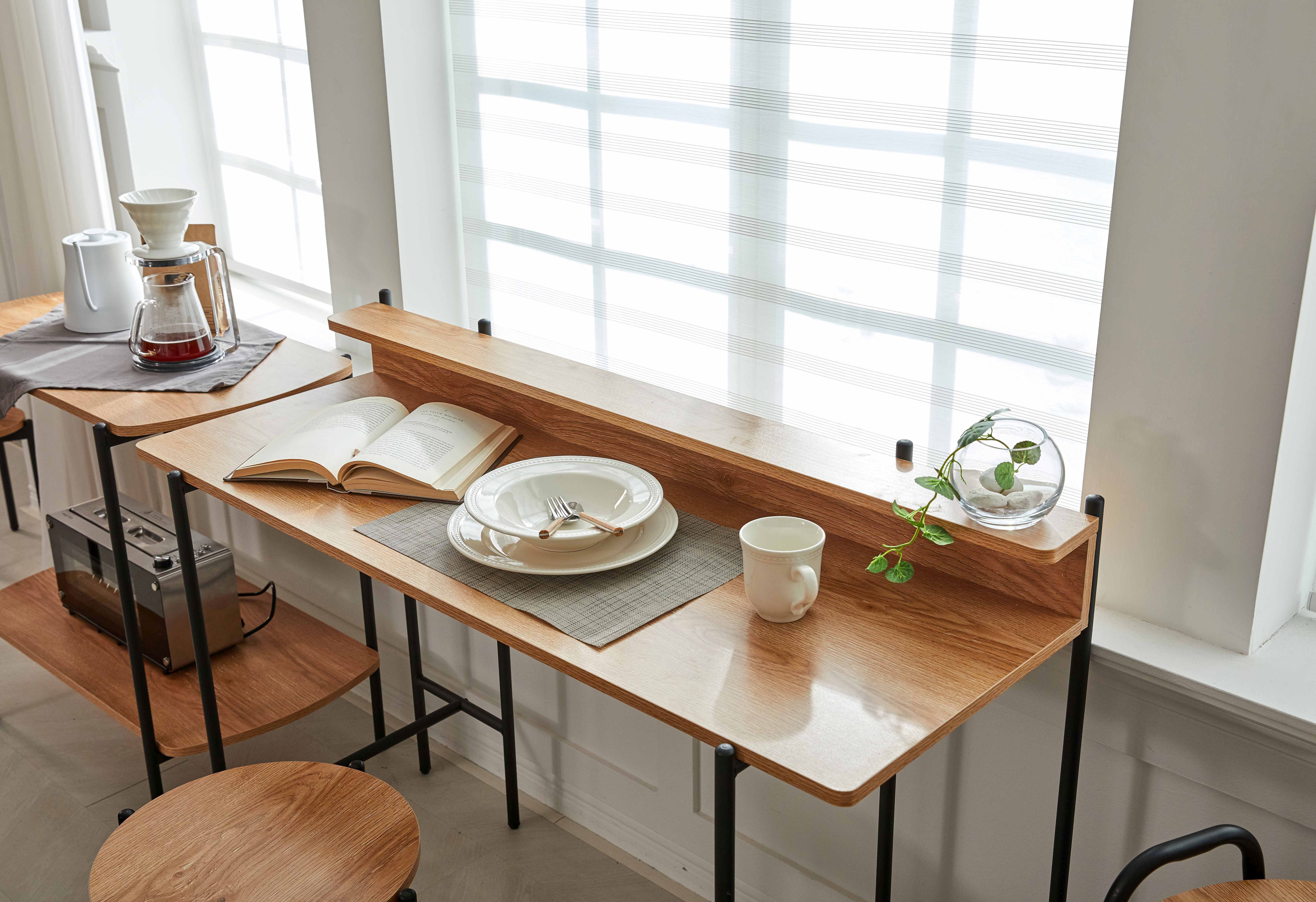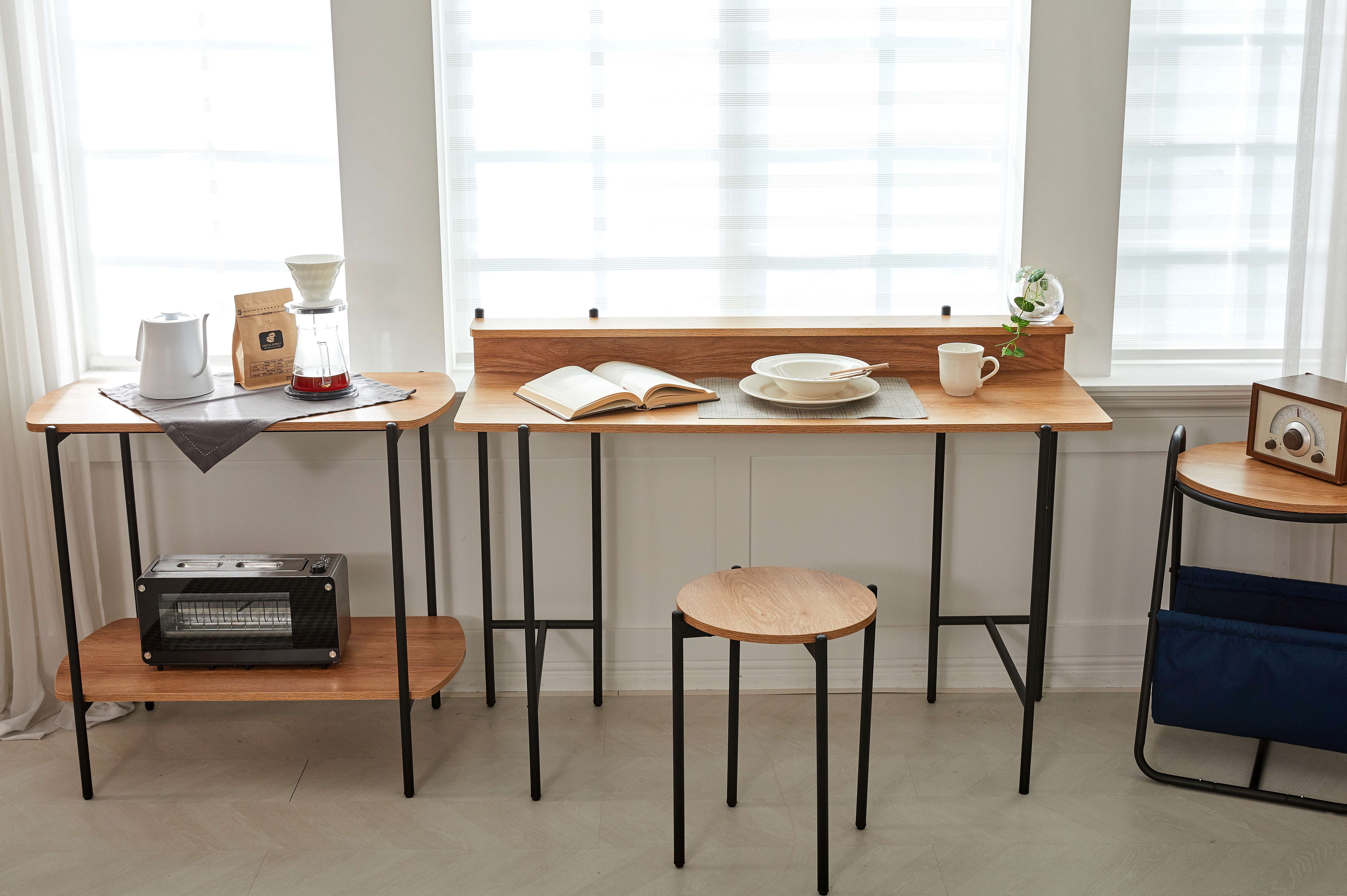Tischplatte und Ablage: MDF (Mitteldichte Holzfaserplatte) in Akazie Holznachbildung