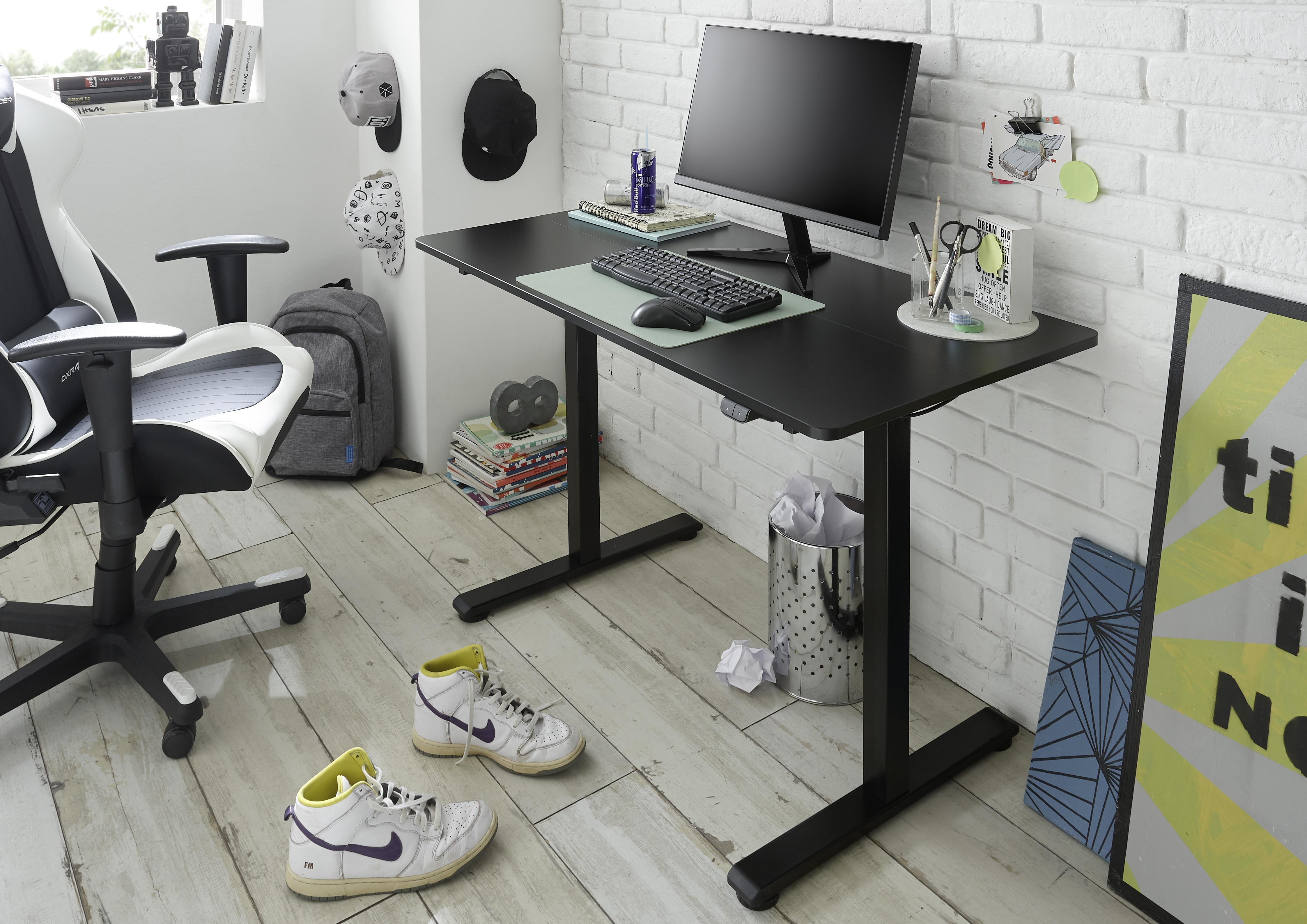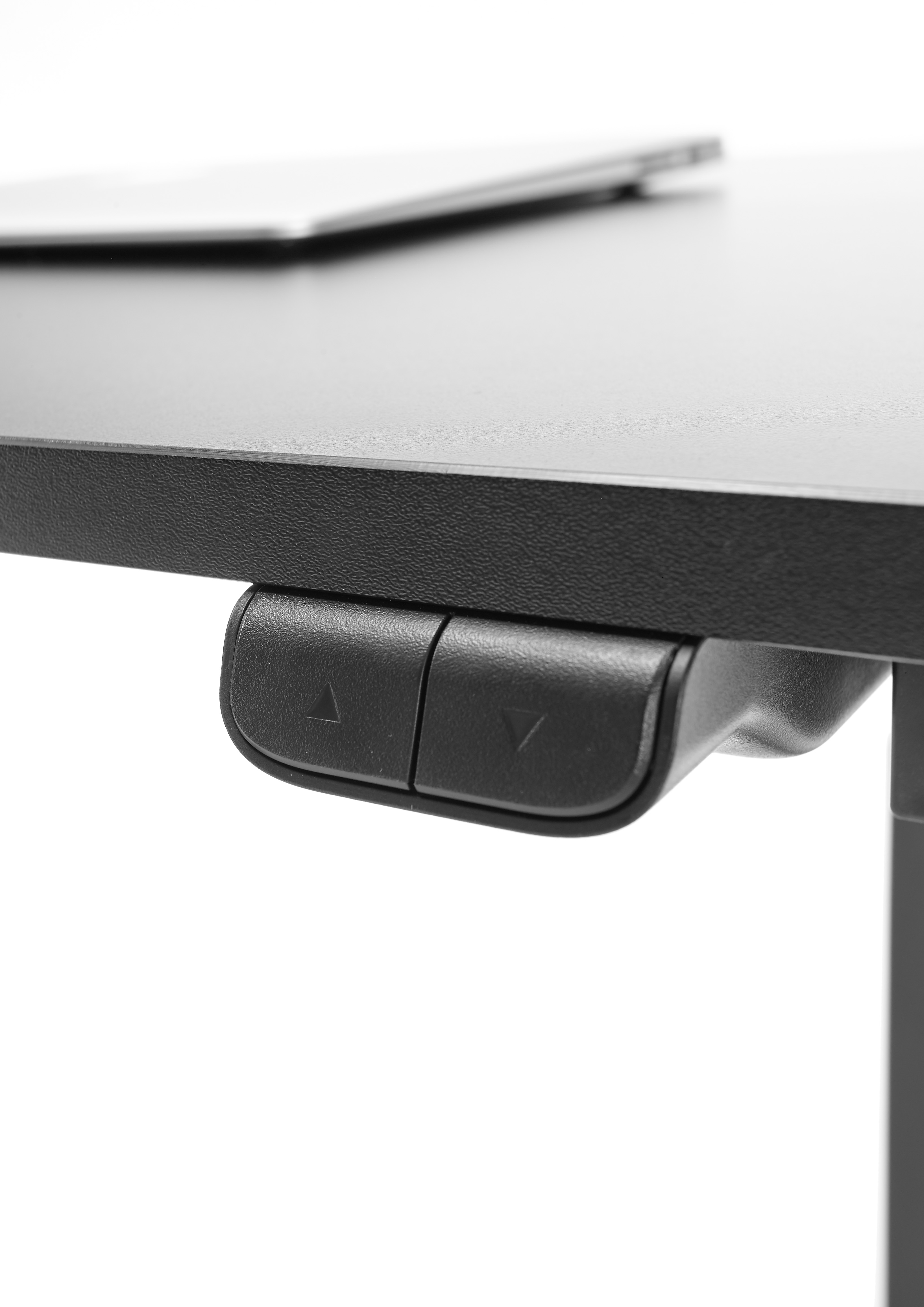 Tischplatte elektronisch höhenverstellbar mit Hilfe einer 2-Knopf-Bedienung: hoch/runter