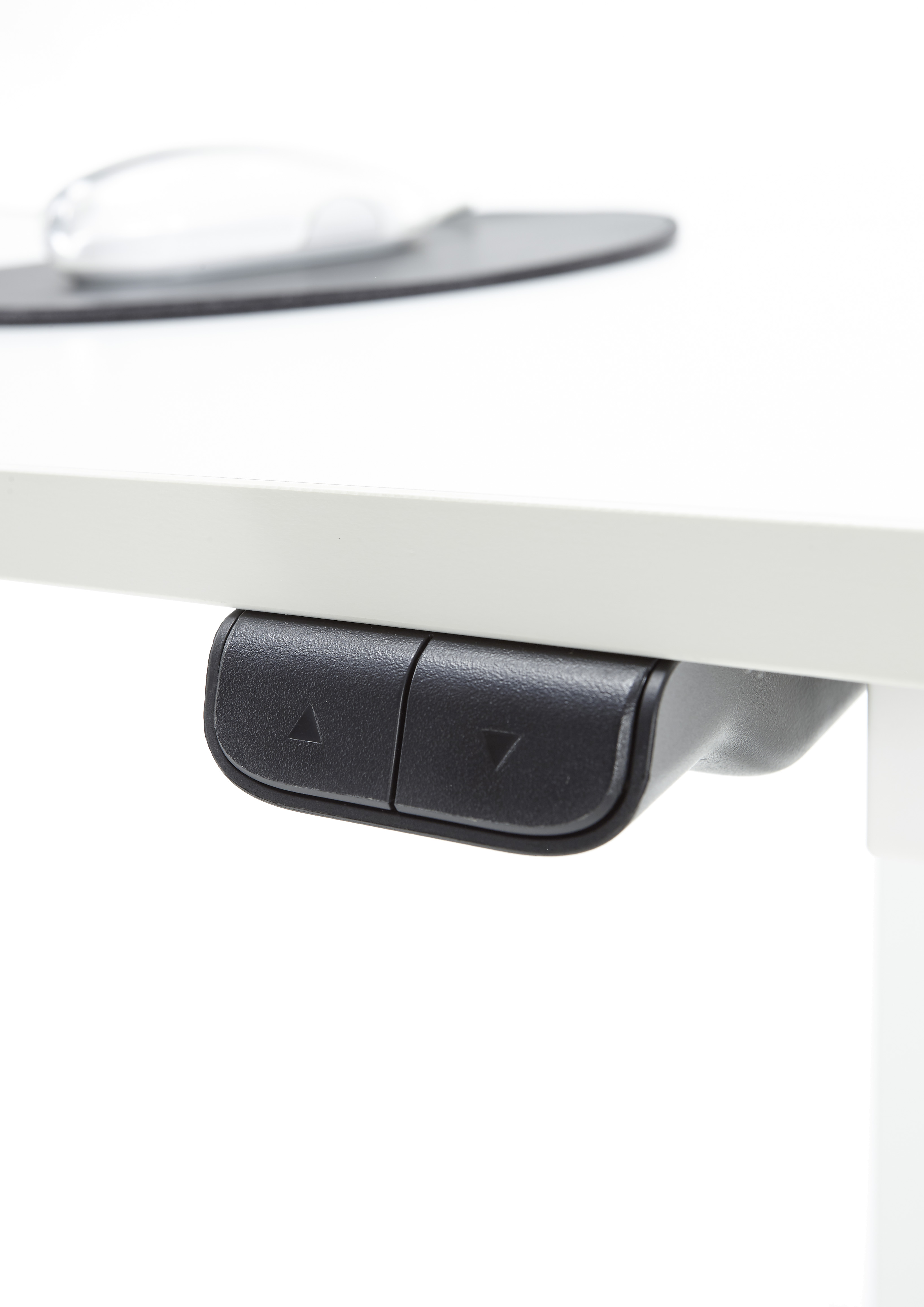 Tischplatte elektronisch höhenverstellbar mit Hilfe einer 2-Knopf-Bedienung: hoch/runter