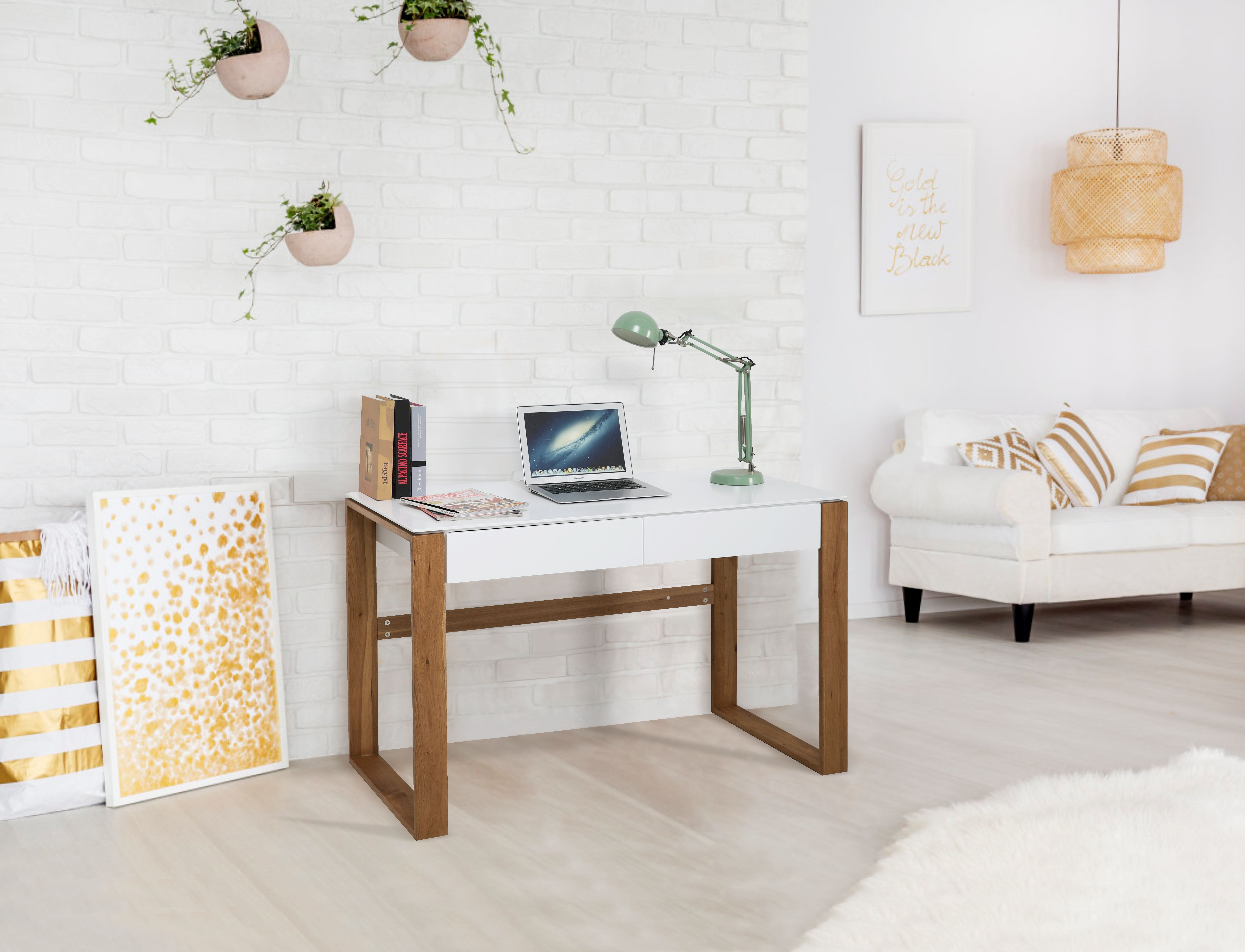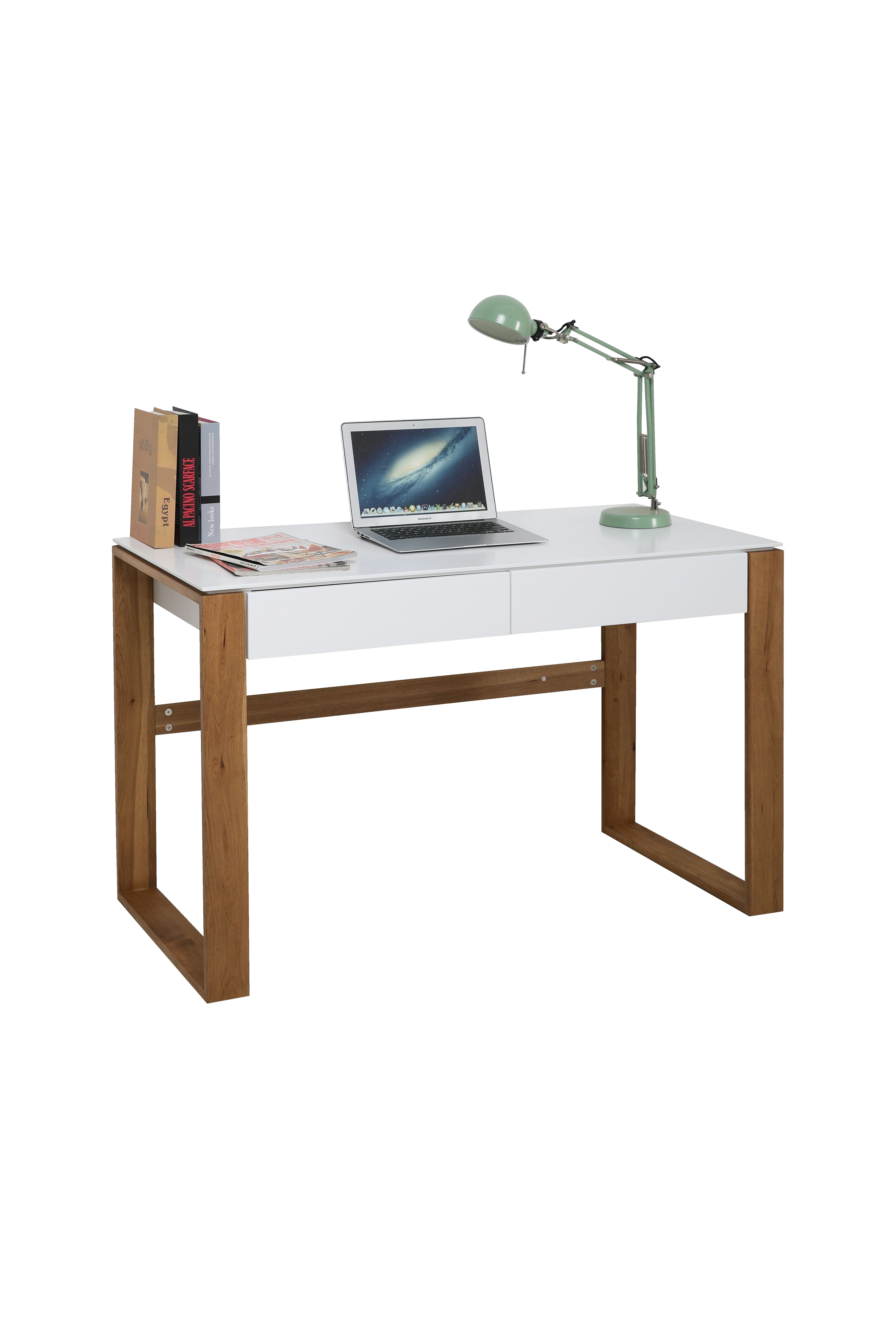 MDF (Mitteldichte Holzfaserplatte) in Weiß kombiniert mit naturfarbenem Gestell aus Eichenholz (China)