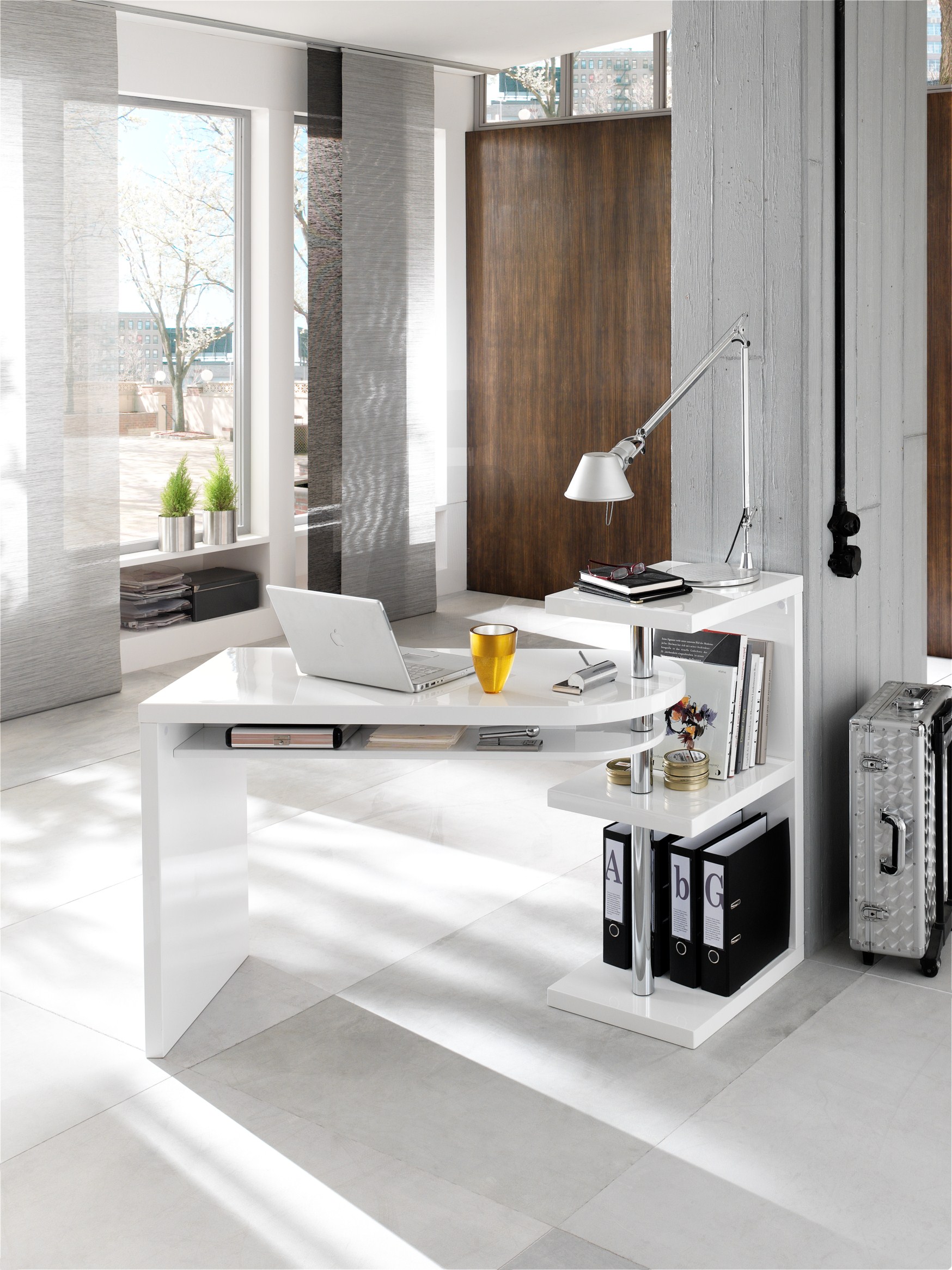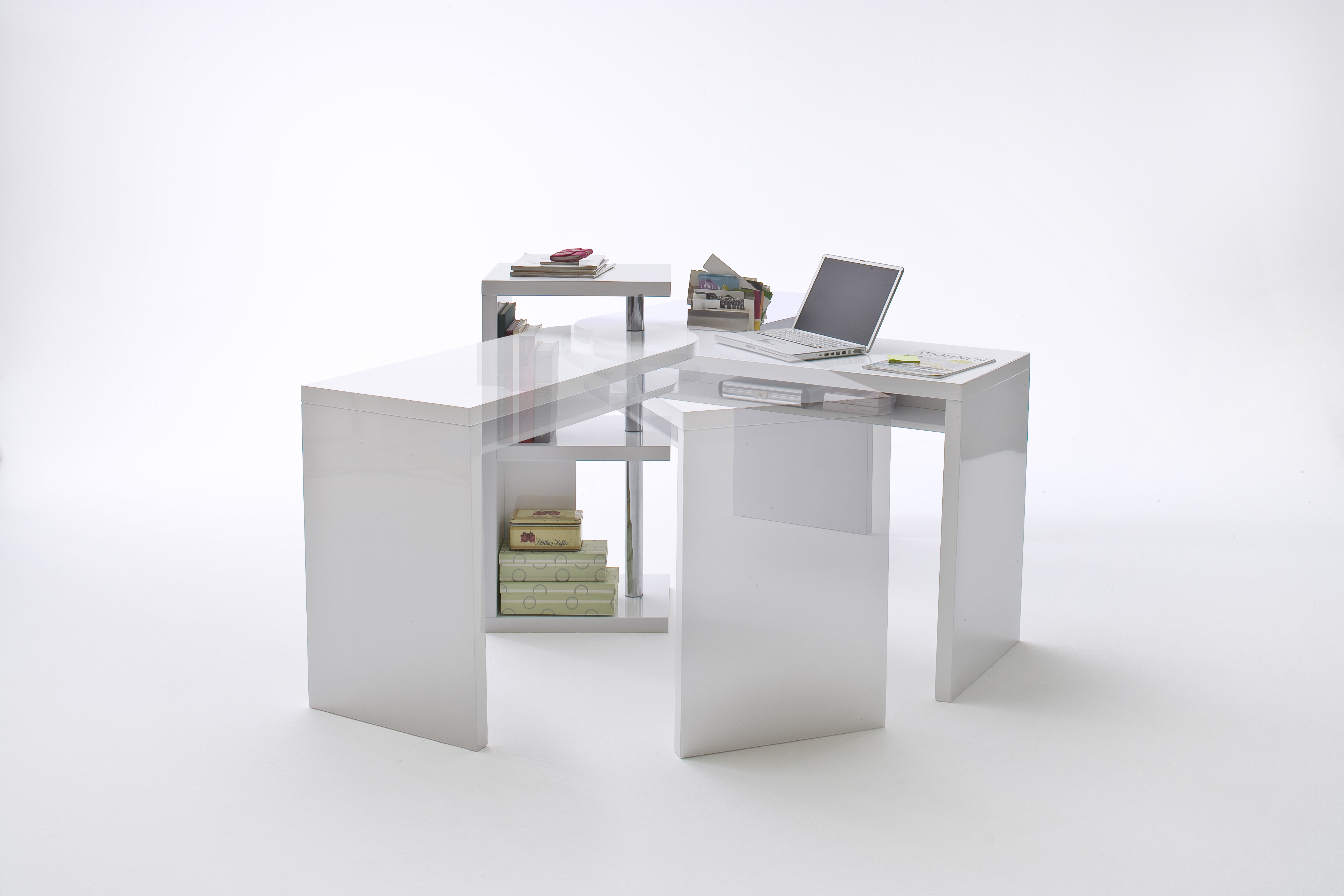 Schreibtischelement und Regal: MDF (Mitteldichte Holzfaserplatte) Hochglanz lackiert weiß