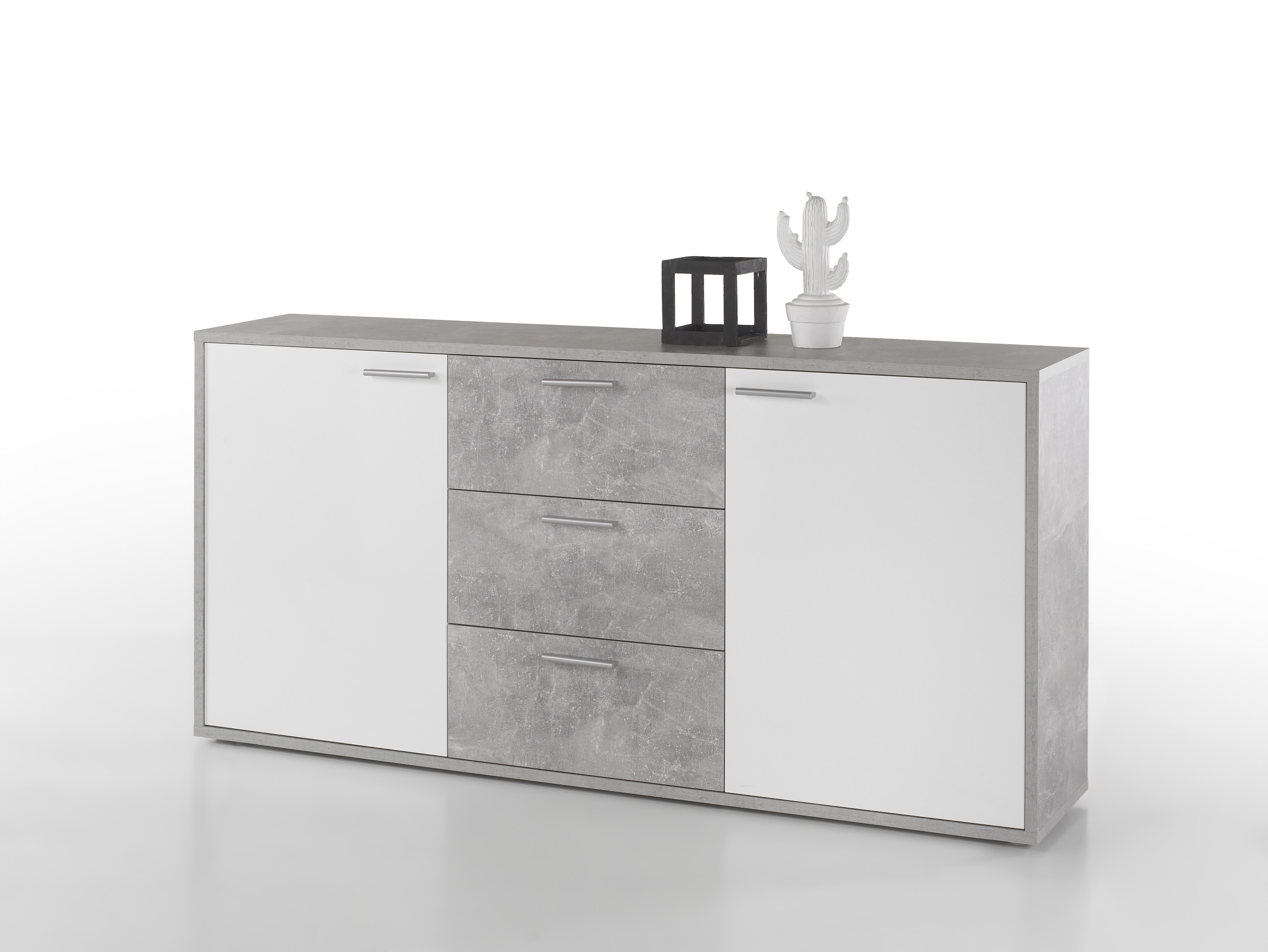 - Modernes Design mit Betonoptik und Hochglanzfront