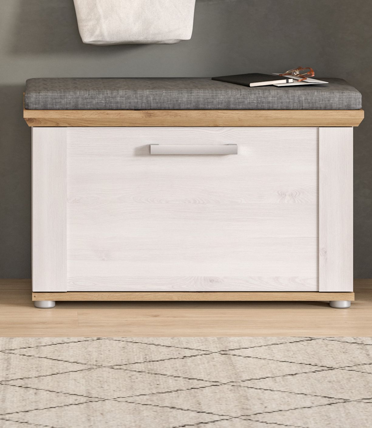 - Einsatzbereich: Geeignet für den Einsatz in Fluren oder Dielen als funktionale und ästhetische Lösung zur Schaffung einer gemütlichen Sitzgelegenheit und zur Ergänzung des Einrichtungsstils, während gleichzeitig zusätzlicher Stauraum geschaffen wird.