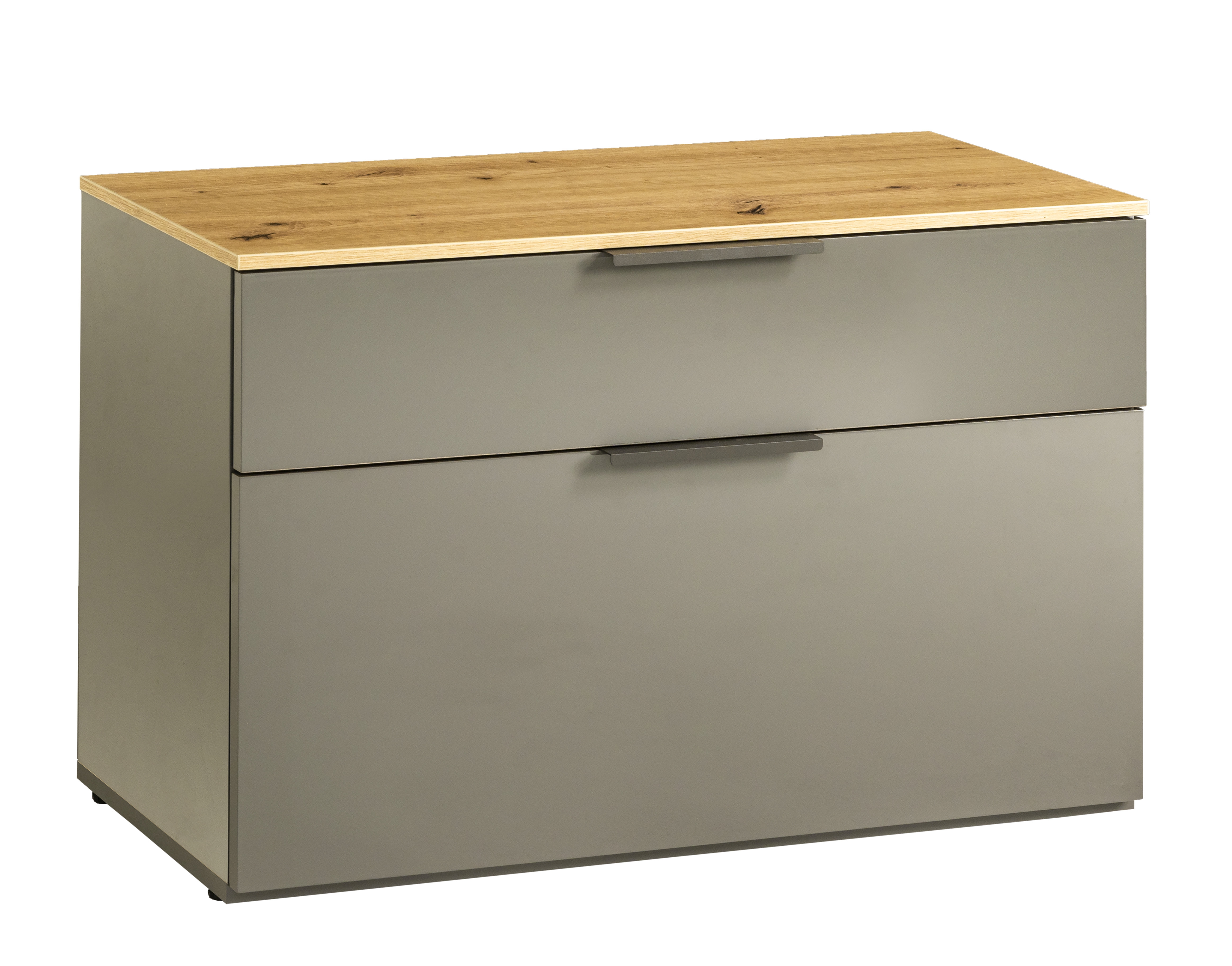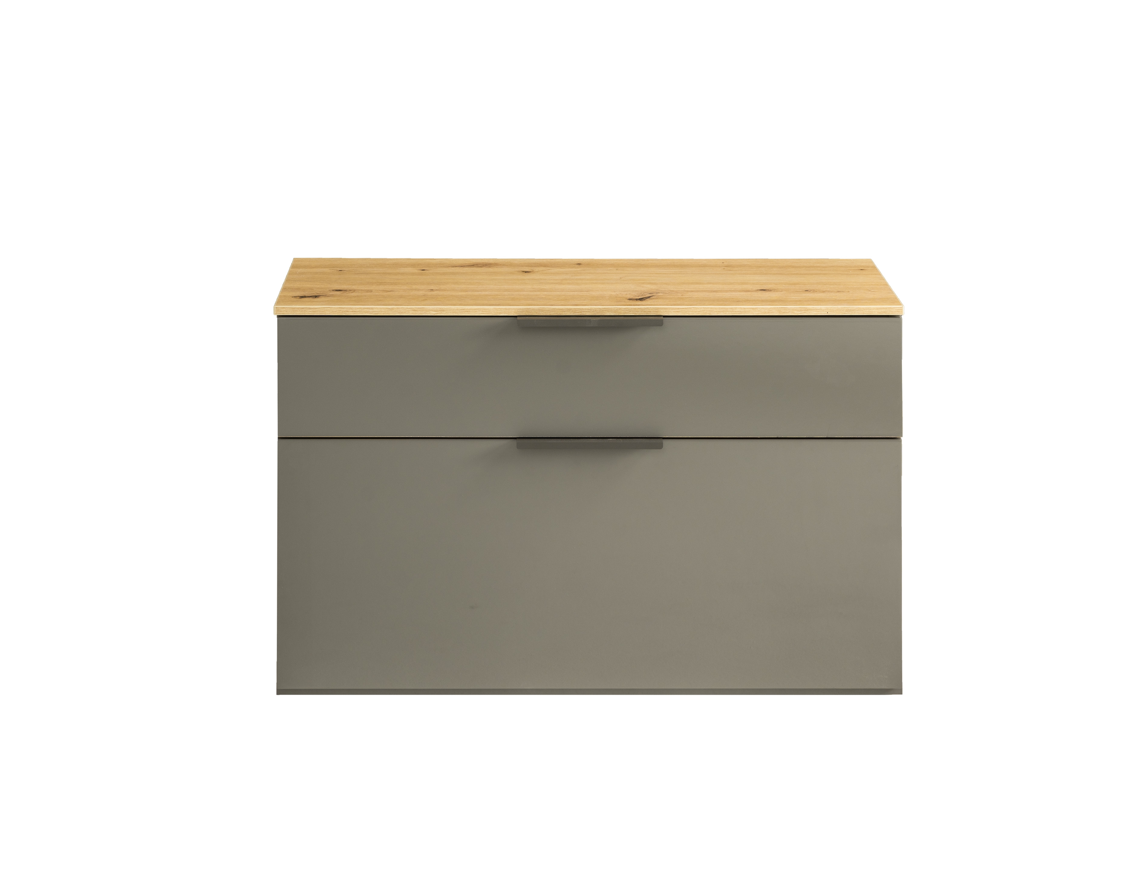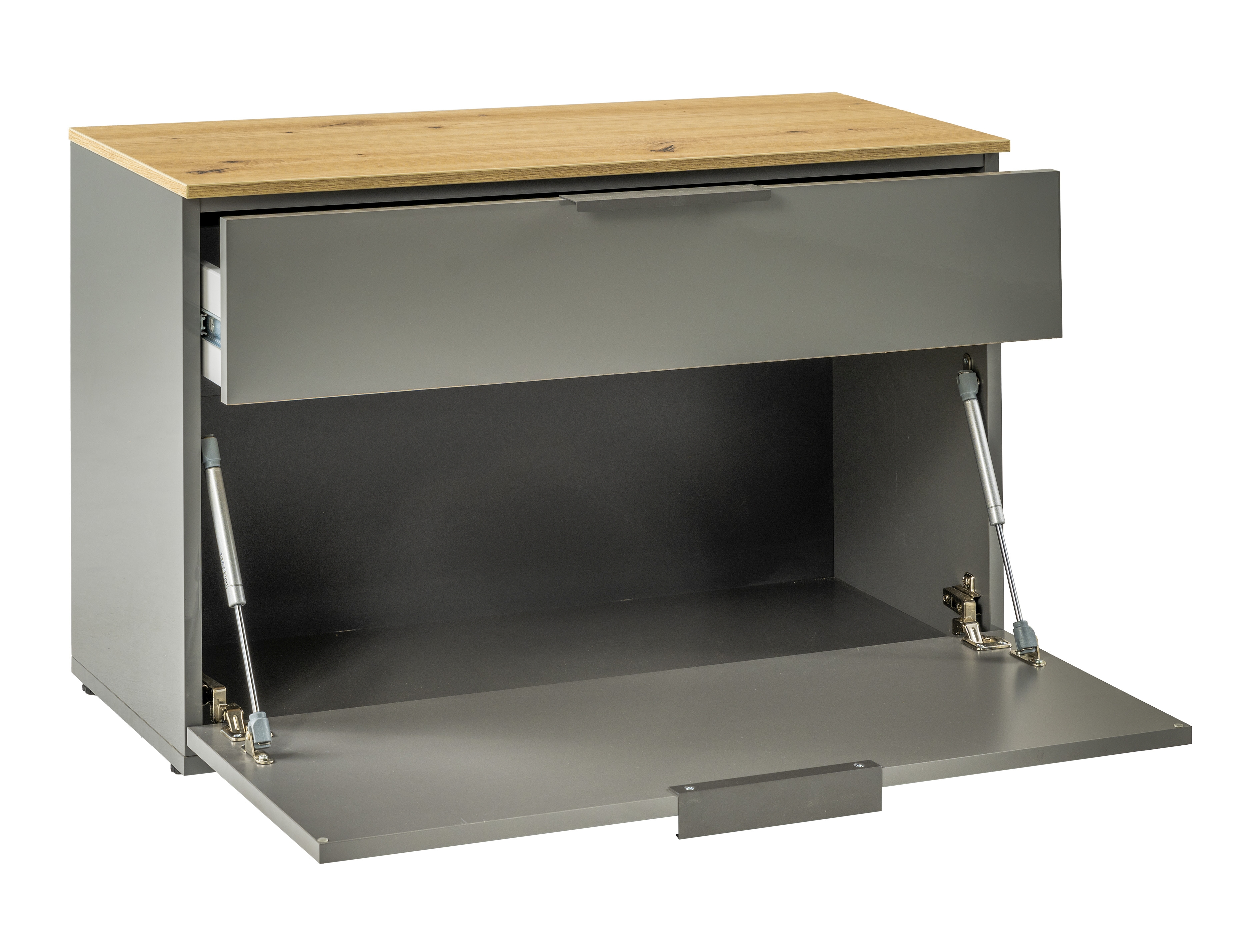 Korpus und Front: Artisan Eiche Holznachbildung kombiniert mit Hochglanz Titanium Grau