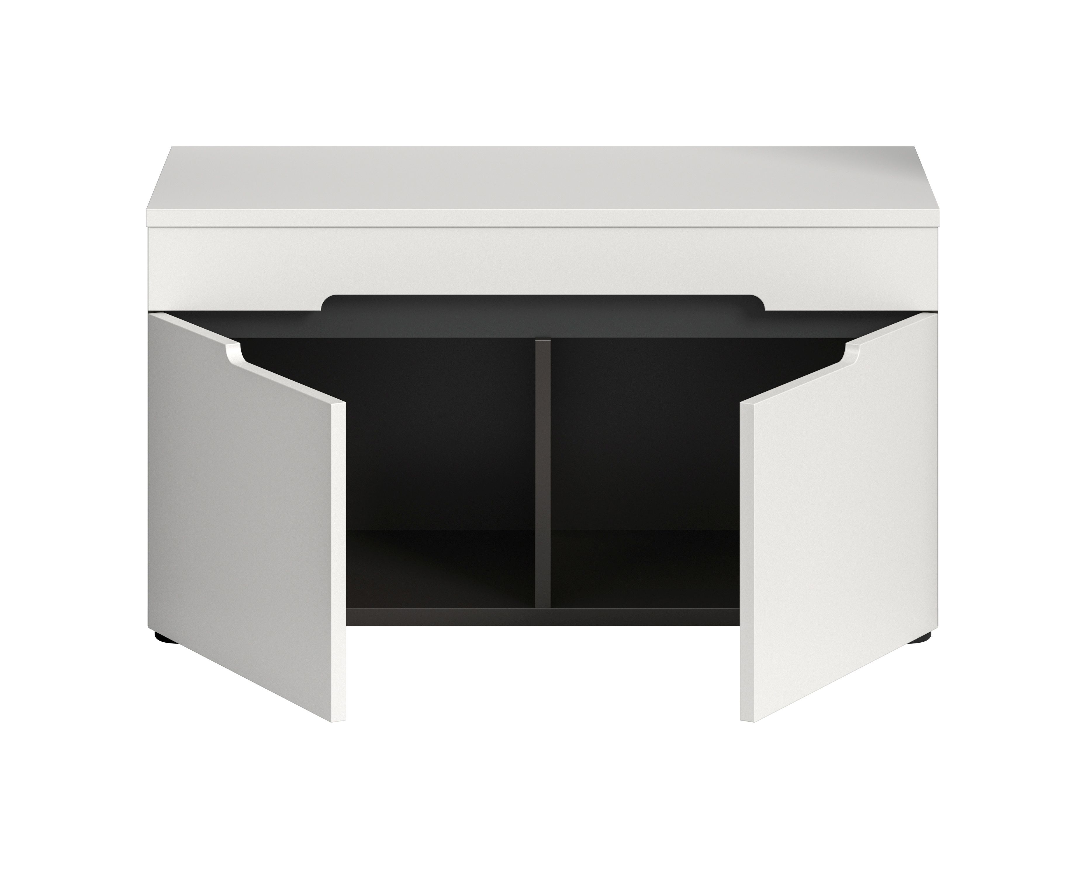 Unsere Garderoben Sitzbank mit den Maßen 80x45x37 cm kombiniert praktische Sitzgelegenheit mit stilvollem Stauraum. Das hochwertige Design in Basaltgrau Nachbildung und Weiß verleiht Ihrem Eingangsbereich eine moderne Note. Entdecken Sie jetzt diese platzsparende und ästhetische Lösung für eine organisierte Garderobe.