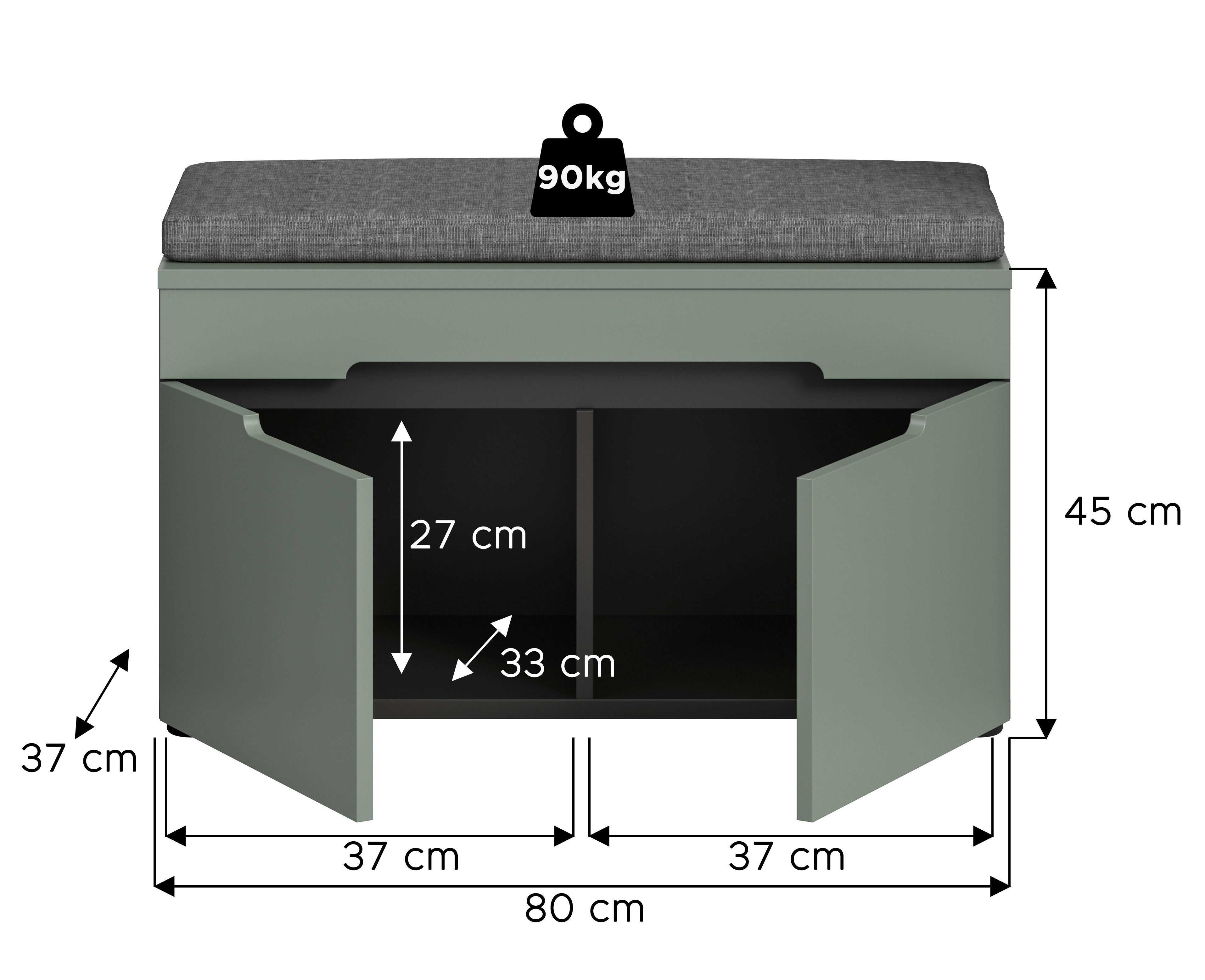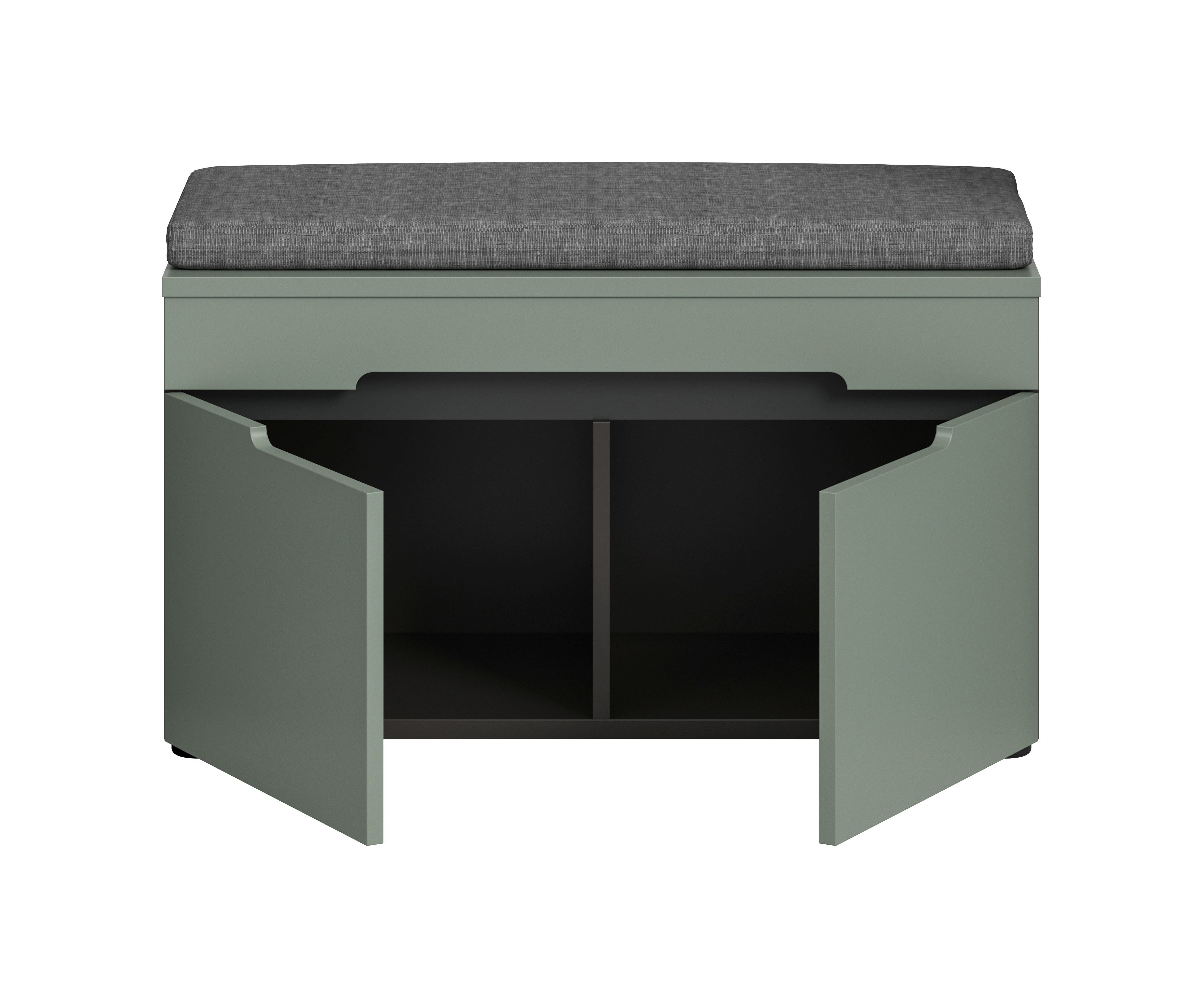 Unsere Garderoben Sitzbank mit den Maßen 80x45x37 cm kombiniert praktische Sitzgelegenheit mit stilvollem Stauraum. Das hochwertige Design in Basaltgrau Nachbildung und Smoke Green verleiht Ihrem Eingangsbereich eine moderne Note. Entdecken Sie jetzt diese platzsparende und ästhetische Lösung für eine organisierte Garderobe.
